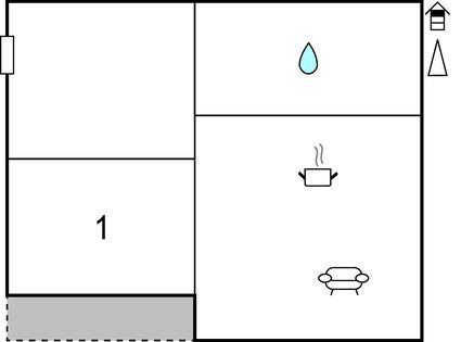 Opholdsstue/køkken - 1 Soveplads. (Sofa, madras eller lignende).