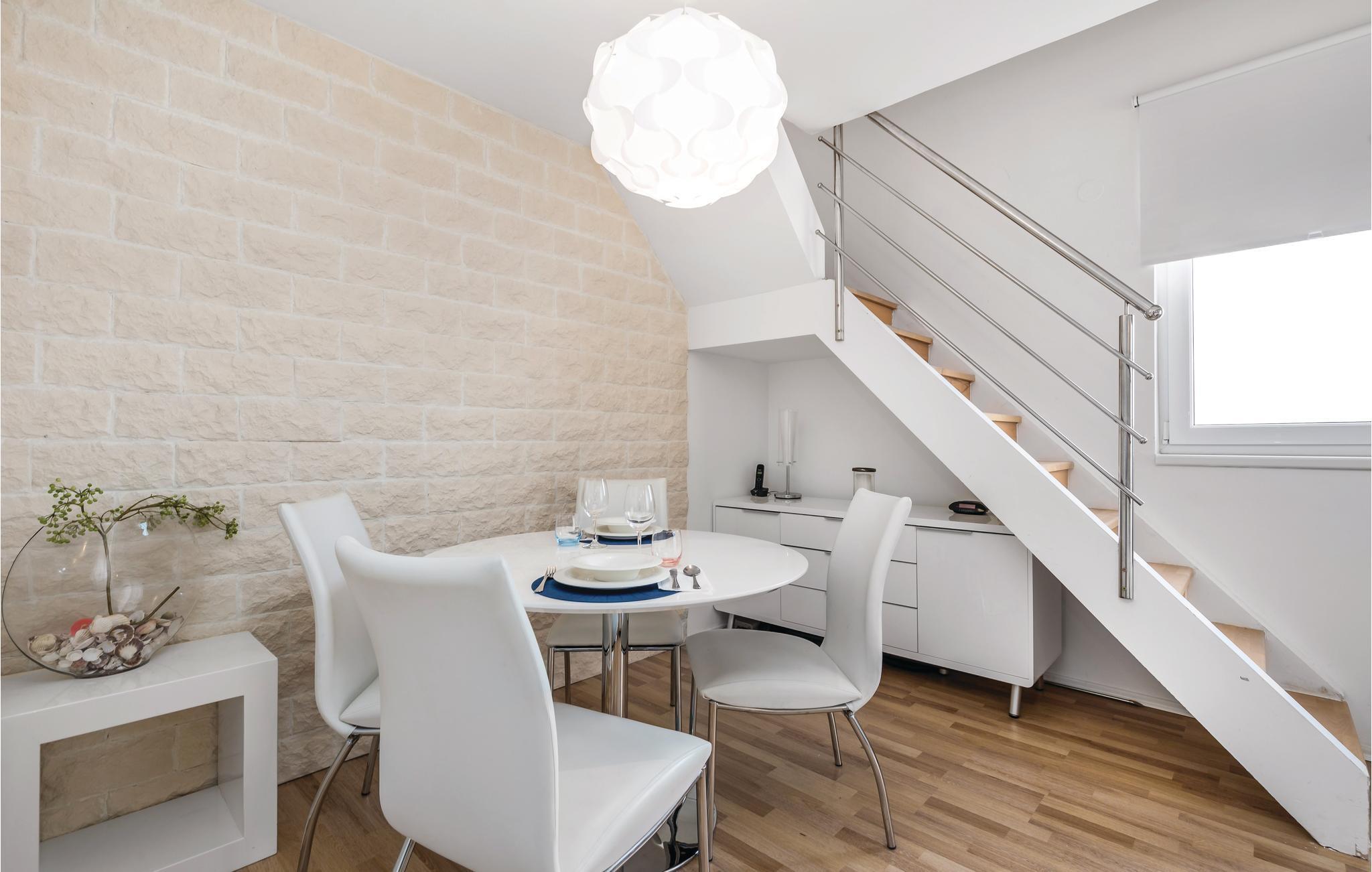På en af de skønneste kroatiske øer, der er praktisk forbundet til fastlandet med bro, ligger denne ferielejlighed i to plan. Den er moderne indrettet og fra balkonen er der en betagende udsigt over havet. På øverste etage er der et soveværelse med en laveste loftshøjde på 160 cm. Alle beboere i huset har adgang til poolen i haven. Nyd at bo tæt ved havet og besøg den interessante by Pag, med skønne badestrande og et godt udvalg af restauranter at vælge mellem. Se også CKP558.