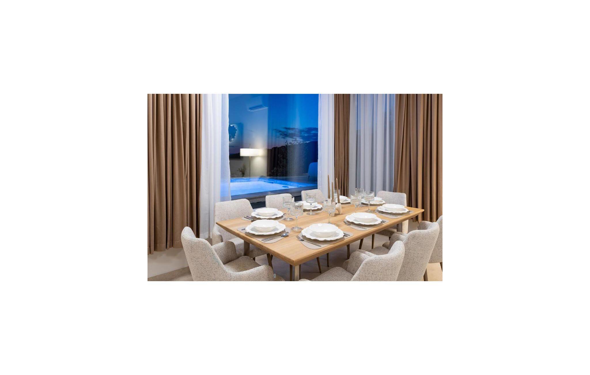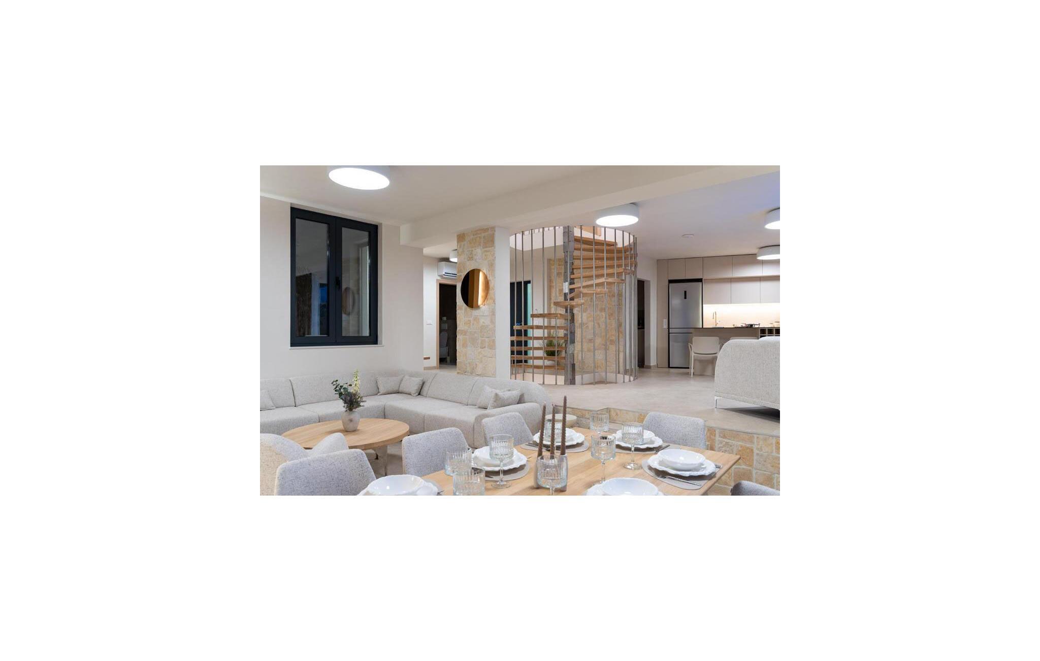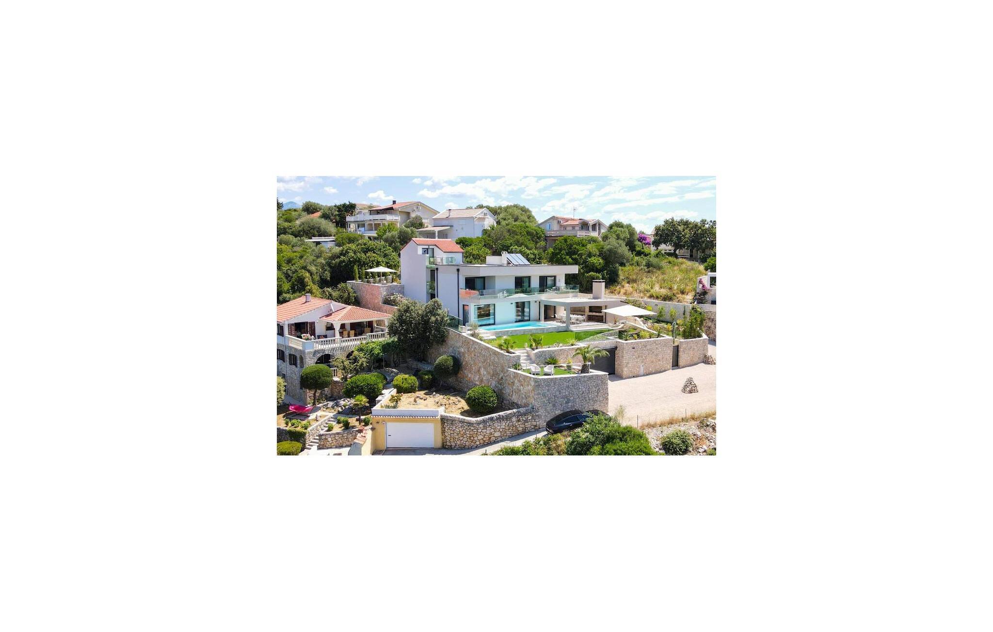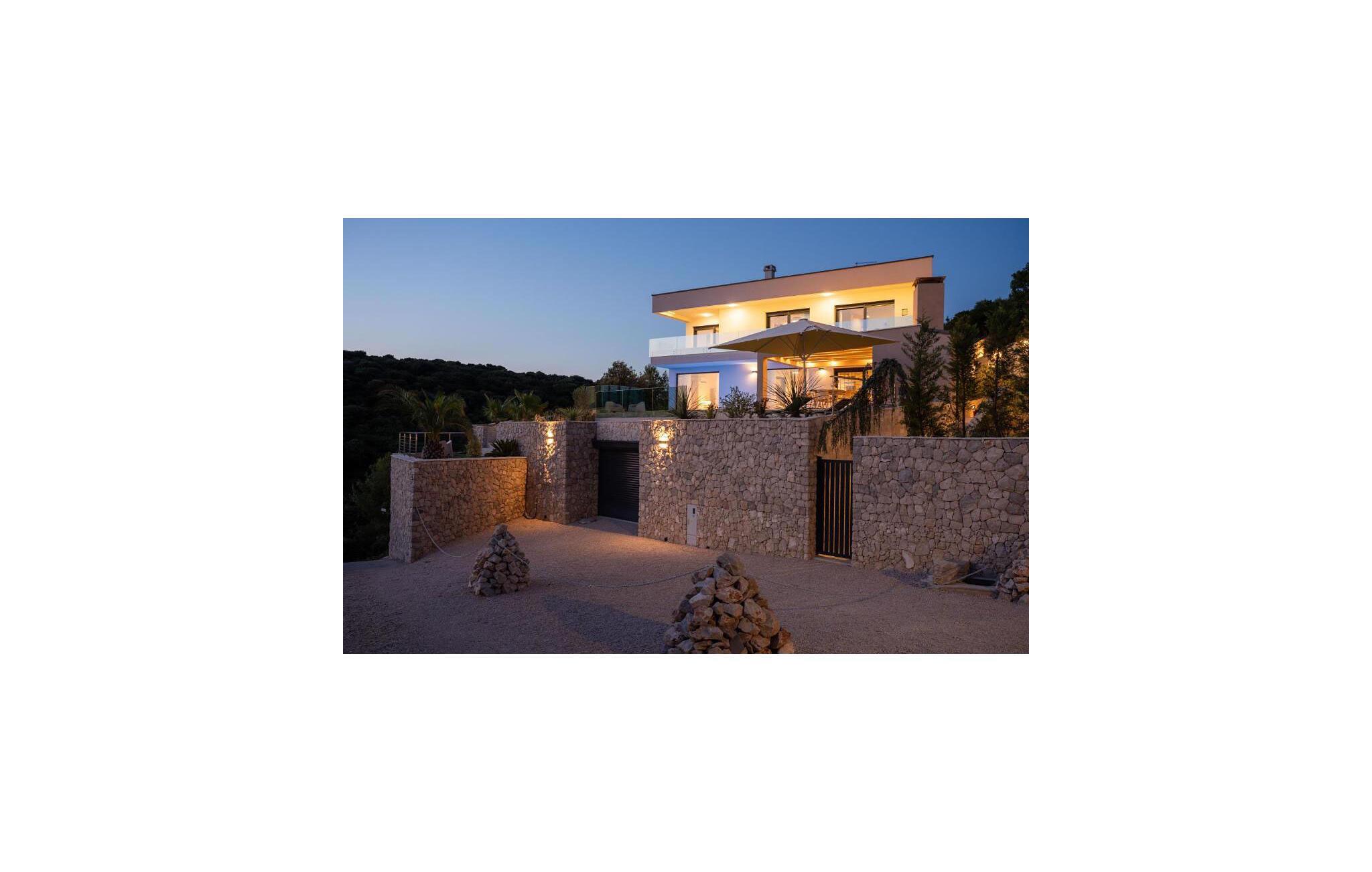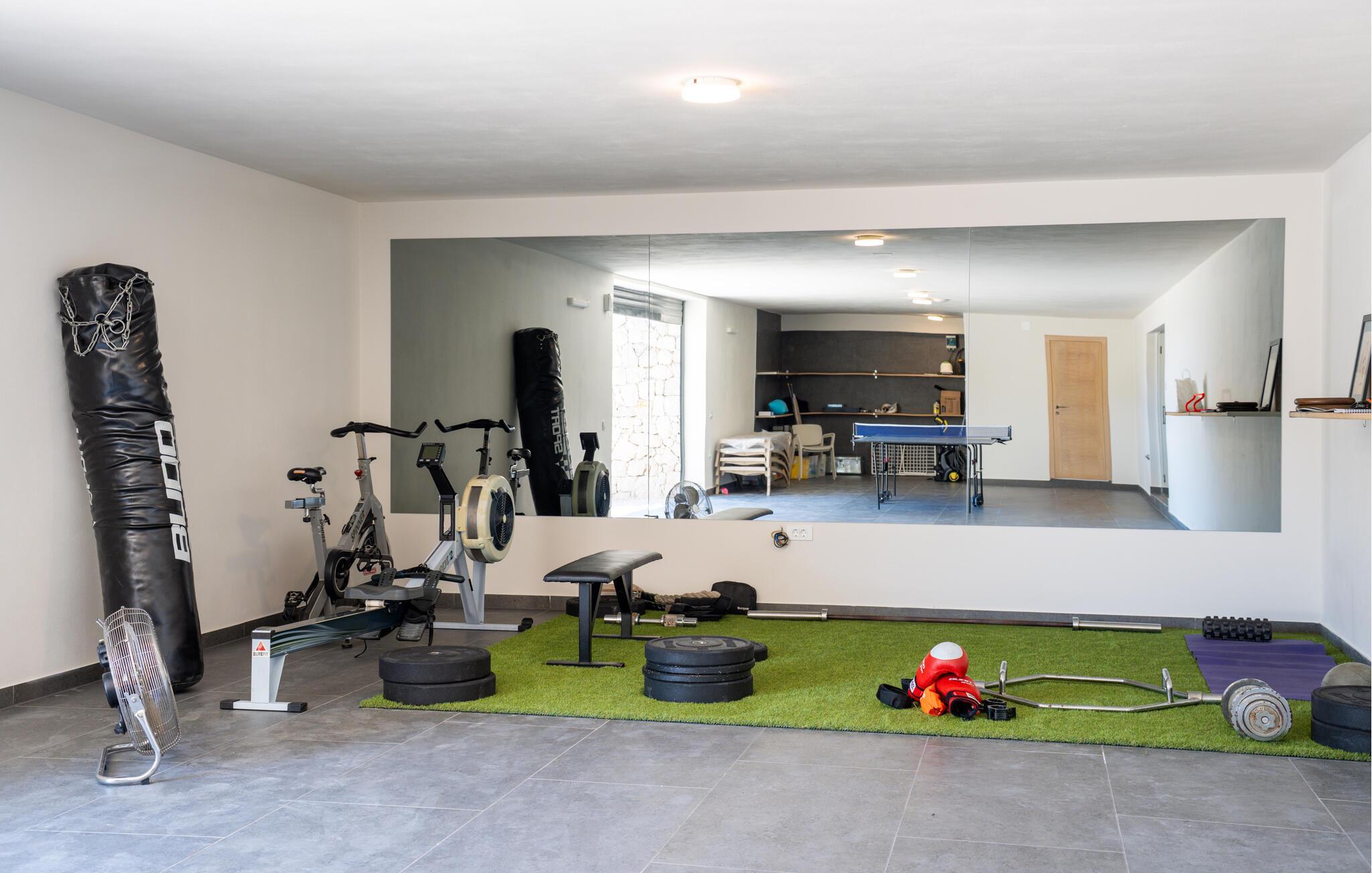 Denne rummelige villa, udstyret med adskillige luksuriøse faciliteter, lægger op til en privilegeret beliggenhed over en turkisblå bugt. Smagfulde møbler af høj kvalitet og harmonisk belysning sikrer afslappende timer med spisning, spil og afslapning. Skab kulinariske lækkerier med venner, nyd PlayStation eller bordtennisbordet, og brug træningsmaskinerne til jeres træning. Om aftenen inviterer hyggelige sofaer jer til at slappe af og se en film.