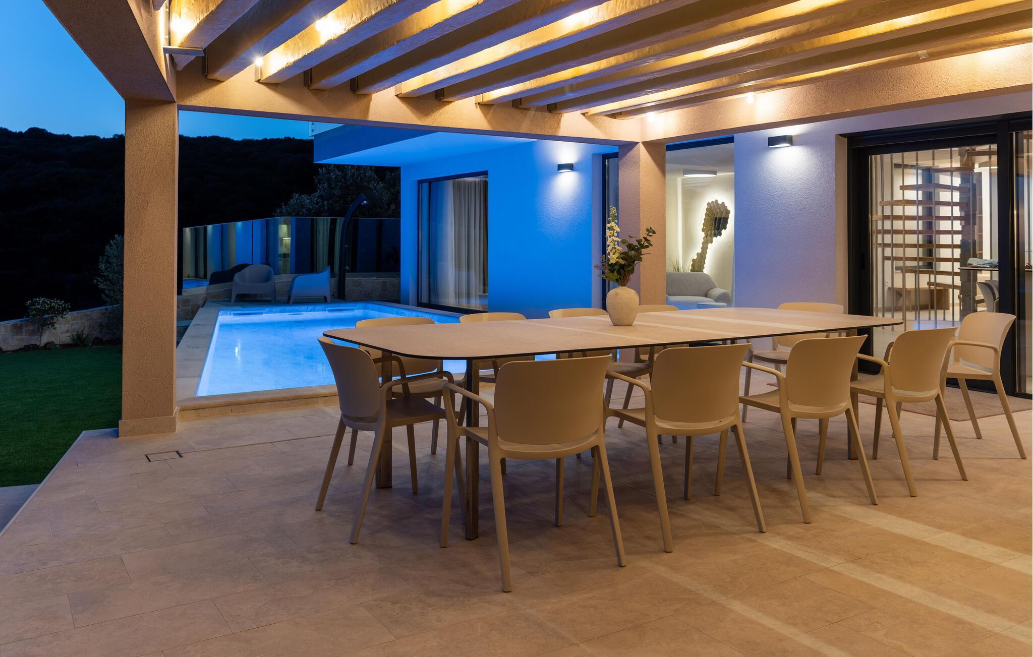 Ud over den fortryllende havudsigt tilbyder det elegante udendørsområde forskellige terrasser udstyret med komfortable havemøbler. snup en frisk dukkert når som helst på dagen eller natten i den storslåede pool og fejr jeres tid sammen med stemningsfulde grillmiddage i den varme havbrise.