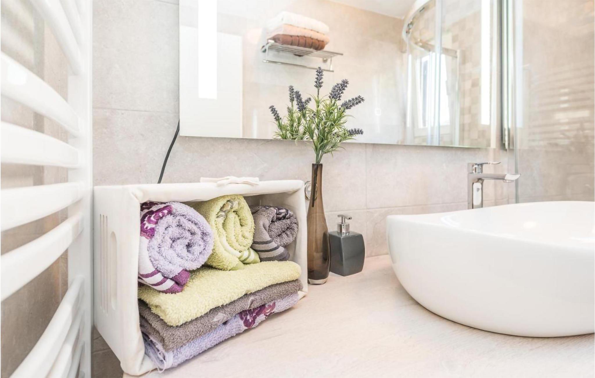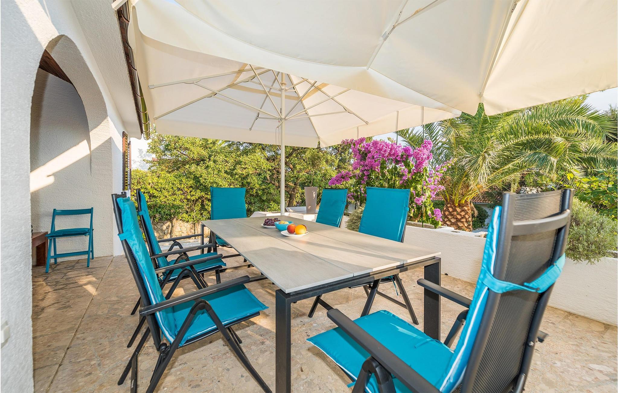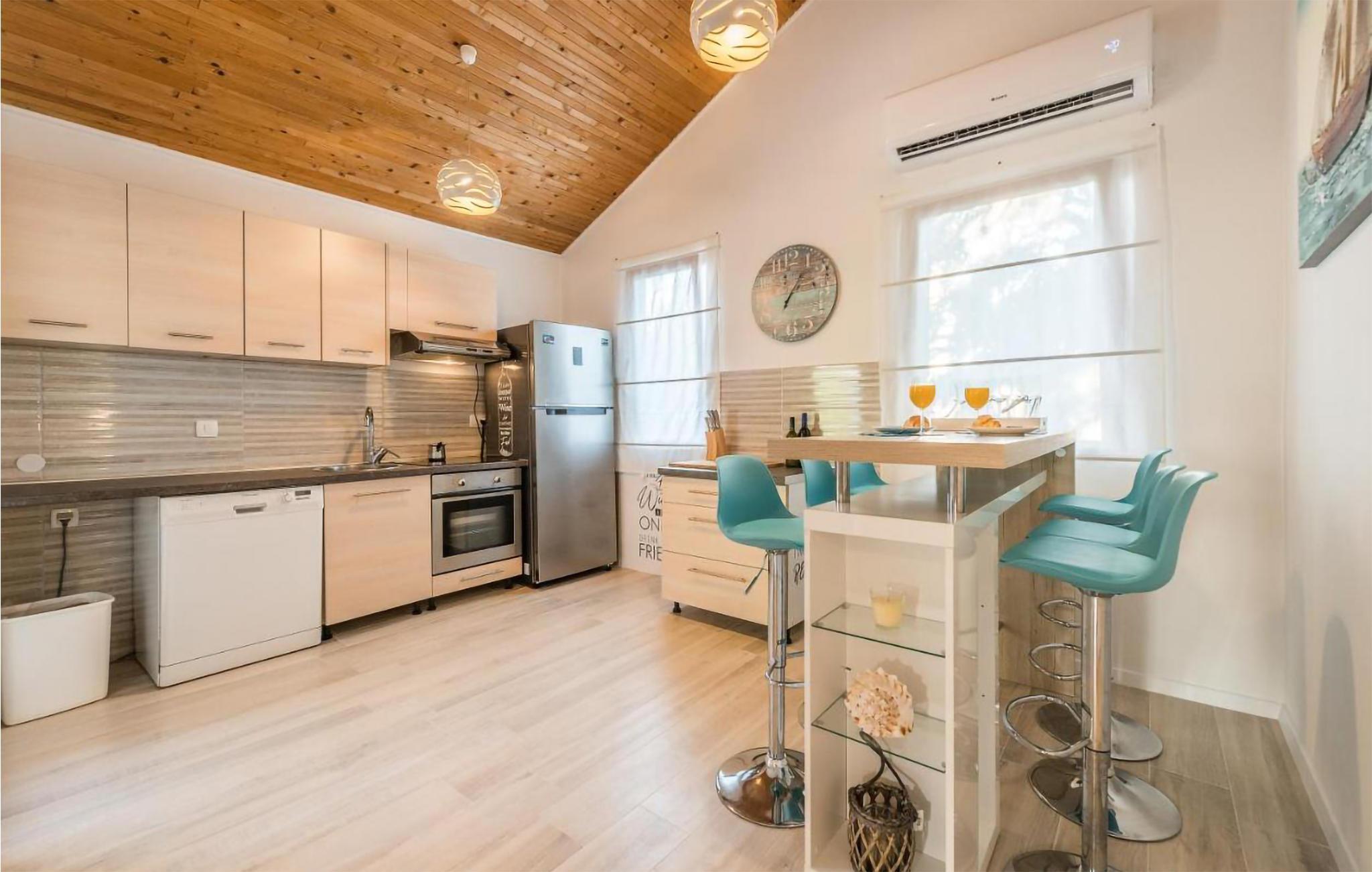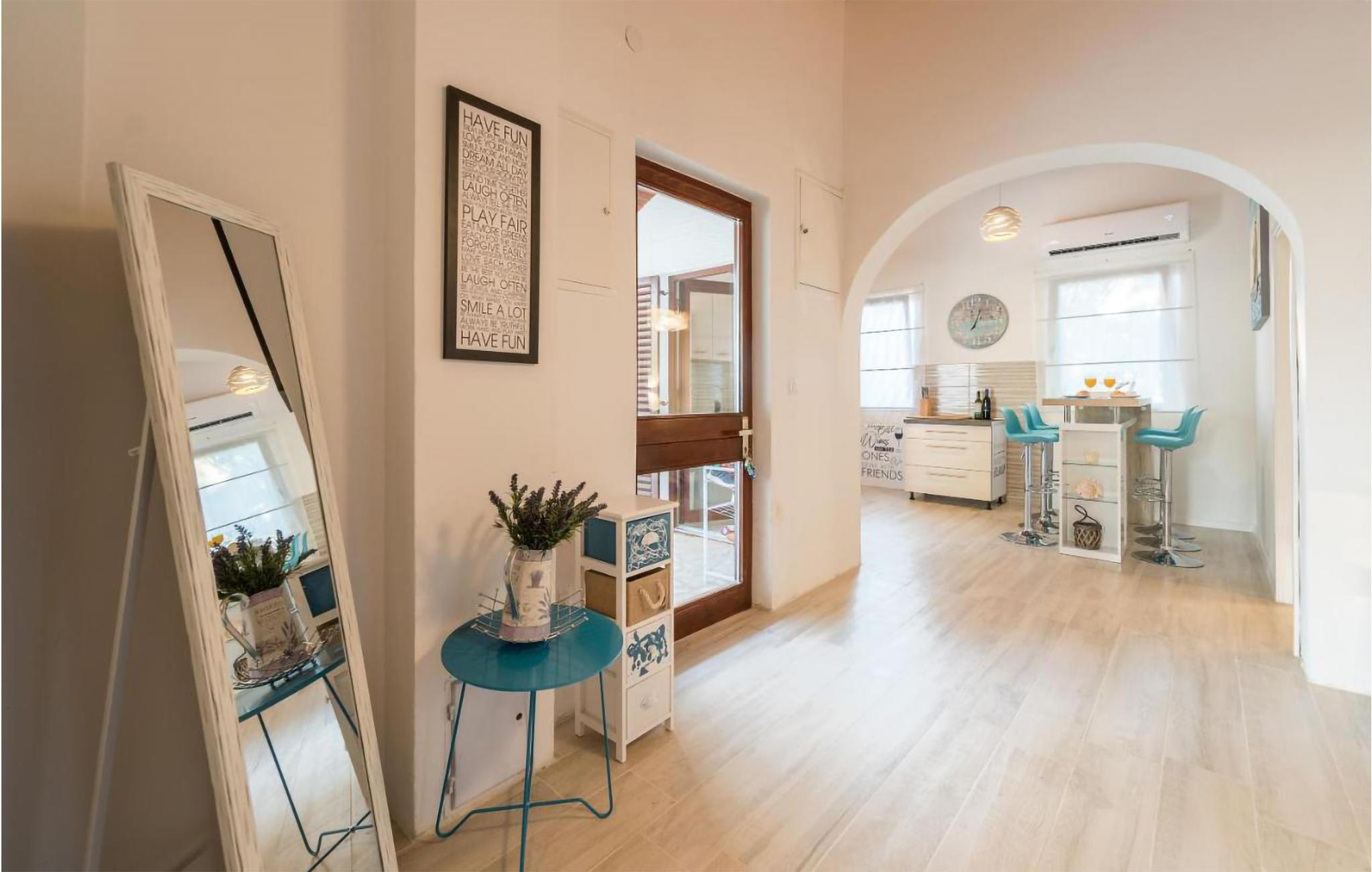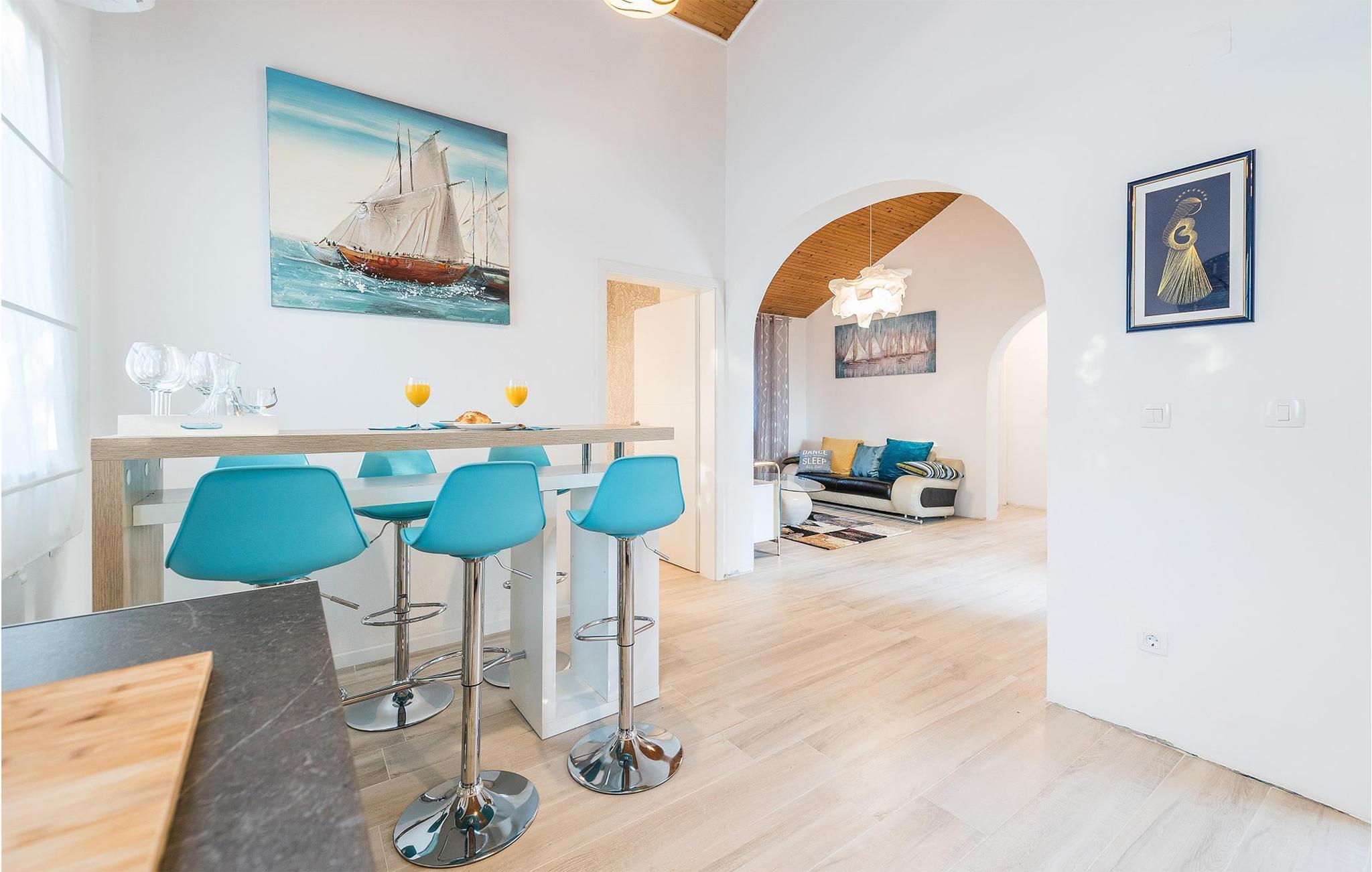 Dette skønne feriehus har med en fortryllende udsigt til havet. Indretningen er lys og hjemlig med smarte farveaccenter og charmerende trælofter, så her har I dejlige rammer til at slappe af efter en lang dag på farten. Der er også gode fællesarealer, hvor I kan samles til dagens måltider, flade ud eller sætte jer med hyggelige aktiviteter. Hvis I trænger til at røre jer, kan I kaste jer over et spil bordfodboldbord eller bordtennisbord.