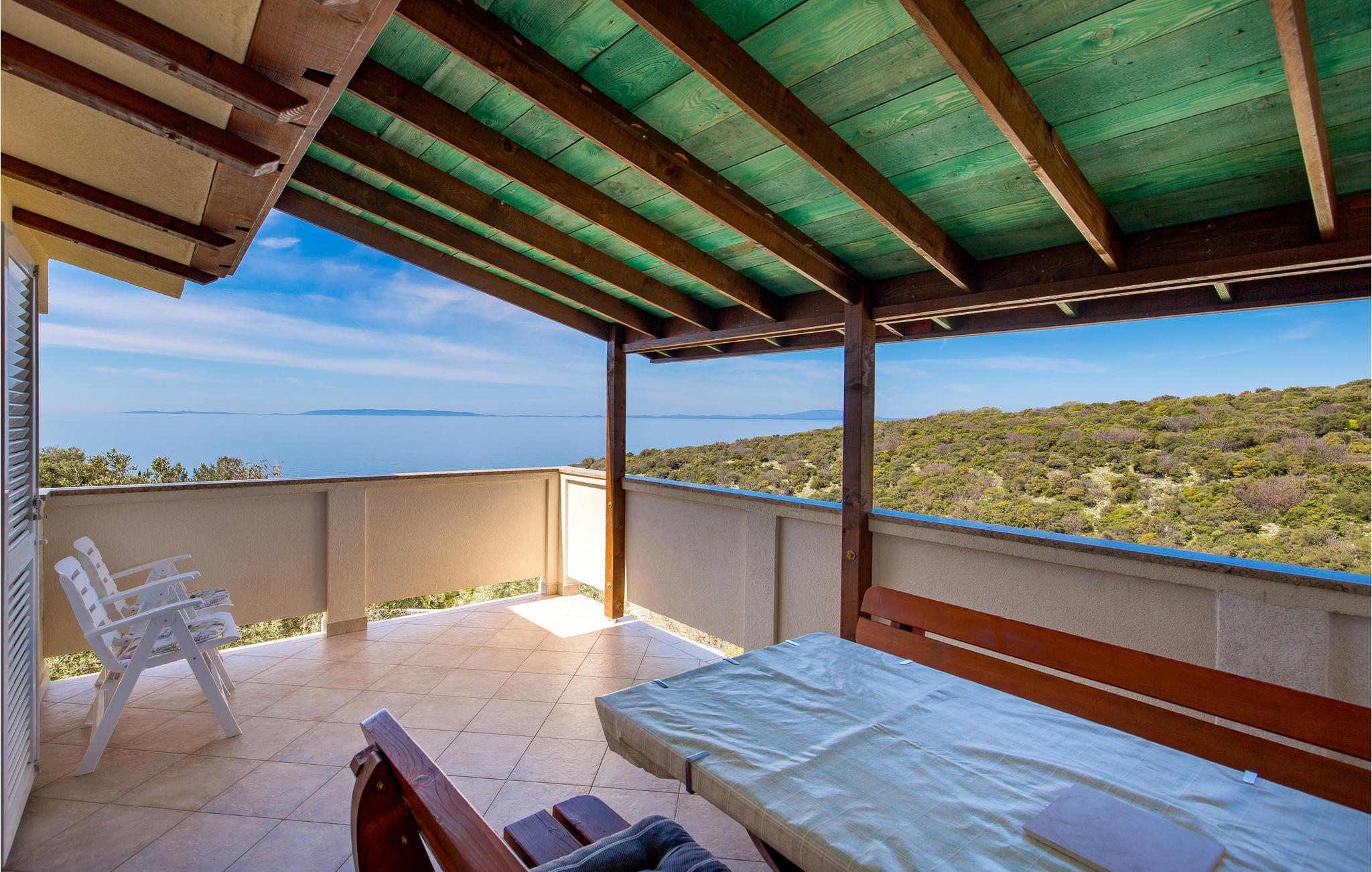 Den velplejede og komfortabelt møblerede lejlighed byder sine gæster velkommen på 1. sal i et hus og tilbyder en smuk udsigt over havet. 5 personer kan indkvarteres komfortabelt her. Takket være klimaanlægget kan I nyde behagelige temperaturer her selv på varme sommerdage.