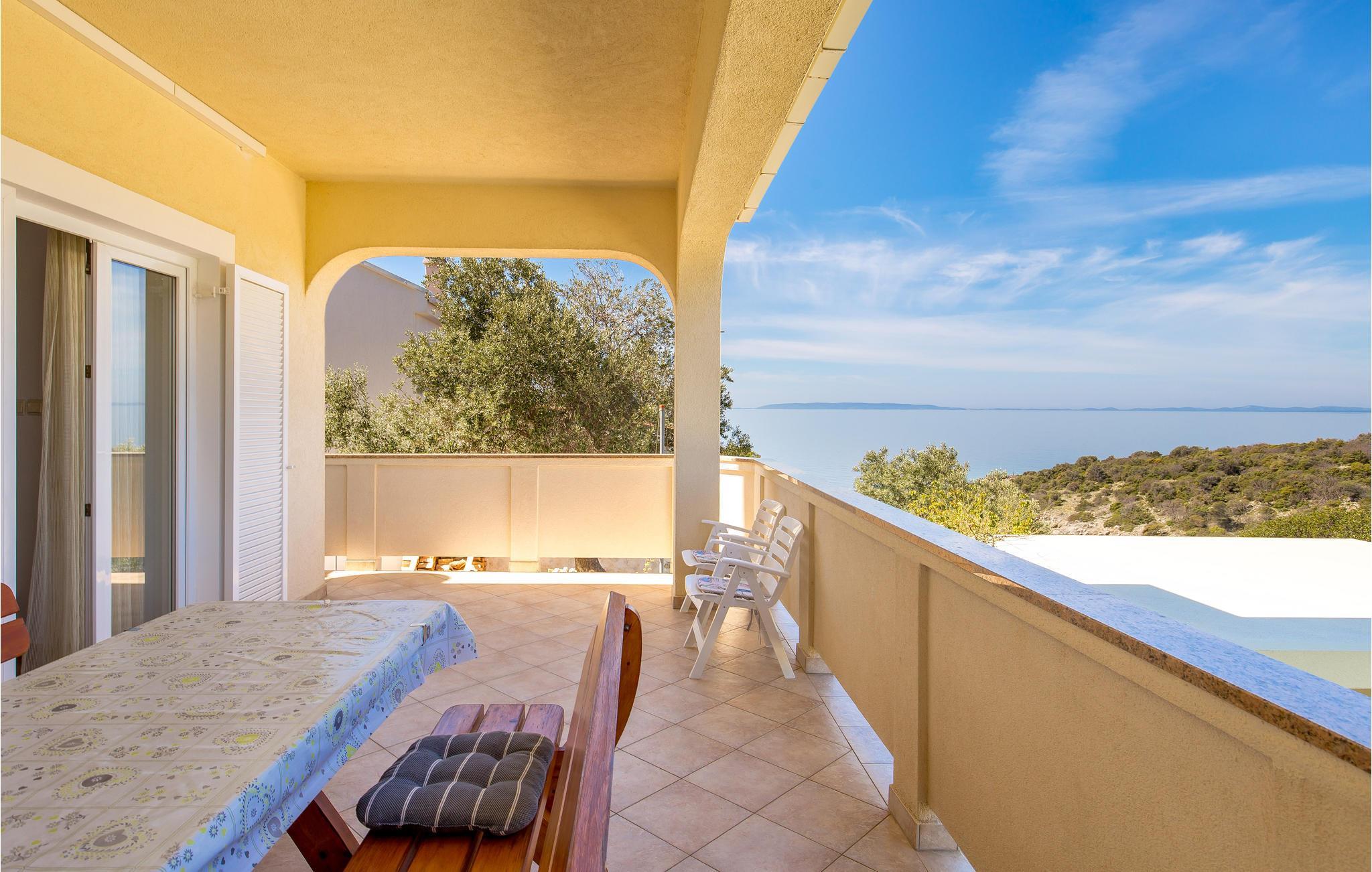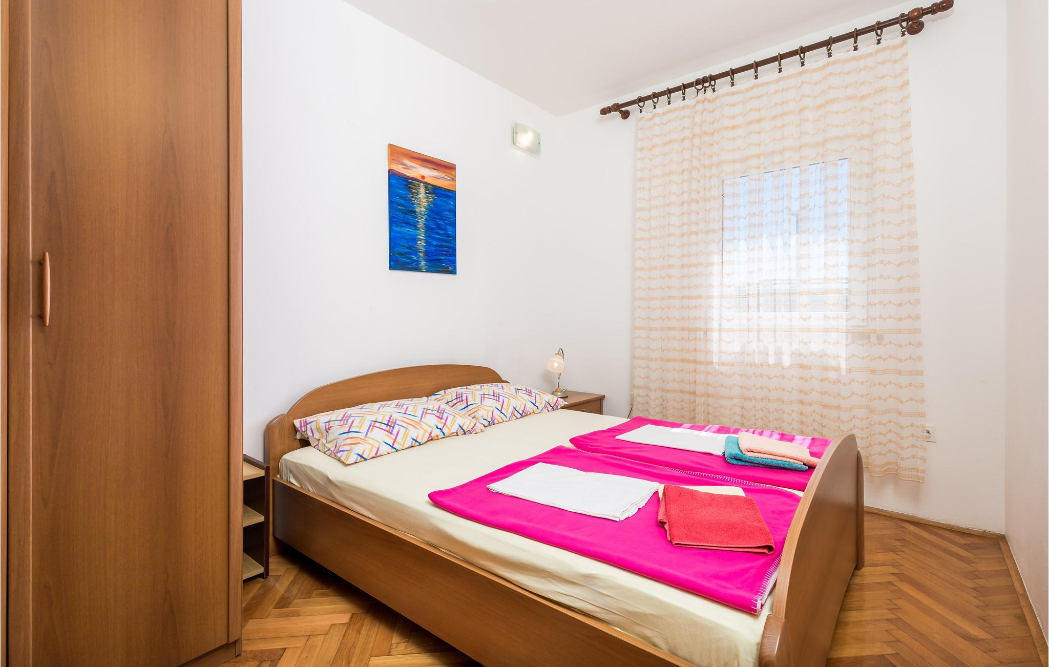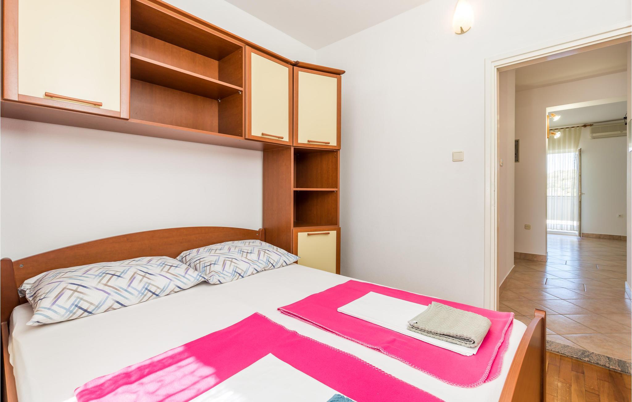 Den velplejede og komfortabelt møblerede lejlighed byder sine gæster velkommen på 1. sal i et hus og tilbyder en smuk udsigt over havet. 5 personer kan indkvarteres komfortabelt her. Takket være klimaanlægget kan I nyde behagelige temperaturer her selv på varme sommerdage.