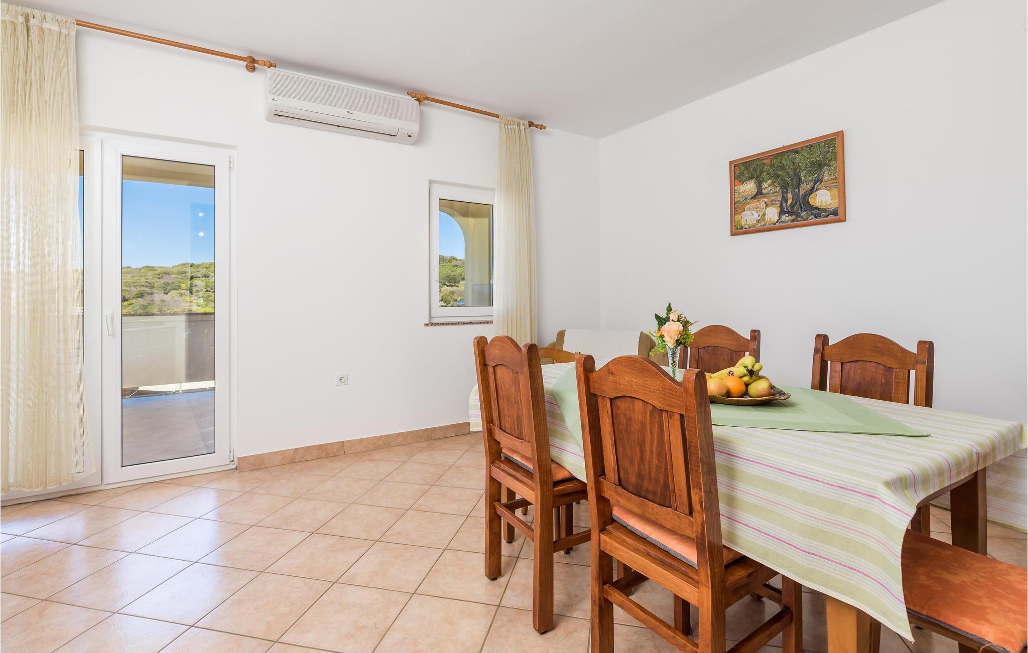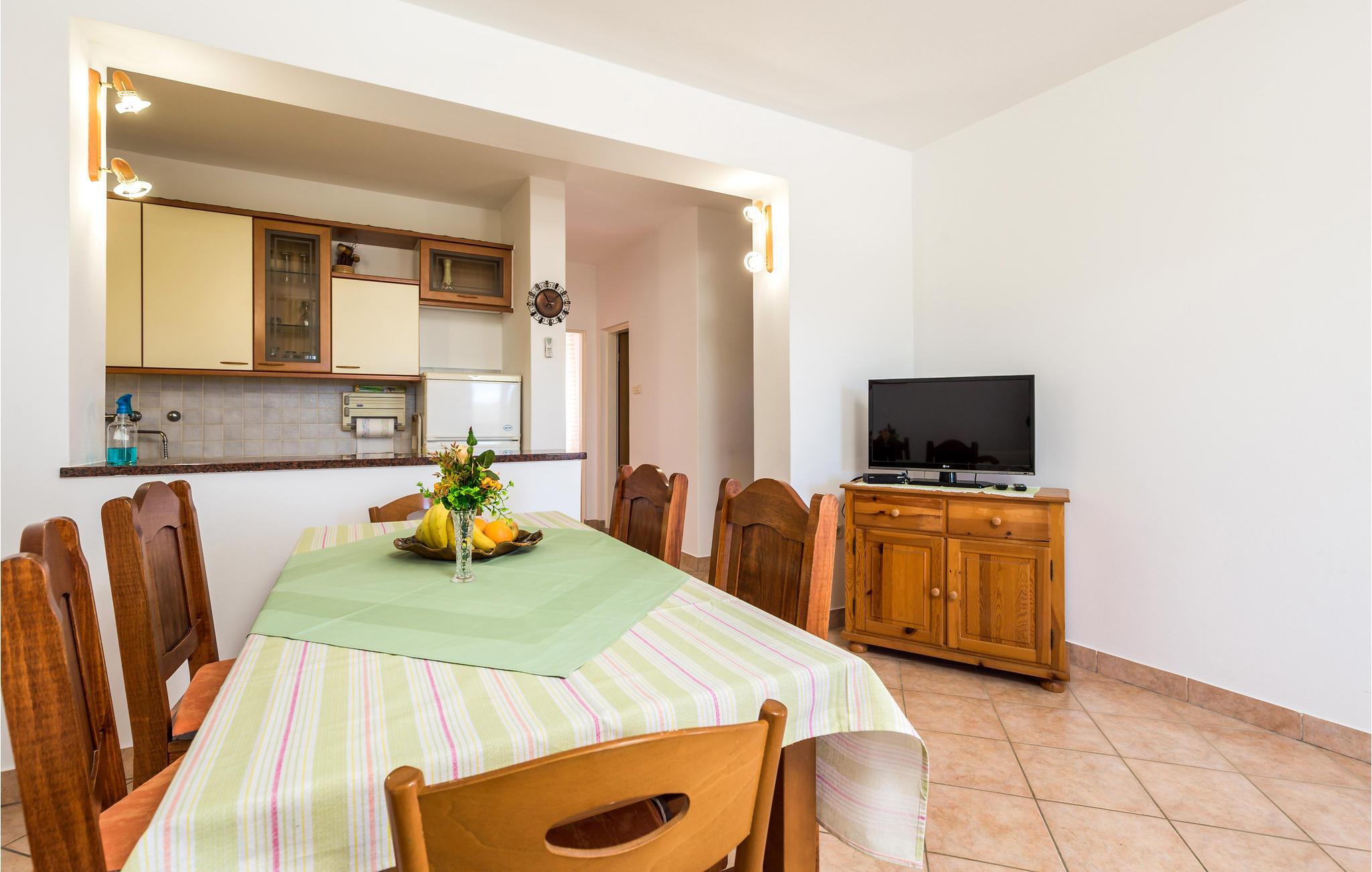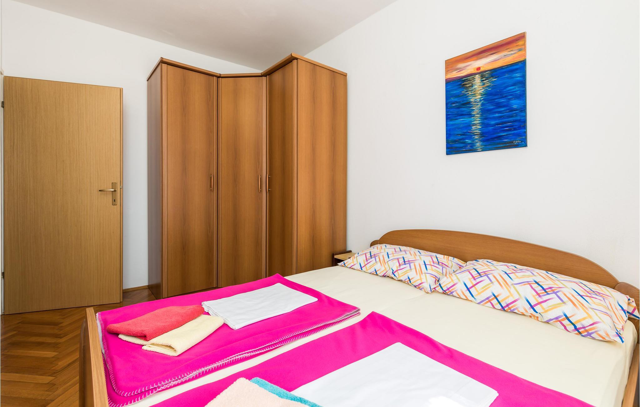 Den velplejede og komfortabelt møblerede lejlighed byder sine gæster velkommen på 1. sal i et hus og tilbyder en smuk udsigt over havet. 5 personer kan indkvarteres komfortabelt her. Takket være klimaanlægget kan I nyde behagelige temperaturer her selv på varme sommerdage.