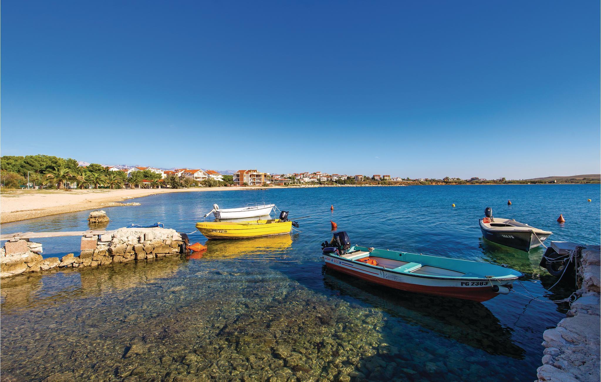 Hold ferien næsten lige ved havet i den lille by Povljana i denne dejlige ferielejlighed. De behageligt indrettede ferielejligheder har en betagende panoramaudsigt over havet. I den øverste lejlighed under taget er der skrå vægge der går ned til ca. 100 cm i siden. I Povljana er der skønne kiesstrande samt cykelstier og gode forhold til wind- og kitesurfere. Besøg også de populære byer Pag og Novalja, med vidunderlige strande og mange former for sommerunderholdning. På denne ø er det næsten obligatoriske at smage den dejlige Pager ost og det meget velsmagende lokale lammekød samt de lokale vine og lad jer underholde af øens mange lokale musikere når I spiser ude.