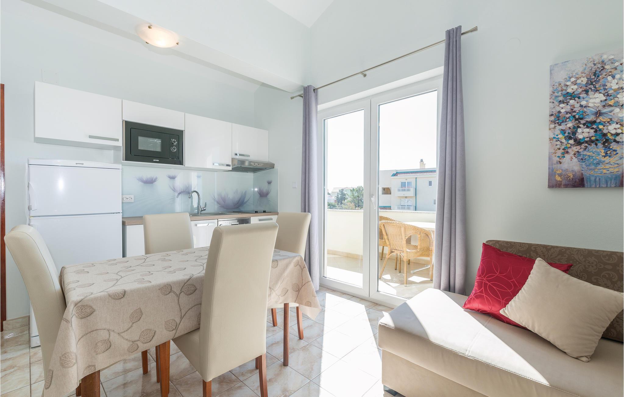 Direkte ved den herlige kiesstrand ligger disse ferielejligheder med pool og storartet udsigt fra altanerne. Lejlighederne råder over fælles whrilpool og swimmingpool. Charmerende skråvægge med en lofthøjde på 140 cm i CKP672 og med en lofthøjde på 120 cm i CKP673. Ved siden af ferieboligen ligger en restaurant og café med billard og bordfodbold. Øen Pag har meget at byde på: besøg talrige fantastisk flotte strande, gemte bugter, partystranden Zrce og parken med oliventræerne i Lun. Smag på Pags ost Gligora, en verdenskendt og prisbelønnet fåreost og smag på Pags lammekød. Gå ikke glip af et besøg i byen Zadar med mange seværdigheder og efter Alfred Hitchcocks mening verdens flotteste solnedgang.
