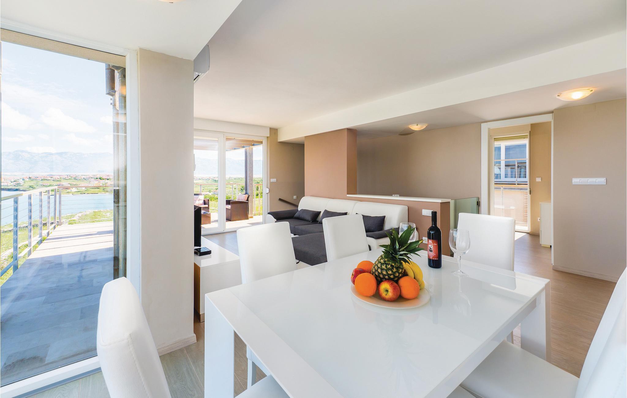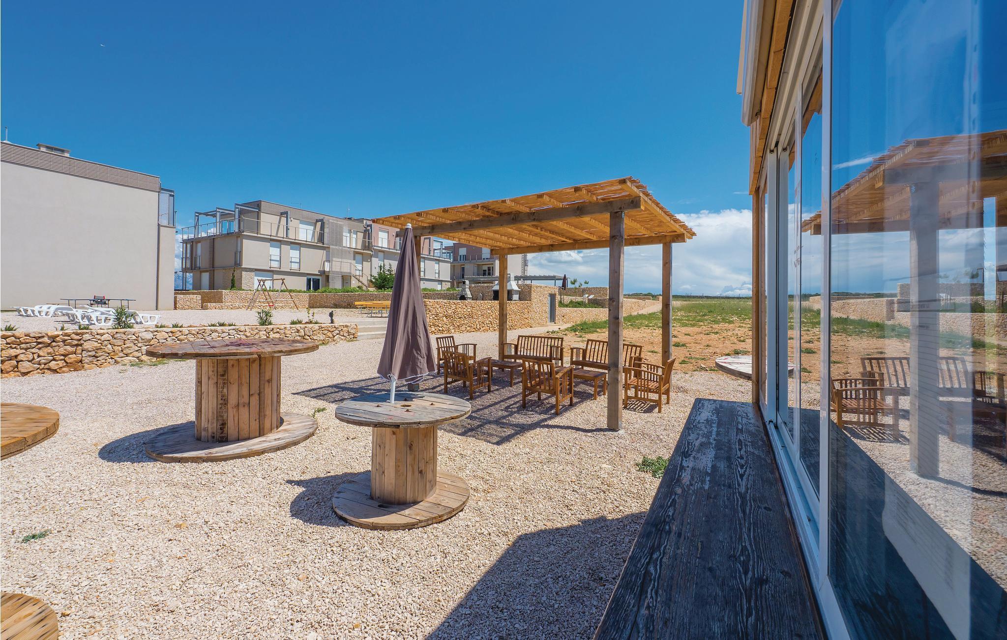 I skønne omgivelser, i Povljanas opland og med betagende udsigt over havet og naturen, ligger disse moderne private huse med flere lejligheder, med fælles pool og andre fælles faciliteter. I hvert hus er der godt udstyrede ferielejligheder. Øen Pag er forbundet til fastlandet med bro, og har utallige skønne kies- eller sandstrande, fremragende restauranter, mange former for underholdning for unge, naturskønheder og cykelstier. Smag på øens gastronomiske specialiteter som Pagerost og fremragende lammekød. Det kan anbefales at køre en tur til Zadar med fortryllende gammel bydel men også moderne seværdigheder. Ved havnepromenaden forvandler bølgernes brus til sære toner i Havorgelet og Hilsen til solen forvandles til et tæppe af farver når solen synker i havet. De sidste kilometer op til huset er en grusvej.