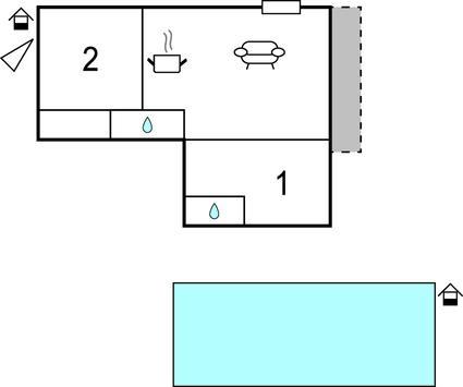 Opholdsstue/køkken - 1 Soveplads. (Sofa, madras eller lignende).