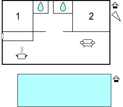Opholdsstue/køkken - 1 Soveplads. (Sofa, madras eller lignende).