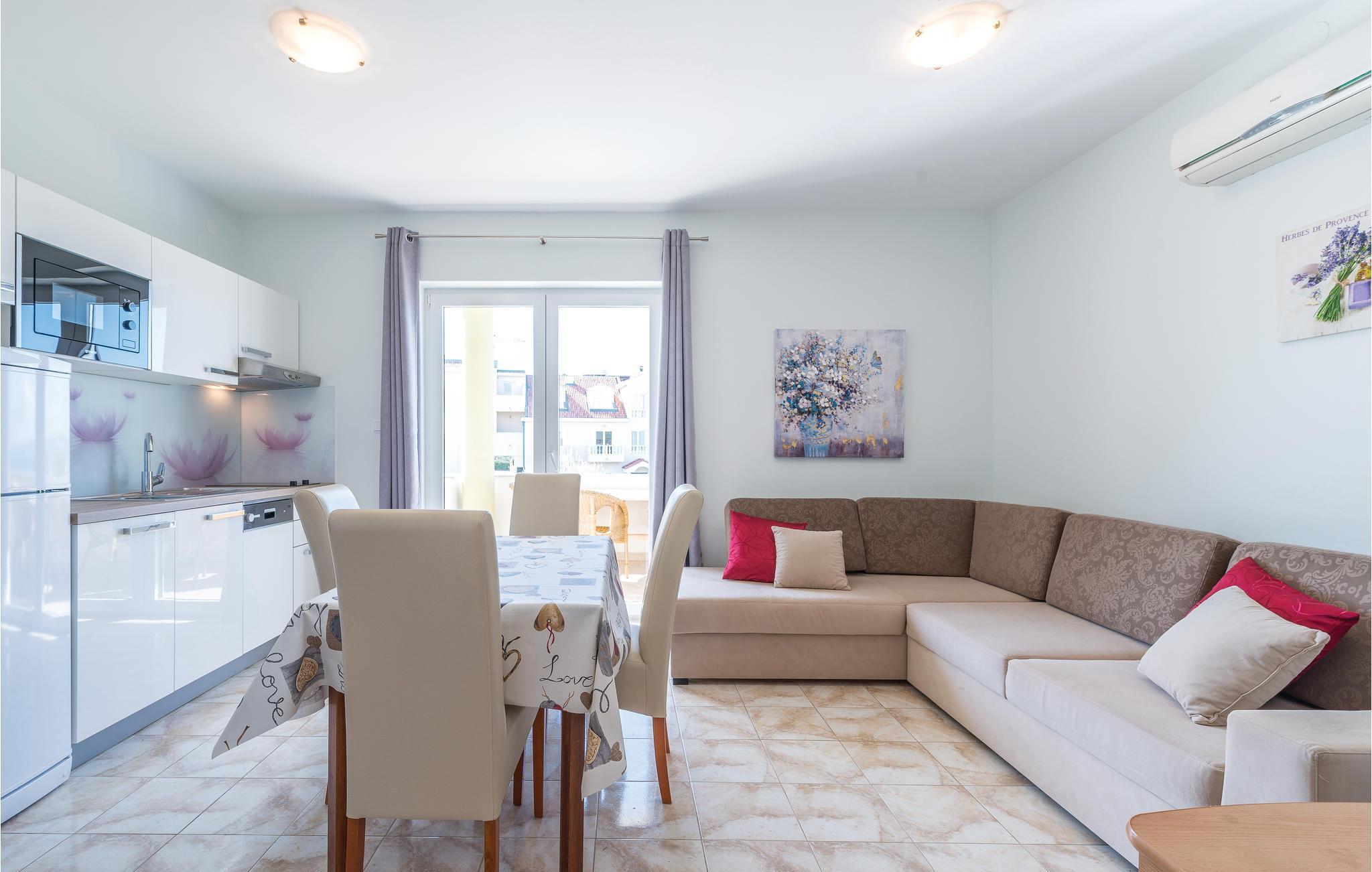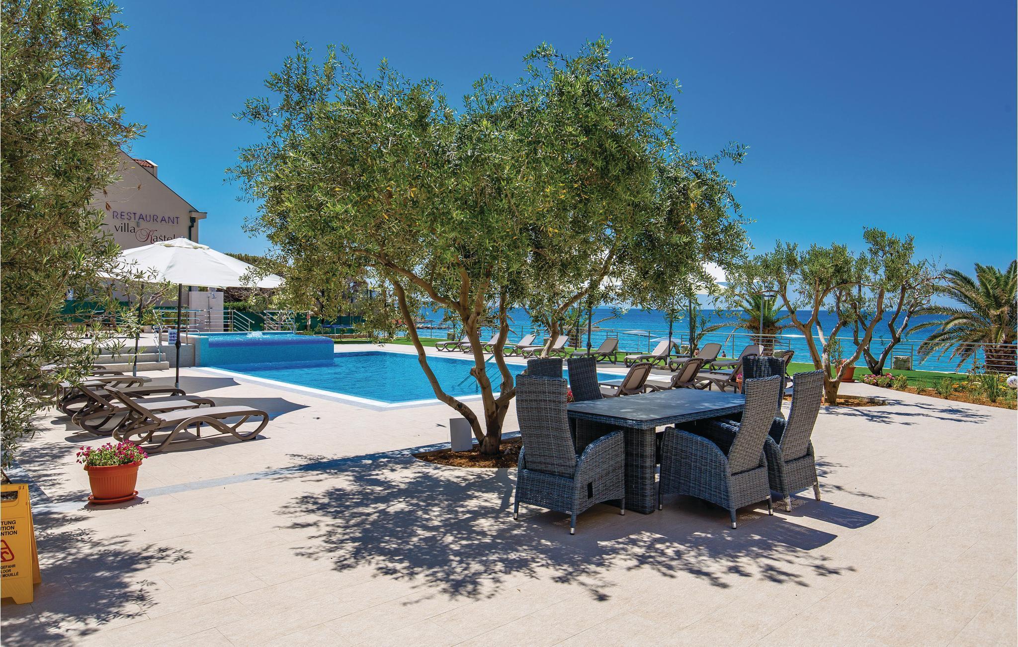 Direkte ved den dejlige grusstrand ligger disse ferieljligheder med fantastisk udsigt fra altanerne. Skråvægge i CKP672 på 140 cm og i CKP673 på 120 cm. Lejlighederne CKP801, 802 og 804 ligger på 1. sal. Lejlighederne har fælles adgang til whirlpool og swimmingpool. Ved siden af boligen er der en restaurant og café med billard og bordfodbold. Pag byder på smukke strande og hemmelige bugter, øen er også kendt for god gastronomi: osten Gligora og lammekødet fra Prag har vundet internationale priser. Besøg også byen Zadar og oplev den smukkeste solnedgang i hele verden, ifølge Alfred Hitchcock.