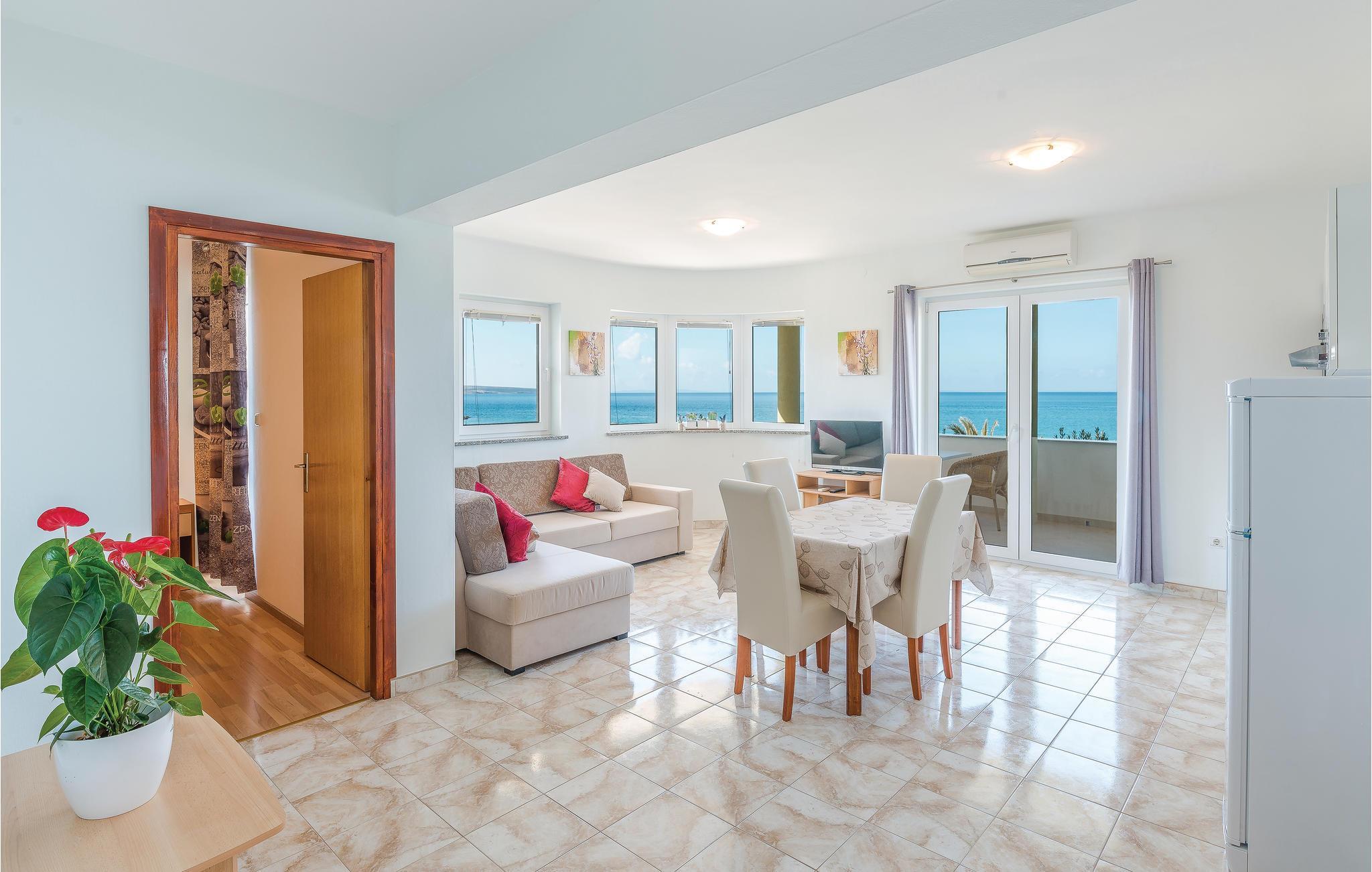 Direkte ved den dejlige grusstrand ligger disse ferieljligheder med fantastisk udsigt fra altanerne. Skråvægge i CKP672 på 140 cm og i CKP673 på 120 cm. Lejlighederne CKP801, 802 og 804 ligger på 1. sal. Lejlighederne har fælles adgang til whirlpool og swimmingpool. Ved siden af boligen er der en restaurant og café med billard og bordfodbold. Pag byder på smukke strande og hemmelige bugter, øen er også kendt for god gastronomi: osten Gligora og lammekødet fra Prag har vundet internationale priser. Besøg også byen Zadar og oplev den smukkeste solnedgang i hele verden, ifølge Alfred Hitchcock.