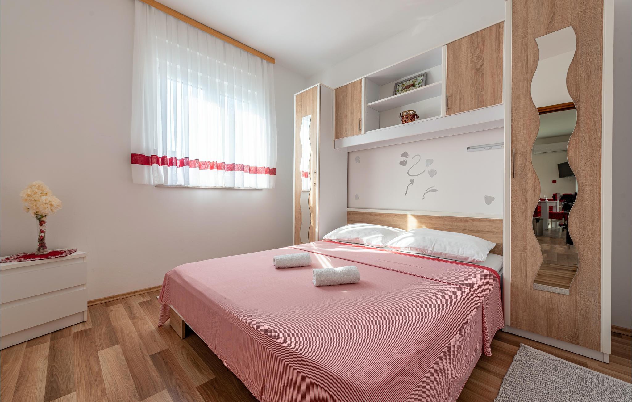 Disse enkelt og praktisk indrettede ferielejligheder ligger på første sal i en privat ejendom, på solskinsøen Pag, i Dalmatienregionen. Glæd jer til at slappe af på terrassen, med delvis udsigt over havet, i haven er der en fælles grill der kan benyttes af alle i huset. Her kan I nyde øens gode mad og drikke den lokale vin og bare hygge jer sammen. Øens vidunderlige strande, den fascinerende kulturarv og de fremragende underholdningsmuligheder er nogle grundene til at besøge denne fantastiske ferieø, hvor der også venter specialiteter som ost, lammesteg og en lang tradition for at lave flortynde kniplinger af høj kvalitet.