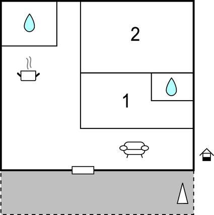 Opholdsstue/køkken 30m2 - 2 Sovepladser. (Sofa, madras eller lignende).