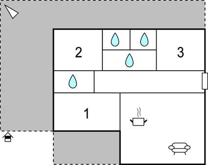 Soveværelse 12m2 (nr. 1) - 1 Soveplads. (Enkeltseng(e)). 2 Sovepladser. (Dobbeltseng(e)).