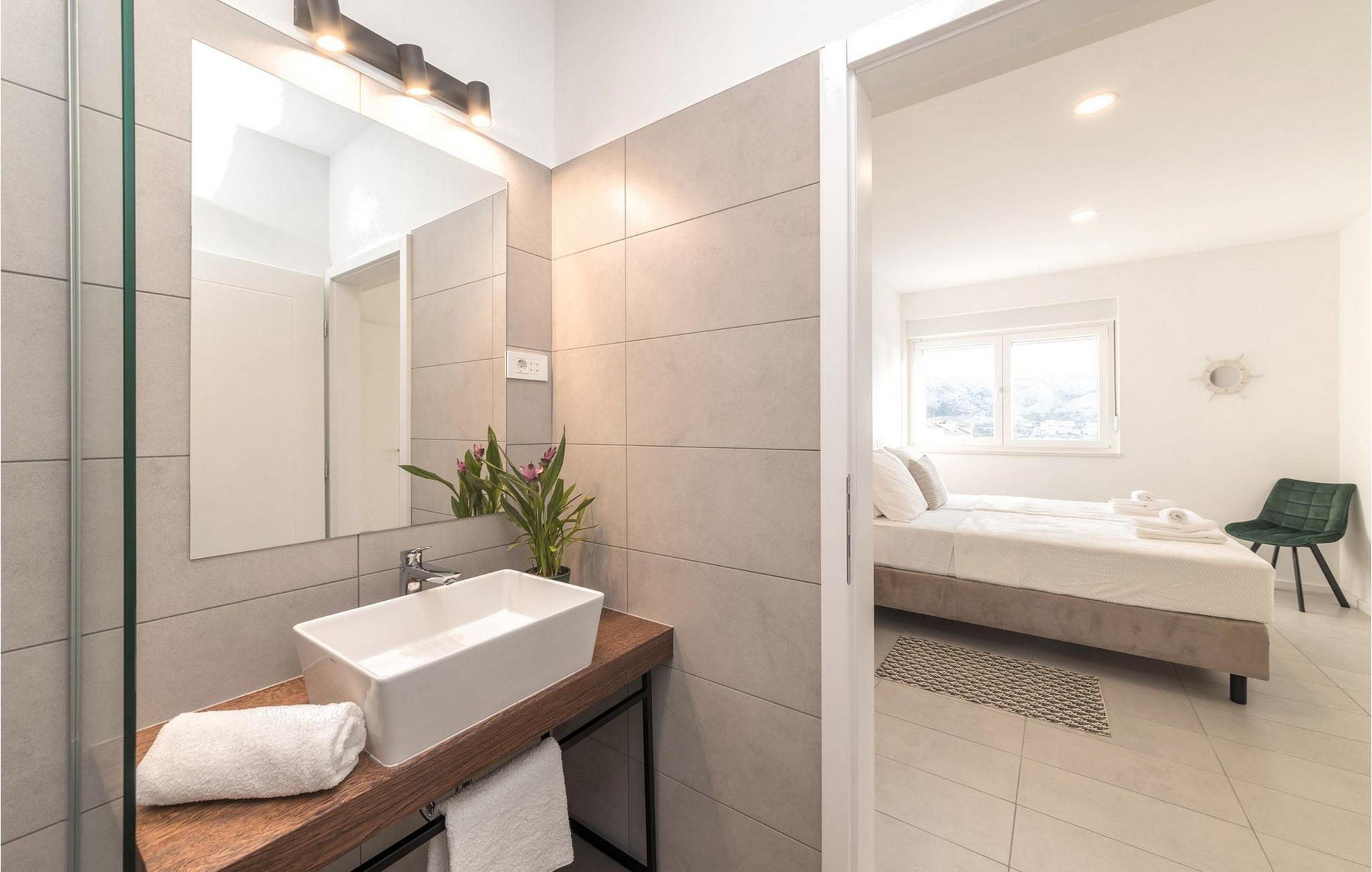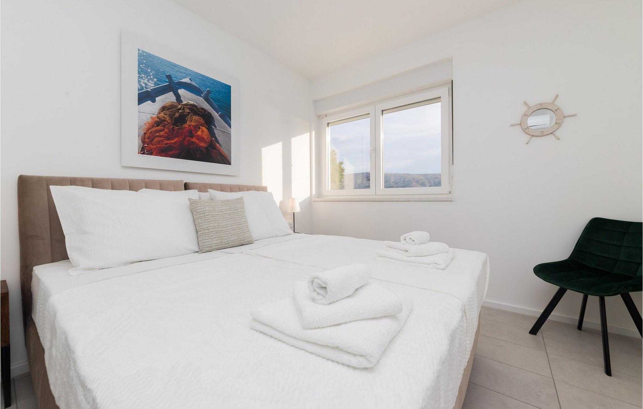 Øen Pag er et kongerige af klipper og fantastiske landskaber, Pag blonder og gastronomisk luksus. Den største by på øen af samme navn er hjemsted for den luksuriøse moderne Villa Valentina med smuk havudsigt og interessante Pag-relieffer. Gæsterne i dette nybyggede hus har 200 m² luksuriøst møbleret plads til deres rådighed, som komfortabelt kan rumme otte til maksimalt ti personer og give dig en uforglemmelig ferie for din familie og venner. Interiøret består af fire komfortable soveværelser med tilhørende badeværelser, et separat toilet og en stueetage, der rummer et fuldt udstyret køkken, en hyggelig spisestue og en stue adskilt fra ydersiden af en stor glasvæg. I den indhegnede have kan du nyde poolen omgivet af liggestole, ideel til at slappe af i solen eller se stjernehimlen. For elskere af havdybder ligger den nærmeste strand kun 200 meter fra denne smukke villa. Så gå ikke glip af at opleve en følelse af forfriskning i det krystalklare hav på varme sommerdage. Denne bolig er ideel til større grupper af gæster, da søstervillaen Venus ligger på den tilstødende ejendom og derfor kan give jeres store familie eller mange venner en uforglemmelig ferie sammen. Vælg en drømmeferie på denne smukke ø med den længste kystlinje i Adriaterhavet og udforsk de mange historiske og naturlige skatte på denne specielle ø. Kæledyr er tilladt på denne ejendom efter ejerens skøn eller mod et gebyr.