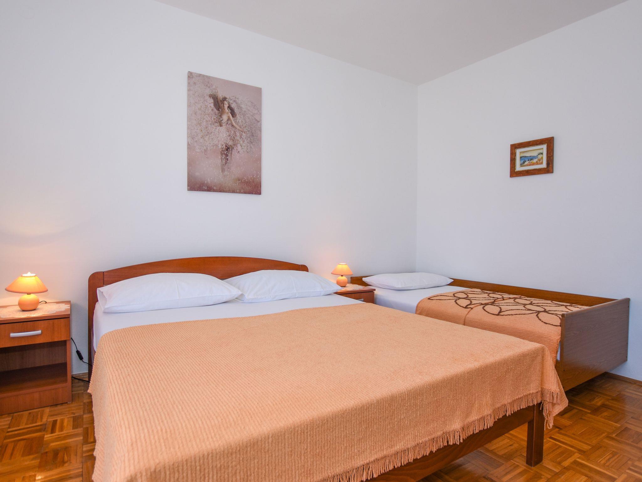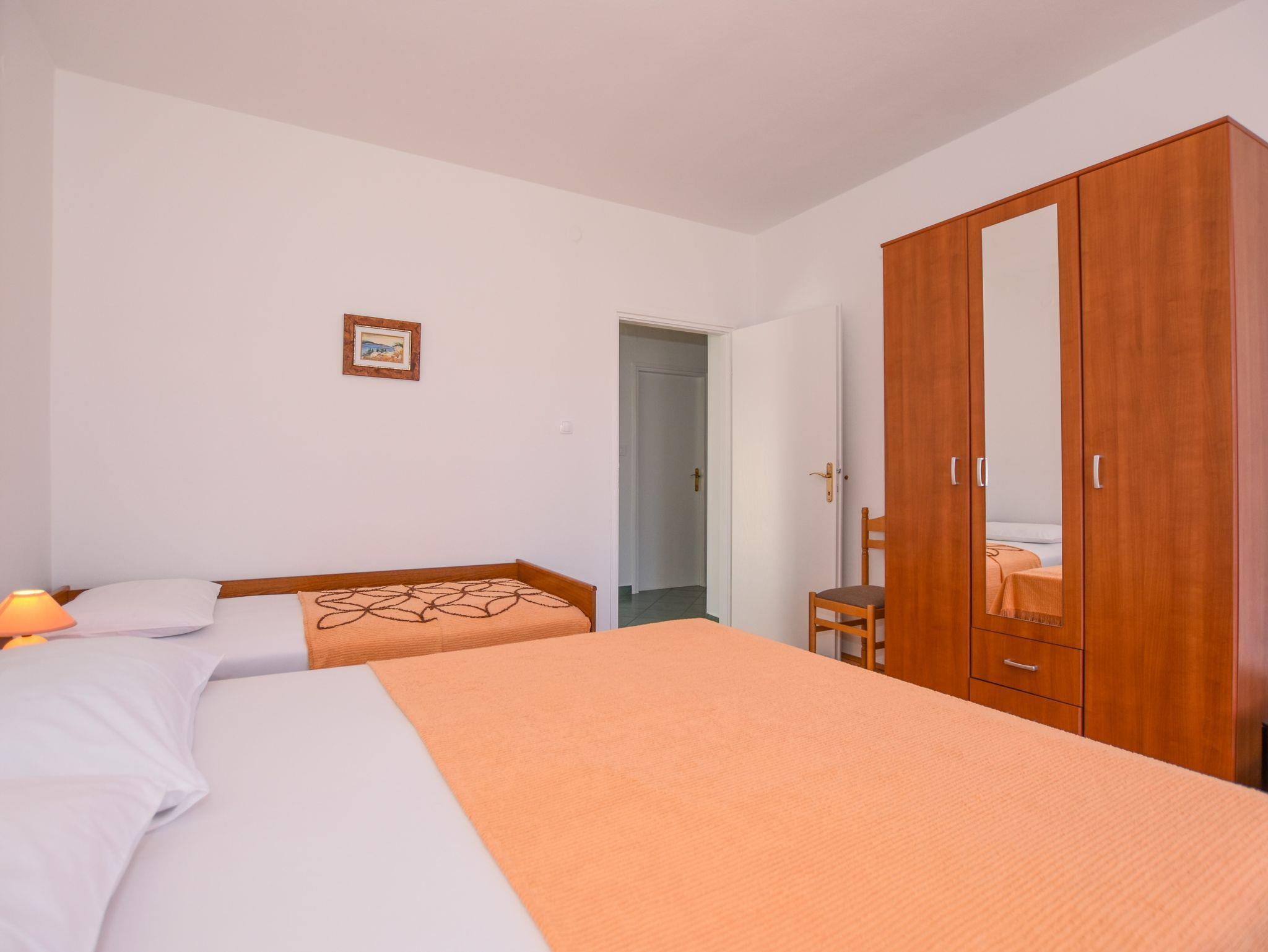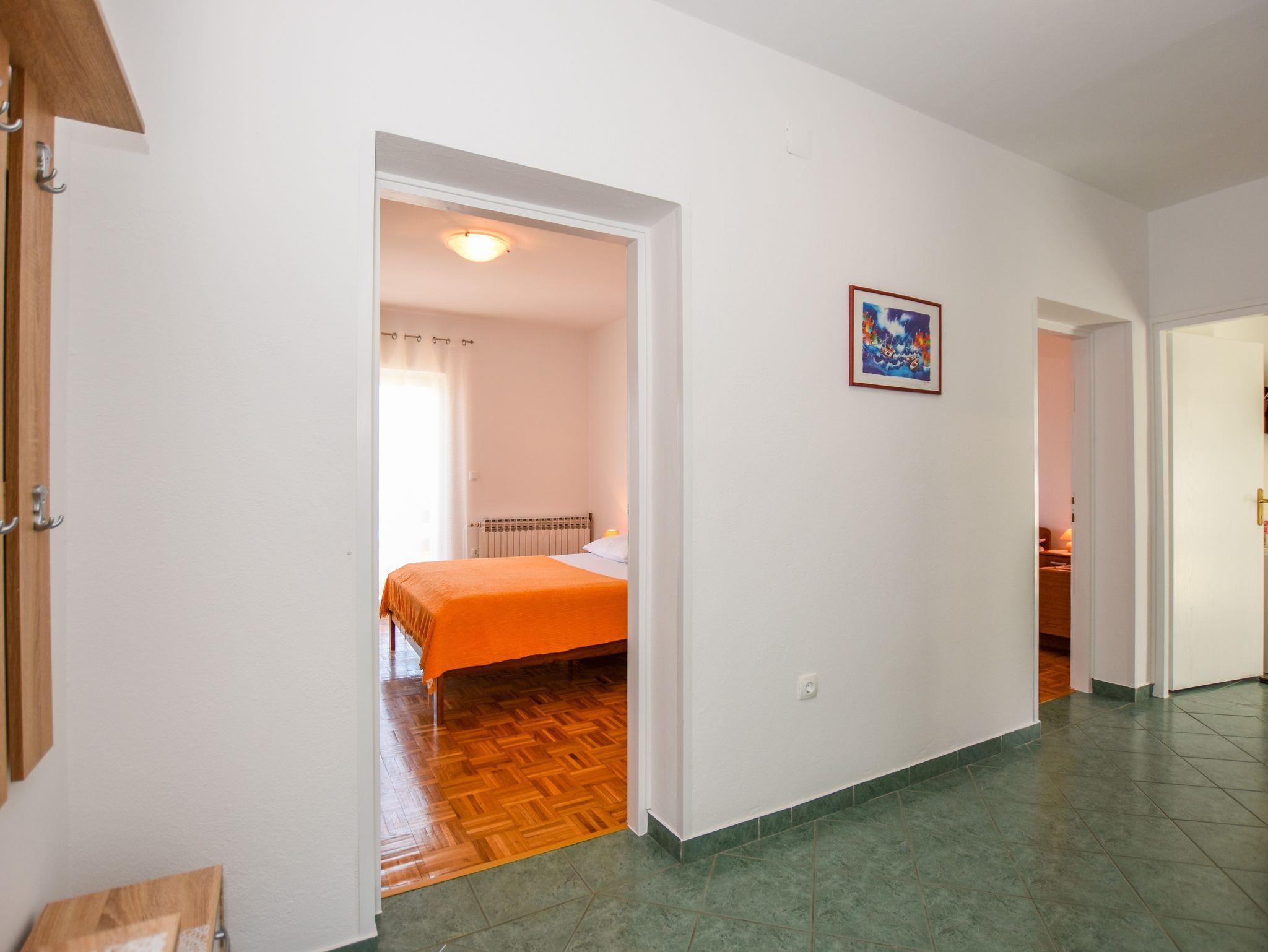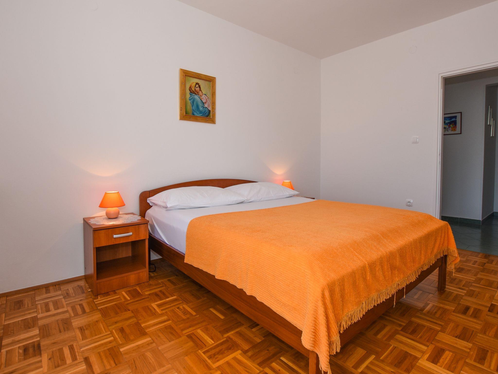 Ferienwohnung bietet Platz für 5 Gäste. Die Betten sind in Schlafzimmern, die es 2 gibt, innerhalb einer Gesamtfläche von 59m2, angeordnet. Die Gäste haben eine eigene Terrasse zur Verfügung, auf der sie in warmen Sommernächten genießen können. Das Apartment bietet Meerblick. Es ist erlaubt, Speisen auf dem Gemeinschafts-Grill vorzubereiten. IM PREIS INBEGRIFFEN: Kurtaxe, Endreinigung, Klimatisierung, Zentralheizung, Parkplatz, Internet, Kinderbett, Bügeleisen, Bügelbrett, Föhn. VERBINDLICHE ZUSÄTZLICHE KOSTEN: Aufzahlung für Kurzaufenthalte (prozentualer Zuschlag pro Nächtigungsanzahl: 30% - 1, 20% - 2, 10% - 3). UNVERBINDLICHE ZUSÄTZLICHE KOSTEN: Wäschewaschen (2,00 € Waschen). Die Verfügbarkeit zusätzlicher Dienstleistungen in Ihrem reservierten Termin und die Preise derselben (falls nicht aufgeführt) müssen im Voraus überprüft werden. Zusätzliche Dienstleistungen die in der Zahlungsaufforderung nicht aufgeführt sind werden direkt beim Vermieter bezahlt, angenommen der Gast nutzt auch diese. Ermäßigung auf den Grundpreis: Gratistag 21=19 (bei einem Aufenthalt von 21 Tagen oder mehr erhalten Sie 2 Gratistage für den Aufenthalt bis 31.12.26).