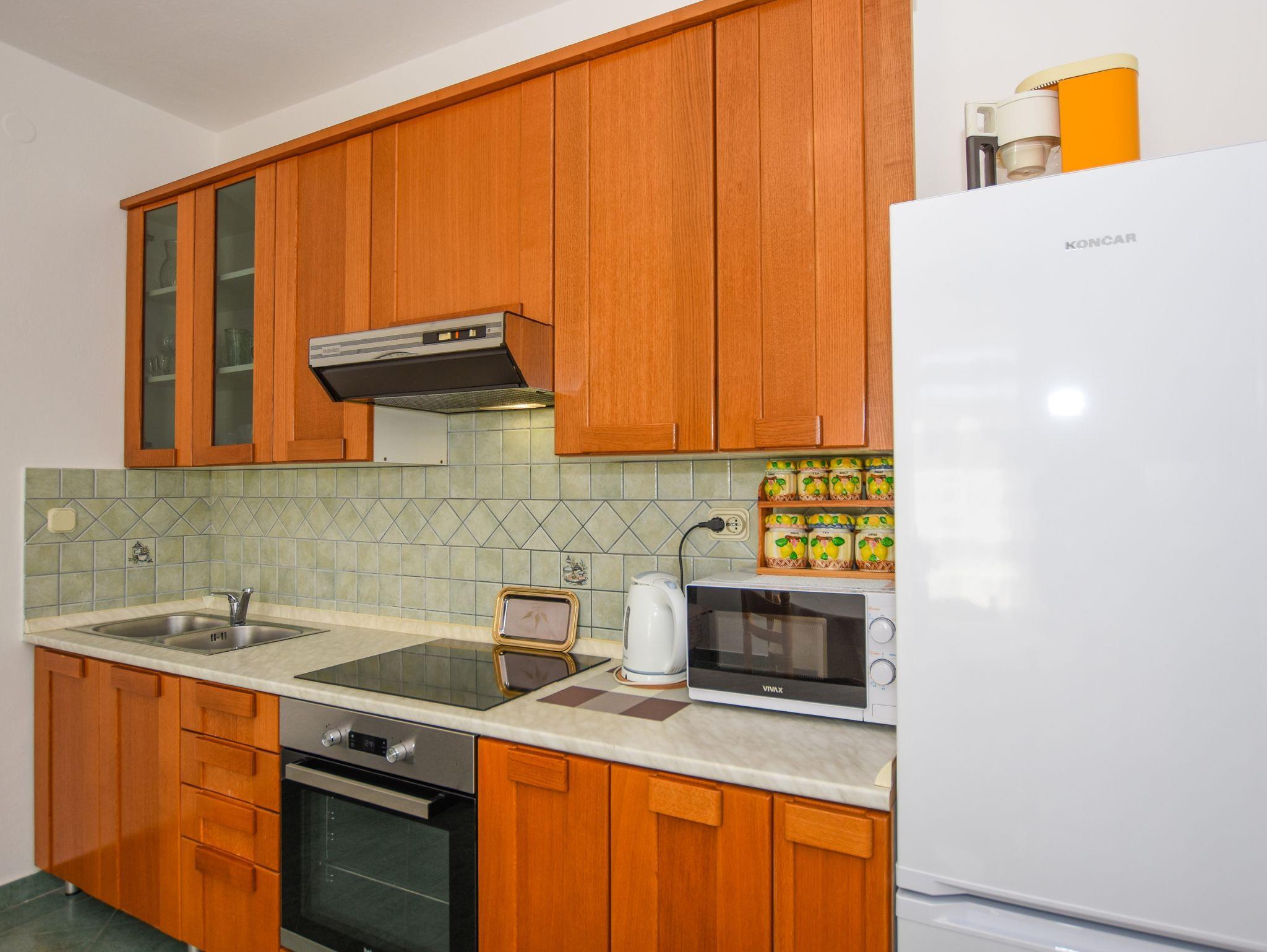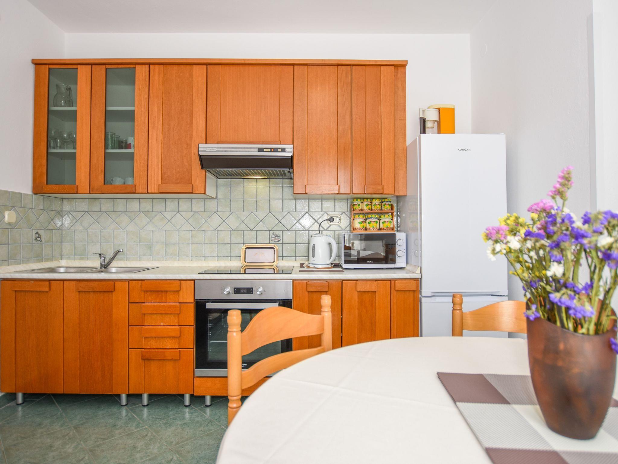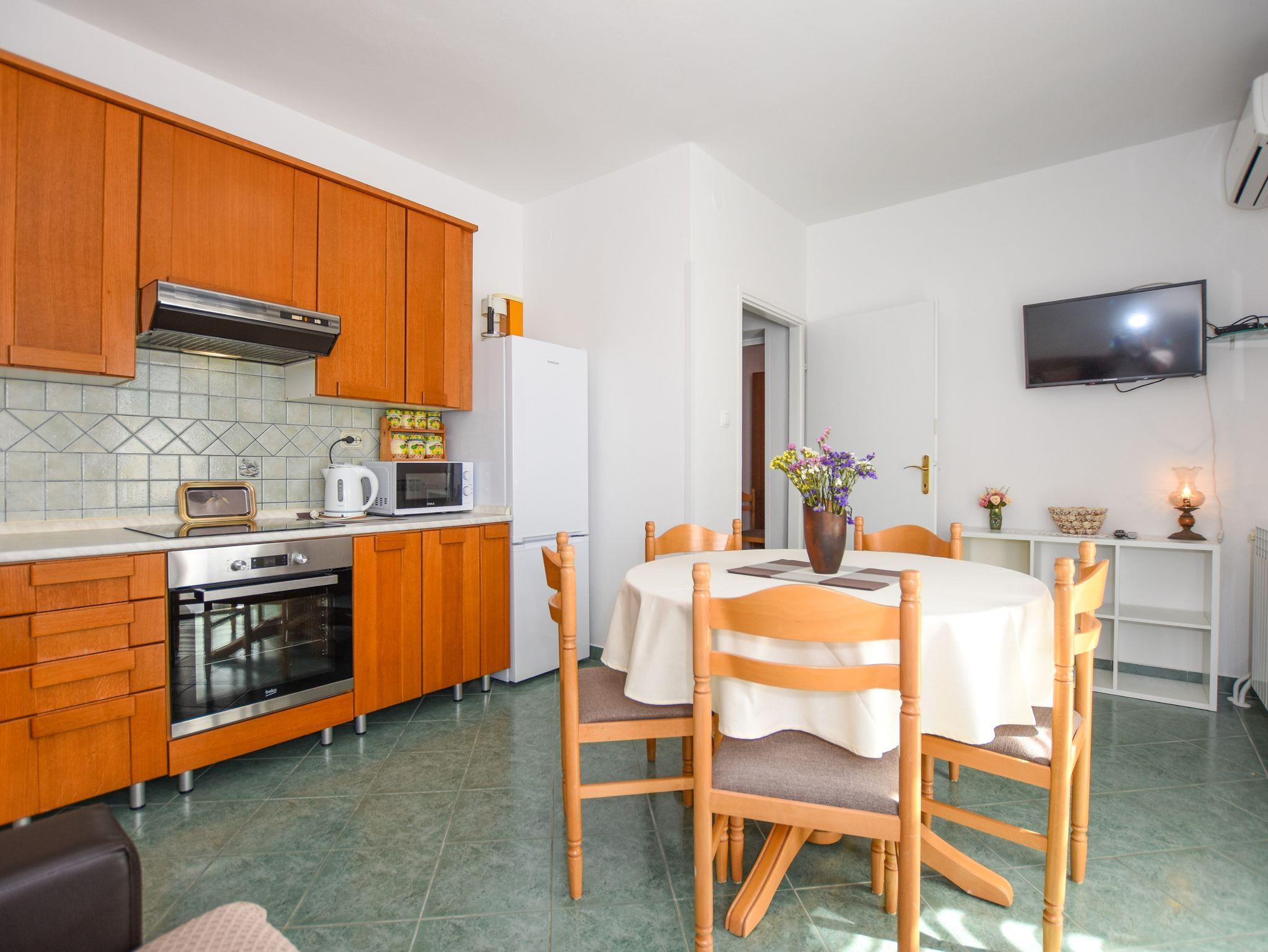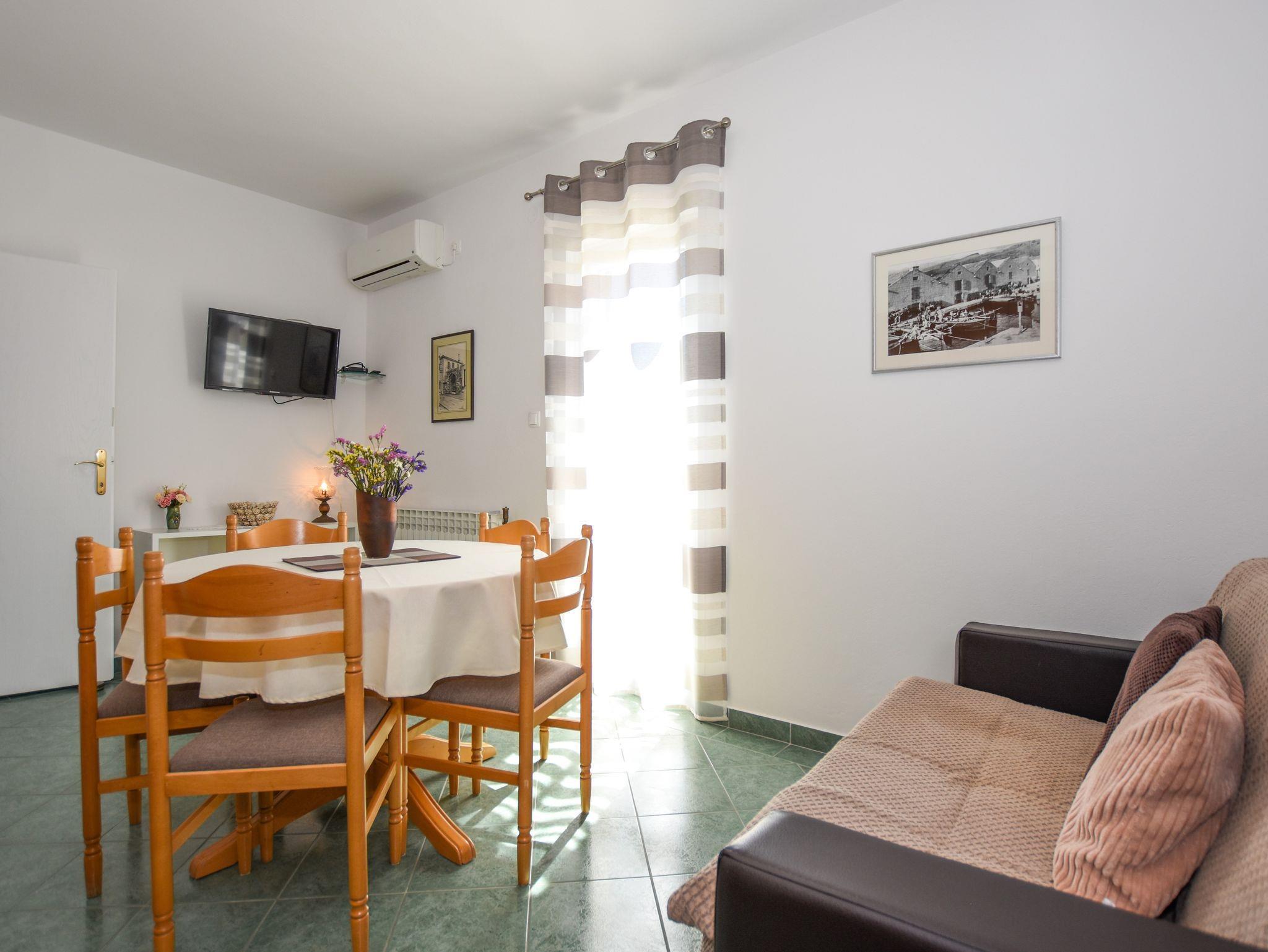 Ferienwohnung bietet Platz für 5 Gäste. Die Betten sind in Schlafzimmern, die es 2 gibt, innerhalb einer Gesamtfläche von 59m2, angeordnet. Die Gäste haben eine eigene Terrasse zur Verfügung, auf der sie in warmen Sommernächten genießen können. Das Apartment bietet Meerblick. Es ist erlaubt, Speisen auf dem Gemeinschafts-Grill vorzubereiten. IM PREIS INBEGRIFFEN: Kurtaxe, Endreinigung, Klimatisierung, Zentralheizung, Parkplatz, Internet, Kinderbett, Bügeleisen, Bügelbrett, Föhn. VERBINDLICHE ZUSÄTZLICHE KOSTEN: Aufzahlung für Kurzaufenthalte (prozentualer Zuschlag pro Nächtigungsanzahl: 30% - 1, 20% - 2, 10% - 3). UNVERBINDLICHE ZUSÄTZLICHE KOSTEN: Wäschewaschen (2,00 € Waschen). Die Verfügbarkeit zusätzlicher Dienstleistungen in Ihrem reservierten Termin und die Preise derselben (falls nicht aufgeführt) müssen im Voraus überprüft werden. Zusätzliche Dienstleistungen die in der Zahlungsaufforderung nicht aufgeführt sind werden direkt beim Vermieter bezahlt, angenommen der Gast nutzt auch diese. Ermäßigung auf den Grundpreis: Gratistag 21=19 (bei einem Aufenthalt von 21 Tagen oder mehr erhalten Sie 2 Gratistage für den Aufenthalt bis 31.12.26).