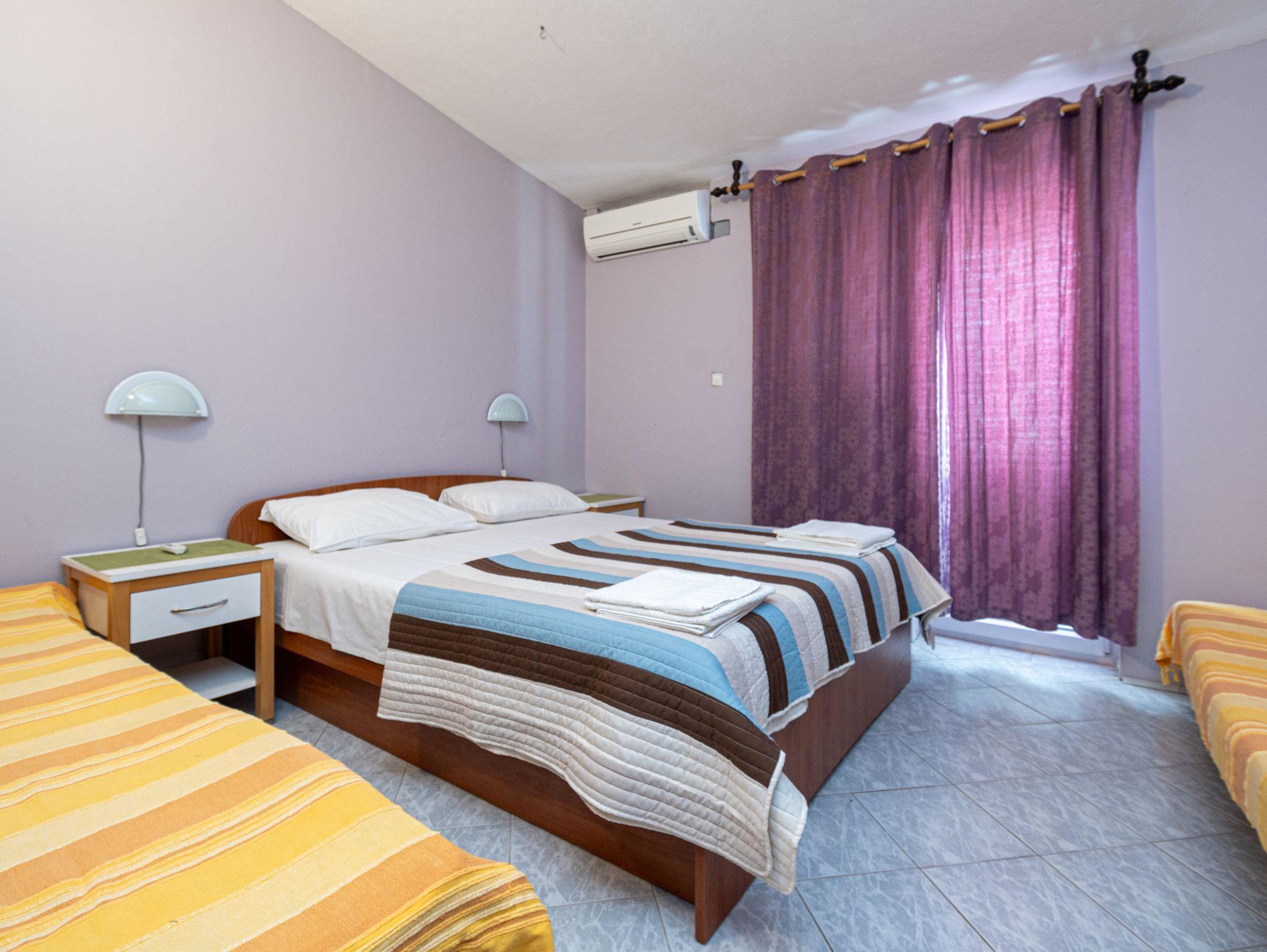 Ferienwohnung bietet Platz für 4 Gäste. Die Betten sind in Schlafzimmern, die es 1 gibt, innerhalb einer Gesamtfläche von 24m2, angeordnet. Die Gäste haben eine eigene Terrasse zur Verfügung, auf der sie in warmen Sommernächten genießen können. Das Apartment bietet Meerblick. In der Unterkunftseinheit besteht die Möglichkeit des Mitbringens von Haustieren gegen Aufpreis. IM PREIS INBEGRIFFEN: Kurtaxe, Endreinigung, Klimatisierung, Parkplatz, Internet, Bootsanlegeplatz, Kinderbett, Bügeleisen, Bügelbrett, Föhn. VERBINDLICHE ZUSÄTZLICHE KOSTEN: Aufzahlung für Kurzaufenthalte (prozentualer Zuschlag pro Nächtigungsanzahl: 30% - 1, 20% - 2, 10% - 3). UNVERBINDLICHE ZUSÄTZLICHE KOSTEN: Haustiere (7,00 € pro Nacht), Zusatzbett (20,00 € pro Nacht). Die Verfügbarkeit zusätzlicher Dienstleistungen in Ihrem reservierten Termin und die Preise derselben (falls nicht aufgeführt) müssen im Voraus überprüft werden. Zusätzliche Dienstleistungen die in der Zahlungsaufforderung nicht aufgeführt sind werden direkt beim Vermieter bezahlt, angenommen der Gast nutzt auch diese.