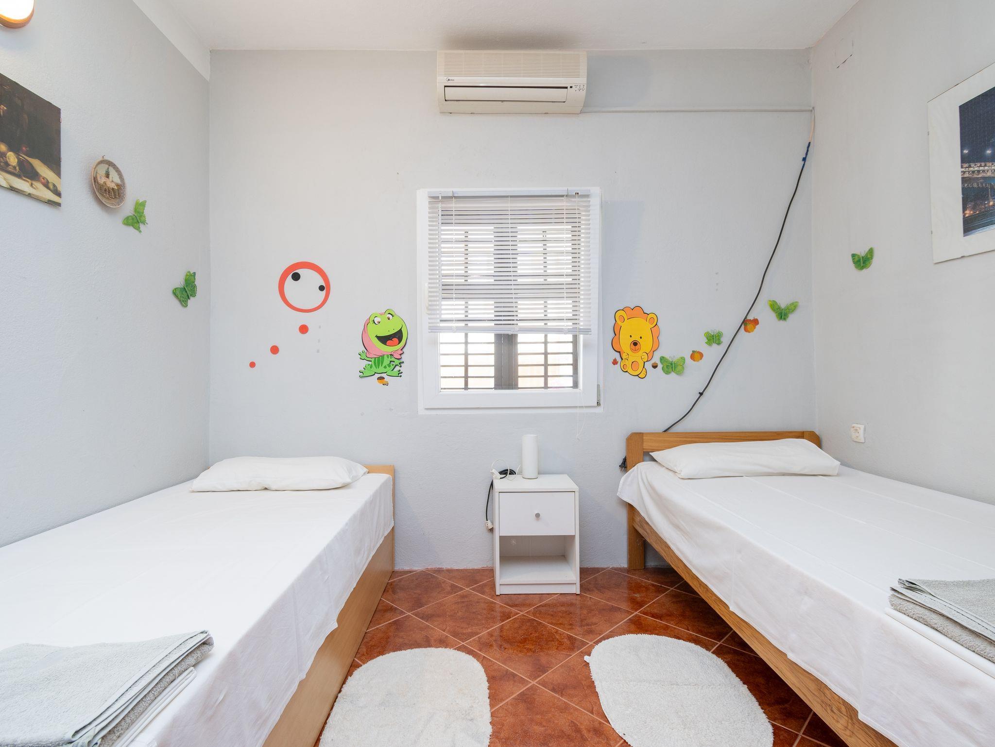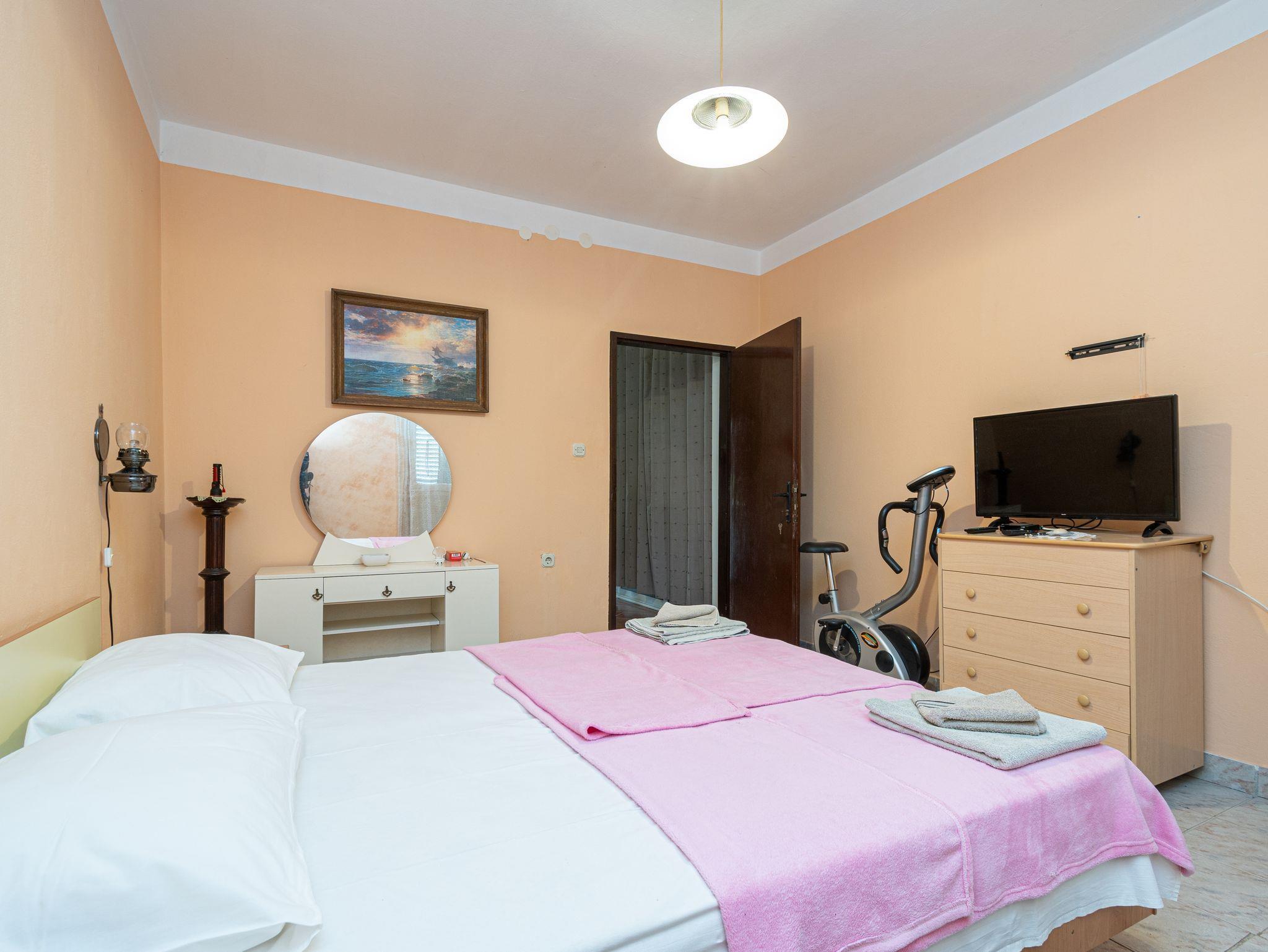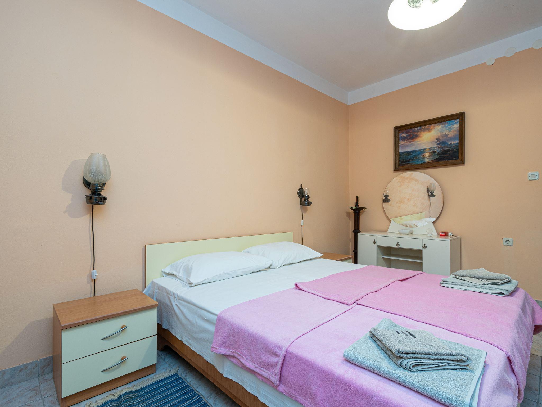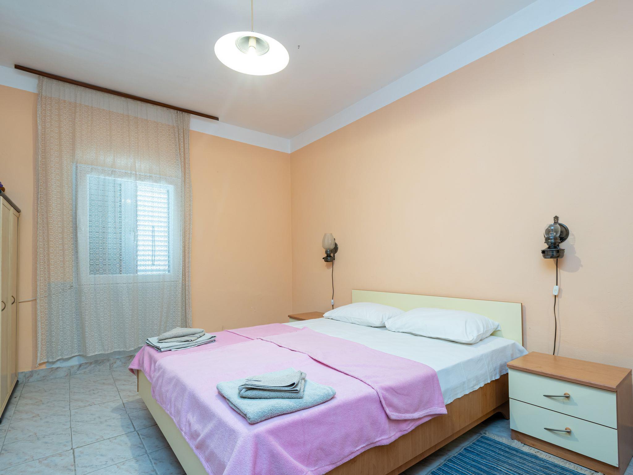 Ferienwohnung bietet Platz für 4 Gäste. Die Betten sind in Schlafzimmern, die es 2 gibt, innerhalb einer Gesamtfläche von 34m2, angeordnet. Die Gäste haben eine eigene Terrasse zur Verfügung, auf der sie in warmen Sommernächten genießen können. Das Apartment bietet Meerblick. In der Unterkunftseinheit besteht die Möglichkeit des Mitbringens von Haustieren gegen Aufpreis. IM PREIS INBEGRIFFEN: Kurtaxe, Endreinigung, Klimatisierung, Parkplatz, Internet, Bootsanlegeplatz, Kinderbett, Bügeleisen, Bügelbrett, Föhn. VERBINDLICHE ZUSÄTZLICHE KOSTEN: Aufzahlung für Kurzaufenthalte (prozentualer Zuschlag pro Nächtigungsanzahl: 30% - 1, 20% - 2, 10% - 3). UNVERBINDLICHE ZUSÄTZLICHE KOSTEN: Haustiere (7,00 € pro Nacht), Zusatzbett (20,00 € pro Nacht). Die Verfügbarkeit zusätzlicher Dienstleistungen in Ihrem reservierten Termin und die Preise derselben (falls nicht aufgeführt) müssen im Voraus überprüft werden. Zusätzliche Dienstleistungen die in der Zahlungsaufforderung nicht aufgeführt sind werden direkt beim Vermieter bezahlt, angenommen der Gast nutzt auch diese.