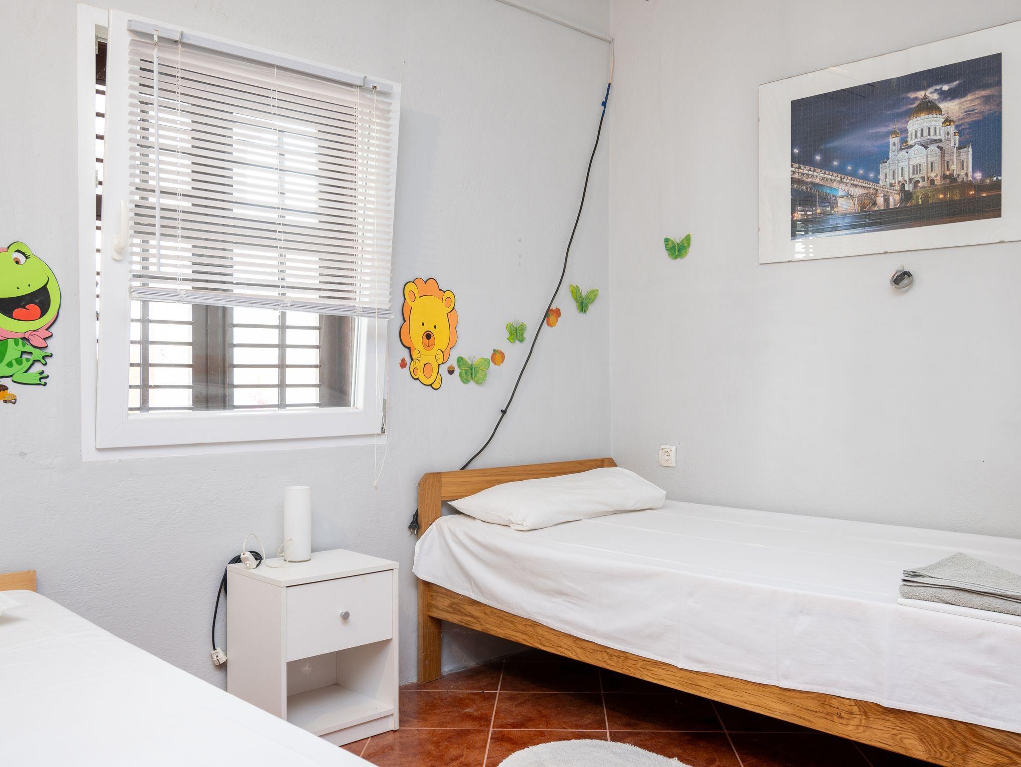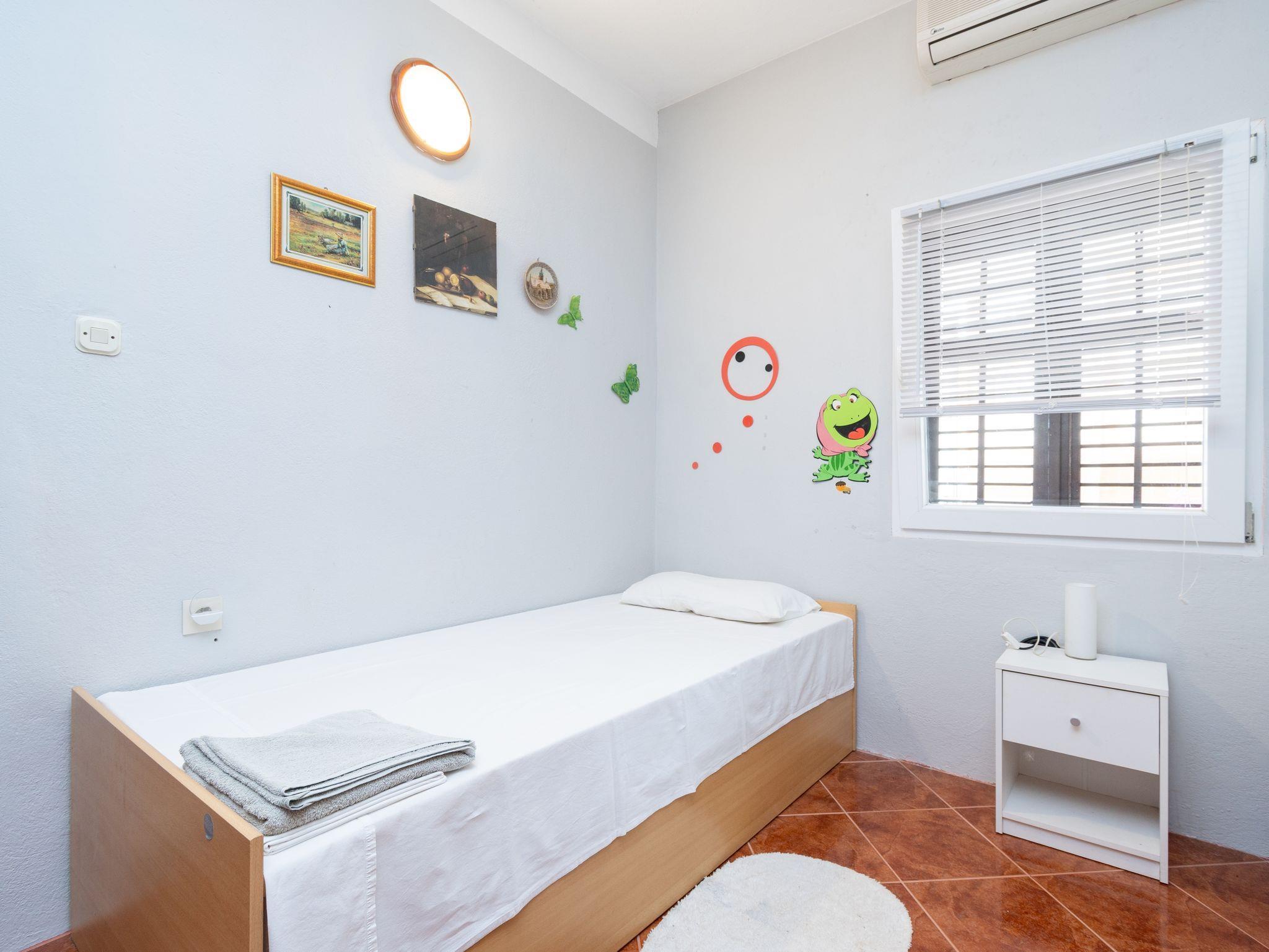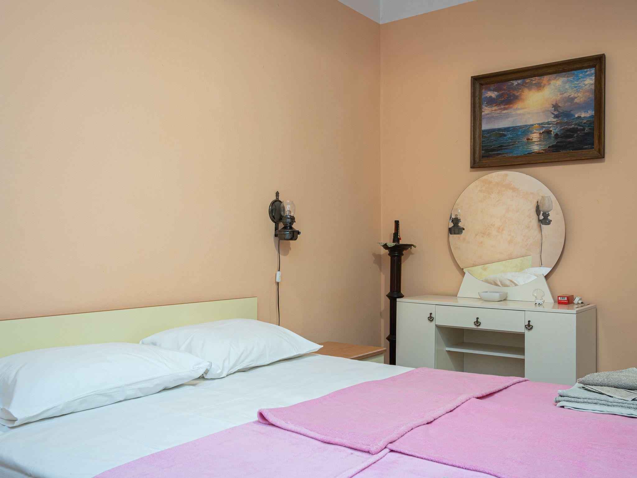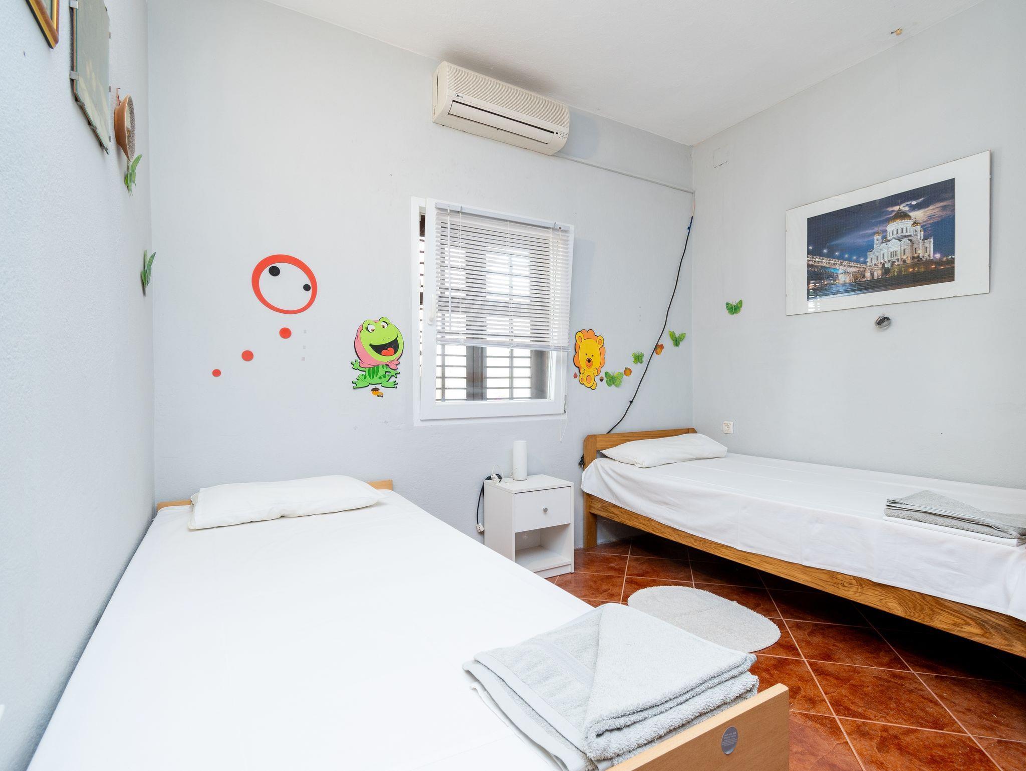 Ferienwohnung bietet Platz für 4 Gäste. Die Betten sind in Schlafzimmern, die es 2 gibt, innerhalb einer Gesamtfläche von 34m2, angeordnet. Die Gäste haben eine eigene Terrasse zur Verfügung, auf der sie in warmen Sommernächten genießen können. Das Apartment bietet Meerblick. In der Unterkunftseinheit besteht die Möglichkeit des Mitbringens von Haustieren gegen Aufpreis. IM PREIS INBEGRIFFEN: Kurtaxe, Endreinigung, Klimatisierung, Parkplatz, Internet, Bootsanlegeplatz, Kinderbett, Bügeleisen, Bügelbrett, Föhn. VERBINDLICHE ZUSÄTZLICHE KOSTEN: Aufzahlung für Kurzaufenthalte (prozentualer Zuschlag pro Nächtigungsanzahl: 30% - 1, 20% - 2, 10% - 3). UNVERBINDLICHE ZUSÄTZLICHE KOSTEN: Haustiere (7,00 € pro Nacht), Zusatzbett (20,00 € pro Nacht). Die Verfügbarkeit zusätzlicher Dienstleistungen in Ihrem reservierten Termin und die Preise derselben (falls nicht aufgeführt) müssen im Voraus überprüft werden. Zusätzliche Dienstleistungen die in der Zahlungsaufforderung nicht aufgeführt sind werden direkt beim Vermieter bezahlt, angenommen der Gast nutzt auch diese.