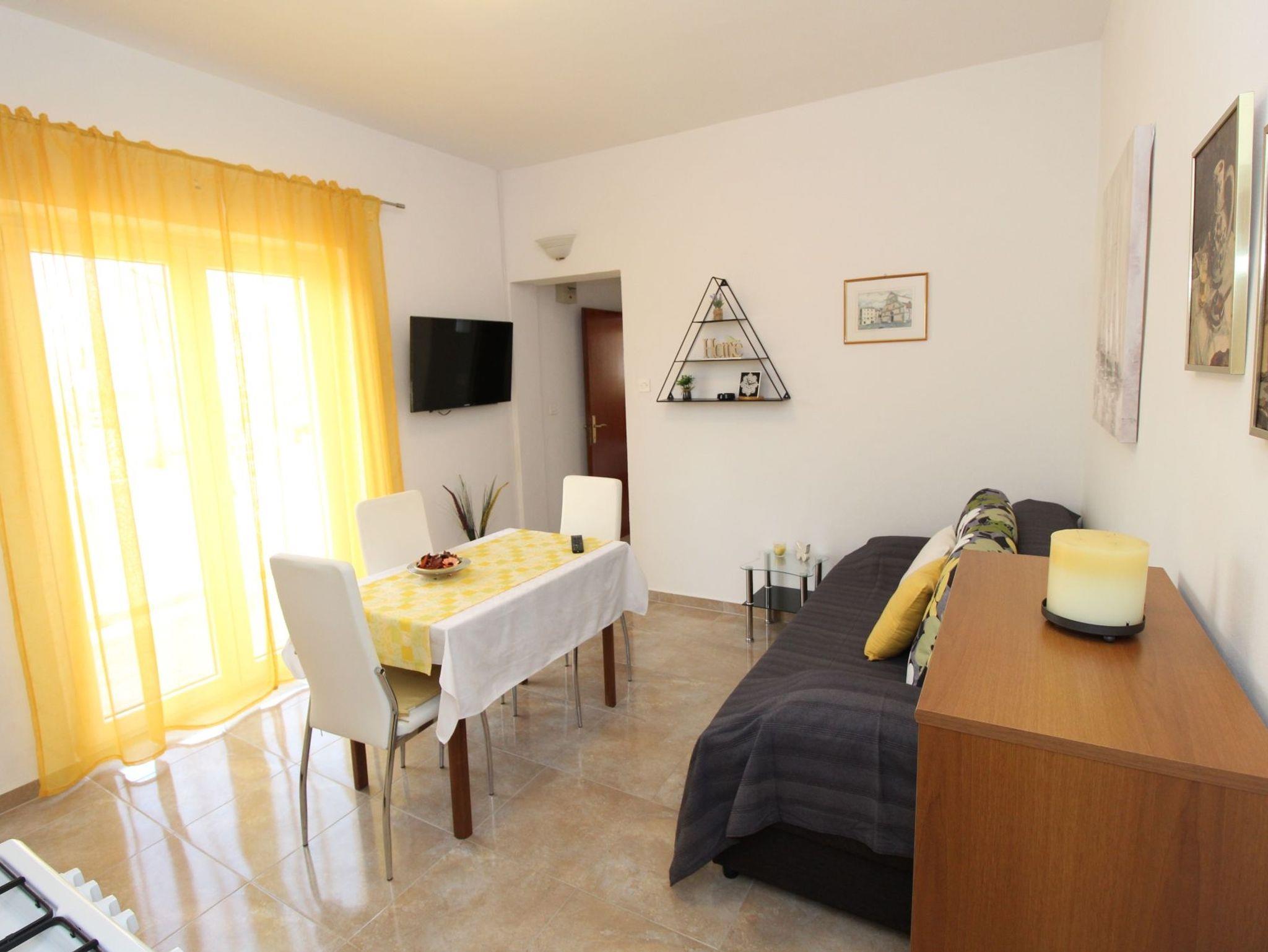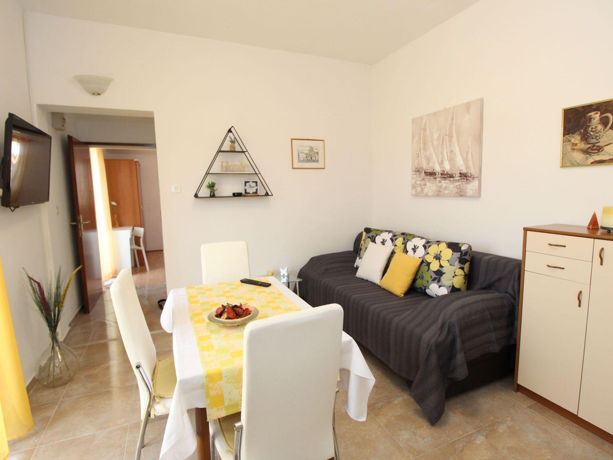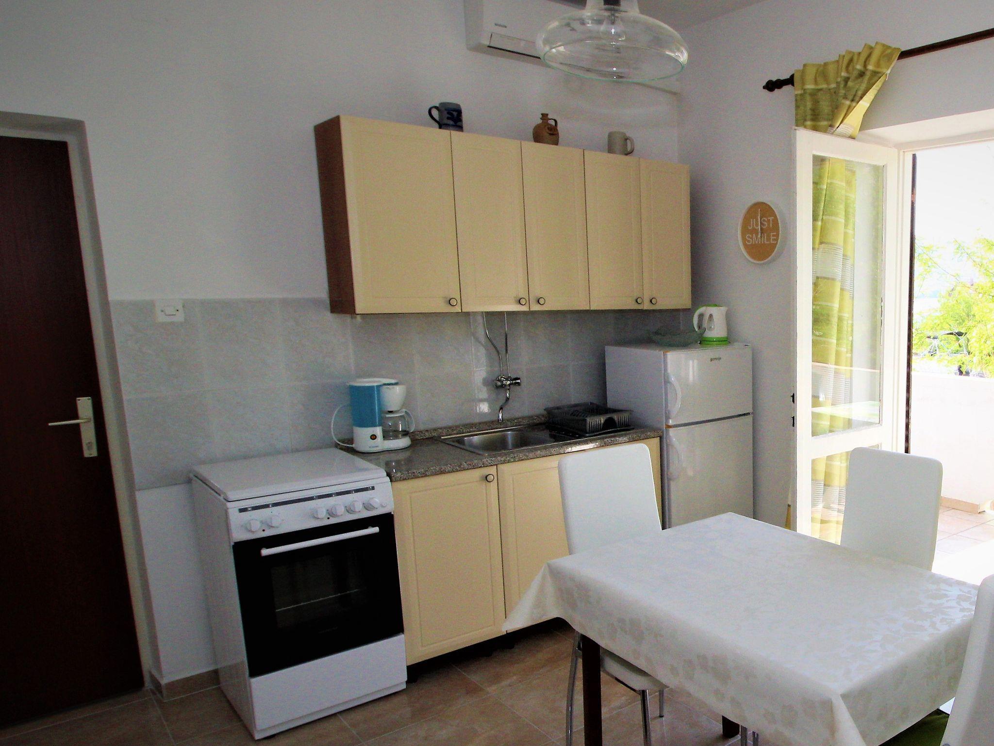 Ferienwohnung bietet Platz für 3 Gäste. Die Betten sind in Schlafzimmern, die es 1 gibt, und in Esszimmer, innerhalb einer Gesamtfläche von 25m2, angeordnet. Die Gäste haben einen eigenen Balkon zur Verfügung, auf der sie in warmen Sommernächten genießen können. Das Apartment bietet Meerblick. Es ist erlaubt, Speisen auf dem Gemeinschafts-Grill vorzubereiten. In der Unterkunftseinheit besteht die Möglichkeit des Mitbringens von Haustieren gegen Aufpreis. IM PREIS INBEGRIFFEN: Kurtaxe, Endreinigung, Parkplatz, Internet, Kinderbett. VERBINDLICHE ZUSÄTZLICHE KOSTEN: Aufzahlung für Kurzaufenthalte (prozentualer Zuschlag pro Nächtigungsanzahl: 30% - 1, 20% - 2, 10% - 3). UNVERBINDLICHE ZUSÄTZLICHE KOSTEN: Klimatisierung (7,00 € pro Nacht), Wäschewaschen (5,00 € Waschen), Haustiere (5,00 € pro Nacht). Die Verfügbarkeit zusätzlicher Dienstleistungen in Ihrem reservierten Termin und die Preise derselben (falls nicht aufgeführt) müssen im Voraus überprüft werden. Zusätzliche Dienstleistungen die in der Zahlungsaufforderung nicht aufgeführt sind werden direkt beim Vermieter bezahlt, angenommen der Gast nutzt auch diese.