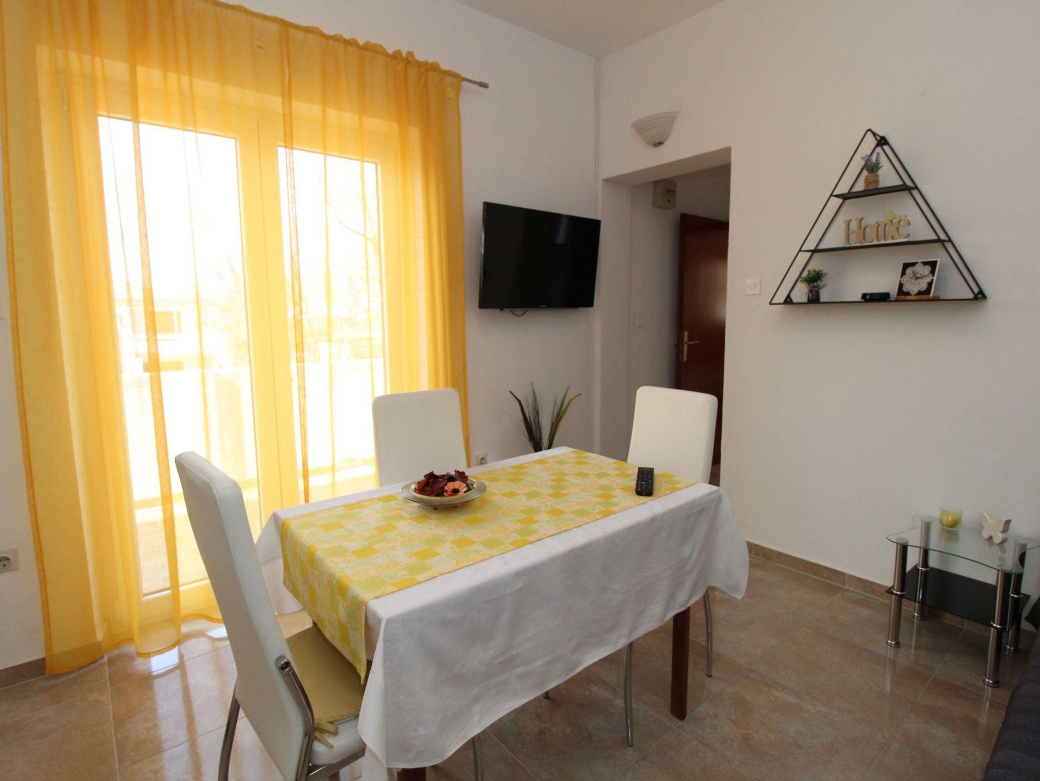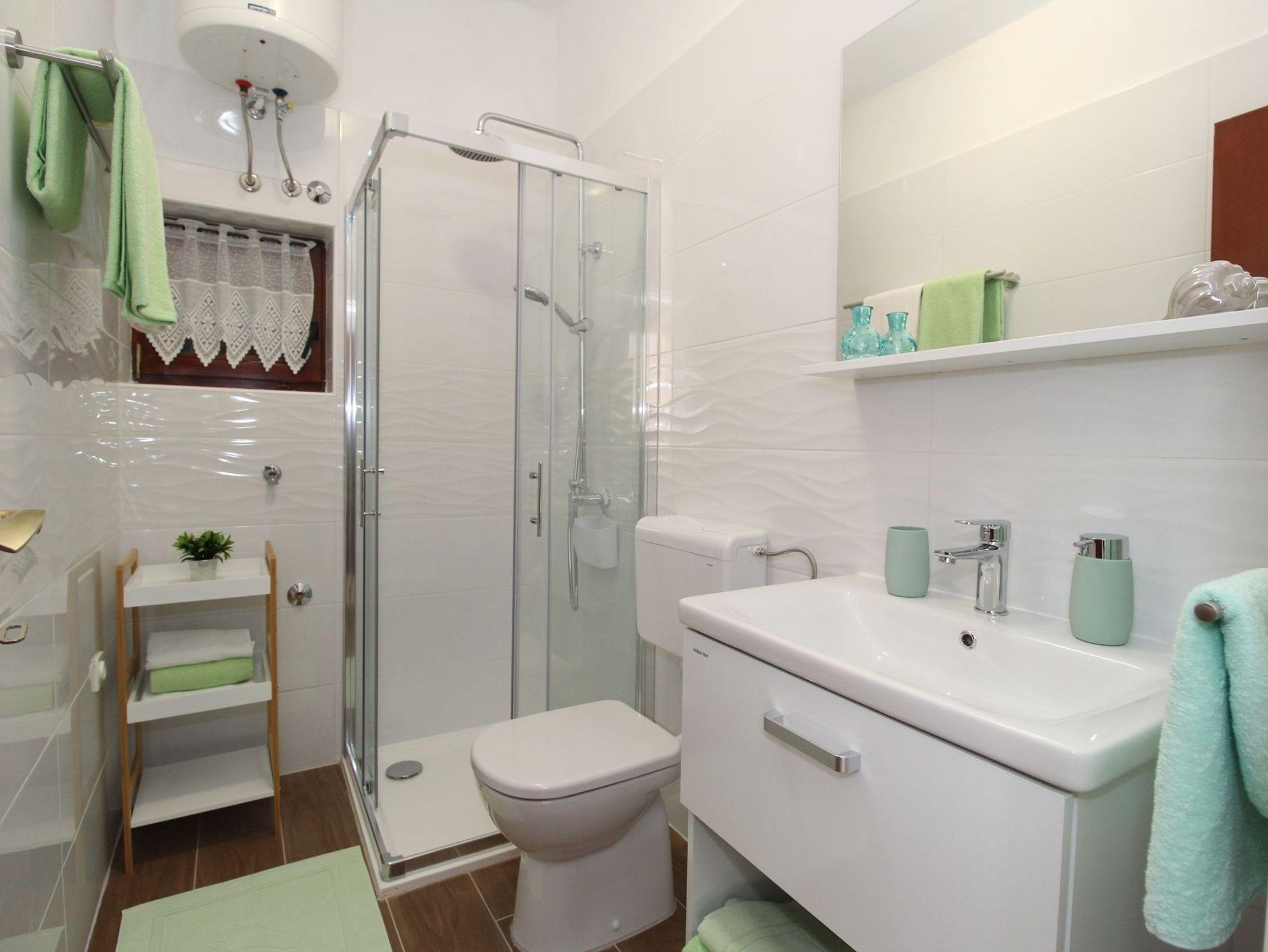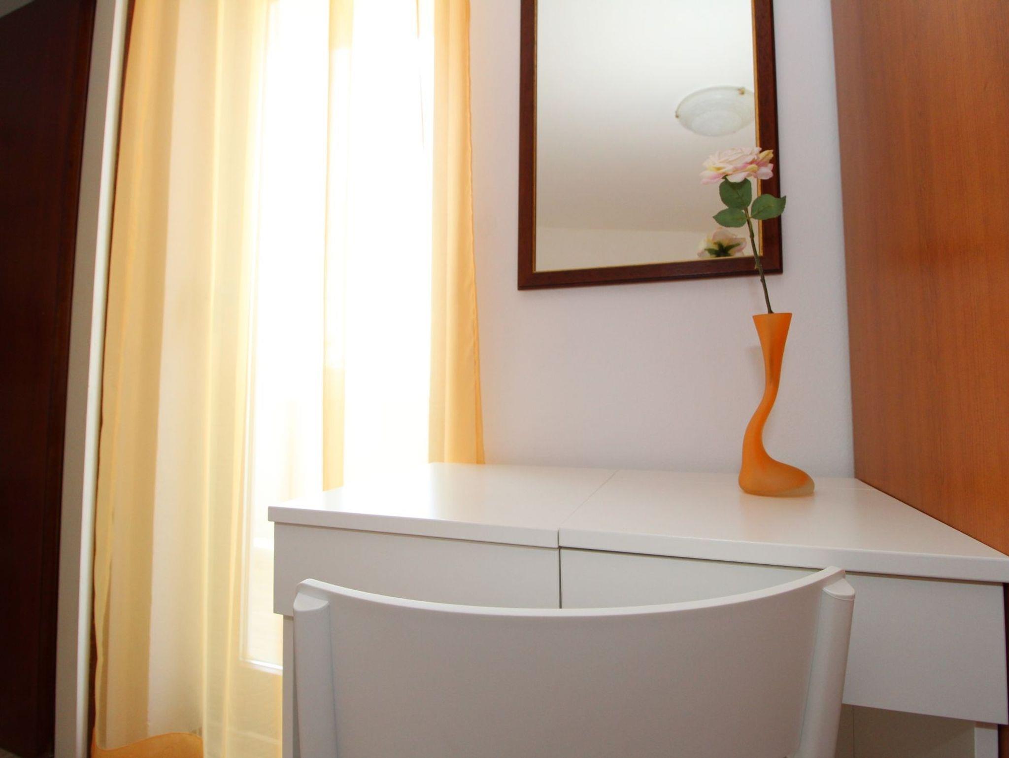 Ferienwohnung bietet Platz für 3 Gäste. Die Betten sind in Schlafzimmern, die es 1 gibt, und in Esszimmer, innerhalb einer Gesamtfläche von 25m2, angeordnet. Die Gäste haben einen eigenen Balkon zur Verfügung, auf der sie in warmen Sommernächten genießen können. Das Apartment bietet Meerblick. Es ist erlaubt, Speisen auf dem Gemeinschafts-Grill vorzubereiten. In der Unterkunftseinheit besteht die Möglichkeit des Mitbringens von Haustieren gegen Aufpreis. IM PREIS INBEGRIFFEN: Kurtaxe, Endreinigung, Parkplatz, Internet, Kinderbett. VERBINDLICHE ZUSÄTZLICHE KOSTEN: Aufzahlung für Kurzaufenthalte (prozentualer Zuschlag pro Nächtigungsanzahl: 30% - 1, 20% - 2, 10% - 3). UNVERBINDLICHE ZUSÄTZLICHE KOSTEN: Klimatisierung (7,00 € pro Nacht), Wäschewaschen (5,00 € Waschen), Haustiere (5,00 € pro Nacht). Die Verfügbarkeit zusätzlicher Dienstleistungen in Ihrem reservierten Termin und die Preise derselben (falls nicht aufgeführt) müssen im Voraus überprüft werden. Zusätzliche Dienstleistungen die in der Zahlungsaufforderung nicht aufgeführt sind werden direkt beim Vermieter bezahlt, angenommen der Gast nutzt auch diese.