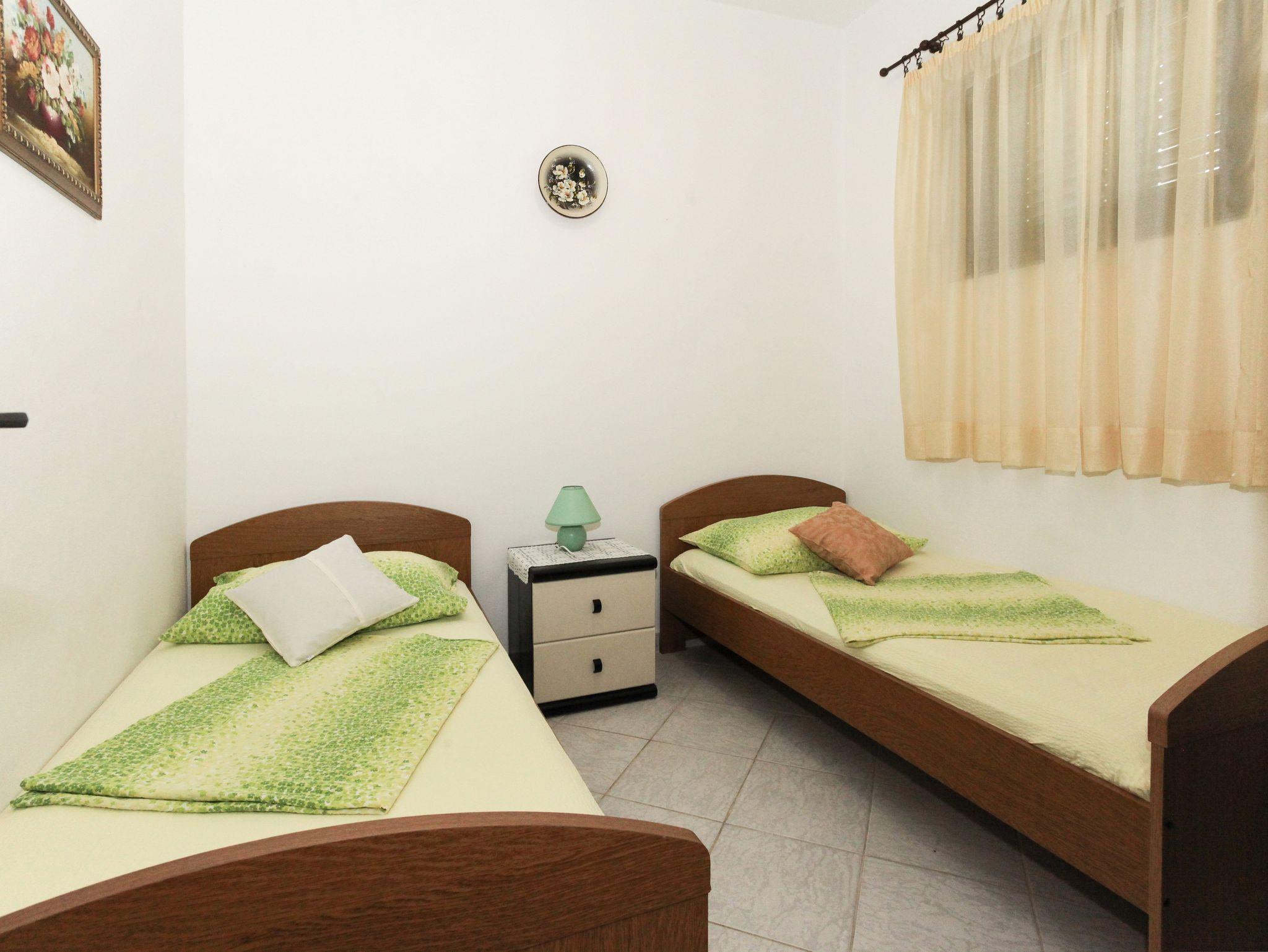 Ferienwohnung bietet Platz für 4 Gäste. Die Betten sind in Schlafzimmern, die es 2 gibt, innerhalb einer Gesamtfläche von 40m2, angeordnet. Die Gäste haben eine eigene Terrasse zur Verfügung, auf der sie in warmen Sommernächten genießen können. Das Apartment bietet Meerblick. Es ist erlaubt, Speisen auf dem Gemeinschafts-Grill vorzubereiten. IM PREIS INBEGRIFFEN: Kurtaxe, Endreinigung, Parkplatz, Internet, Wäschewaschen, Kinderbett, Bügeleisen, Bügelbrett, Föhn. VERBINDLICHE ZUSÄTZLICHE KOSTEN: Aufzahlung für Kurzaufenthalte (prozentualer Zuschlag pro Nächtigungsanzahl: 30% - 1, 20% - 2, 10% - 3). UNVERBINDLICHE ZUSÄTZLICHE KOSTEN: Klimatisierung (5,00 € pro Nacht), Zusatzbett (10,00 € pro Nacht). Die Verfügbarkeit zusätzlicher Dienstleistungen in Ihrem reservierten Termin und die Preise derselben (falls nicht aufgeführt) müssen im Voraus überprüft werden. Zusätzliche Dienstleistungen die in der Zahlungsaufforderung nicht aufgeführt sind werden direkt beim Vermieter bezahlt, angenommen der Gast nutzt auch diese.