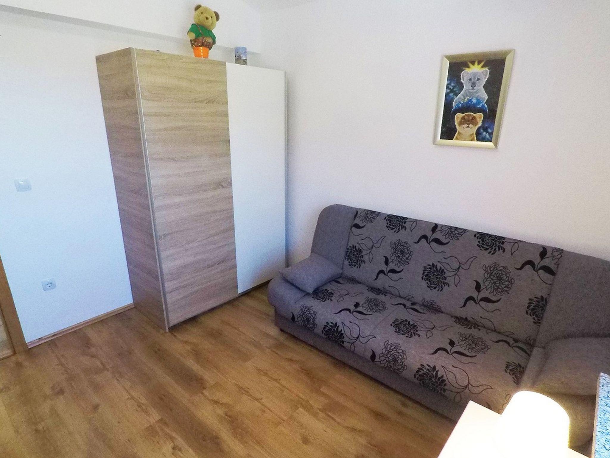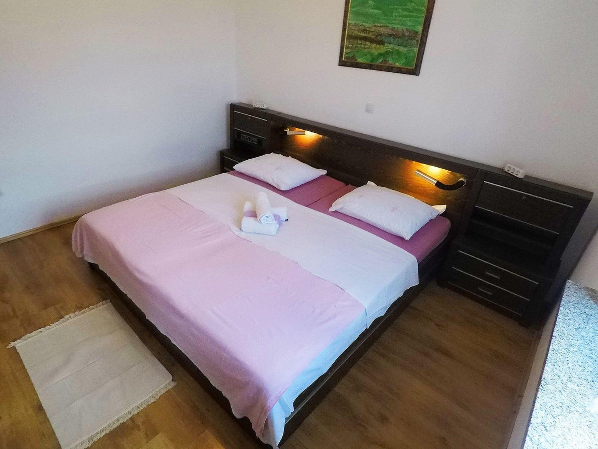 Ferienwohnung bietet Platz für 5 Gäste. Die Betten sind in Schlafzimmern, die es 2 gibt, innerhalb einer Gesamtfläche von 57m2, angeordnet. Die Gäste haben eine eigene Terrasse zur Verfügung, auf der sie in warmen Sommernächten genießen können. Das Apartment bietet Meerblick. Es ist erlaubt, Speisen auf dem Gemeinschafts-Grill vorzubereiten. IM PREIS INBEGRIFFEN: Kurtaxe, Endreinigung, Klimatisierung, Parkplatz, Internet, Föhn. VERBINDLICHE ZUSÄTZLICHE KOSTEN: Aufzahlung für Kurzaufenthalte (prozentualer Zuschlag pro Nächtigungsanzahl: 30% - 1, 20% - 2, 10% - 3). Die Verfügbarkeit zusätzlicher Dienstleistungen in Ihrem reservierten Termin und die Preise derselben (falls nicht aufgeführt) müssen im Voraus überprüft werden. Zusätzliche Dienstleistungen die in der Zahlungsaufforderung nicht aufgeführt sind werden direkt beim Vermieter bezahlt, angenommen der Gast nutzt auch diese.