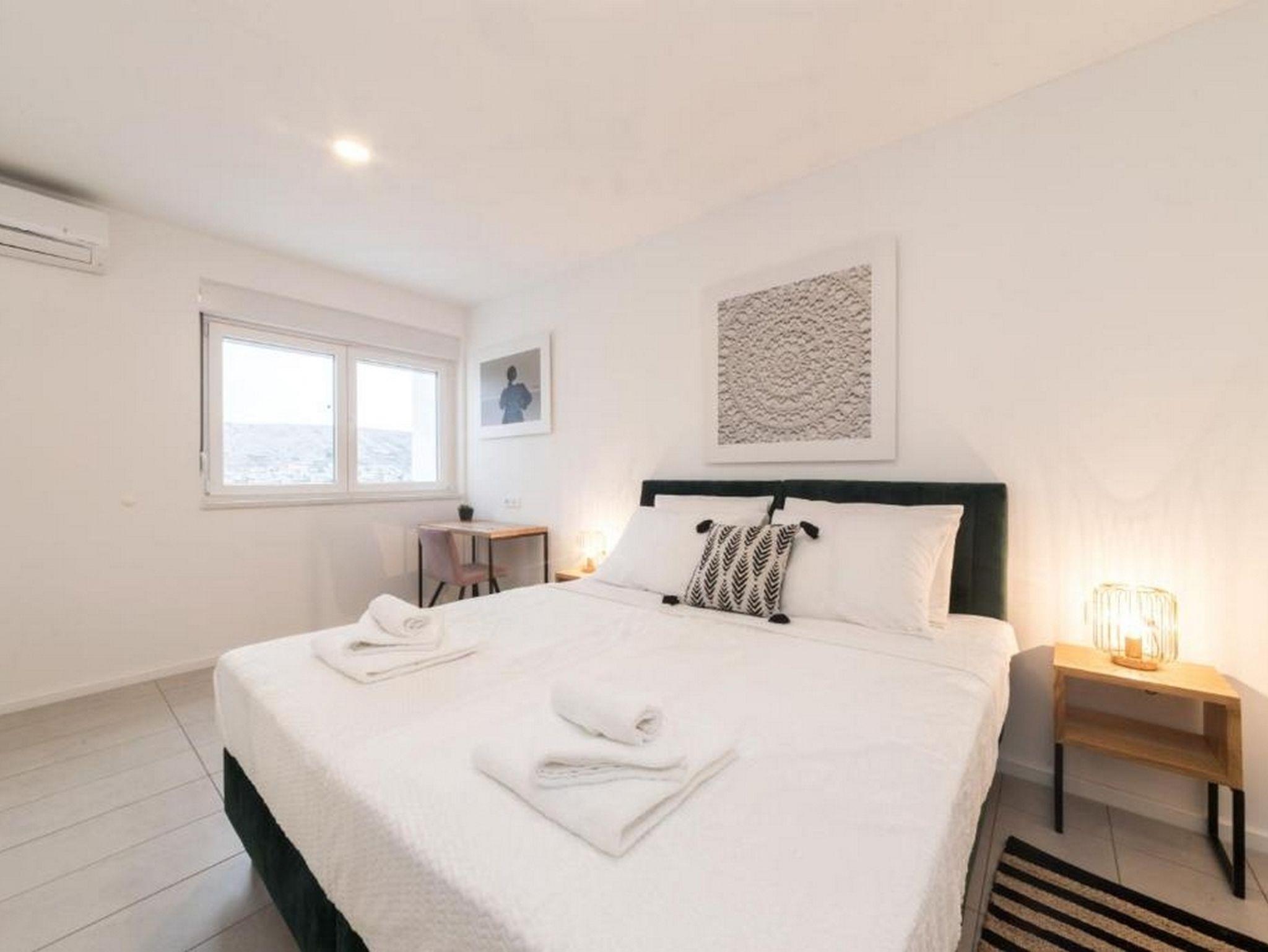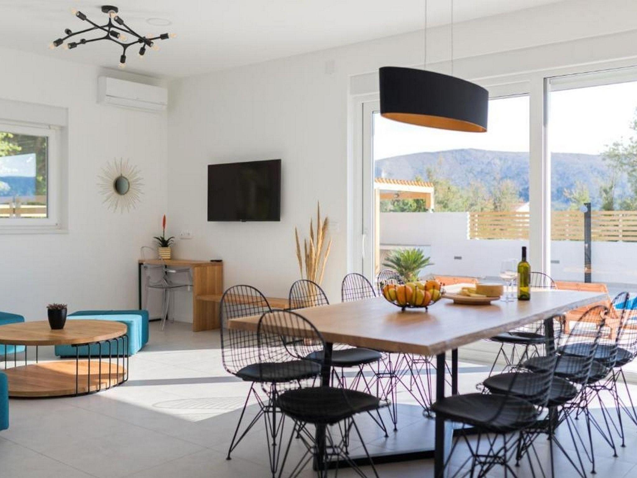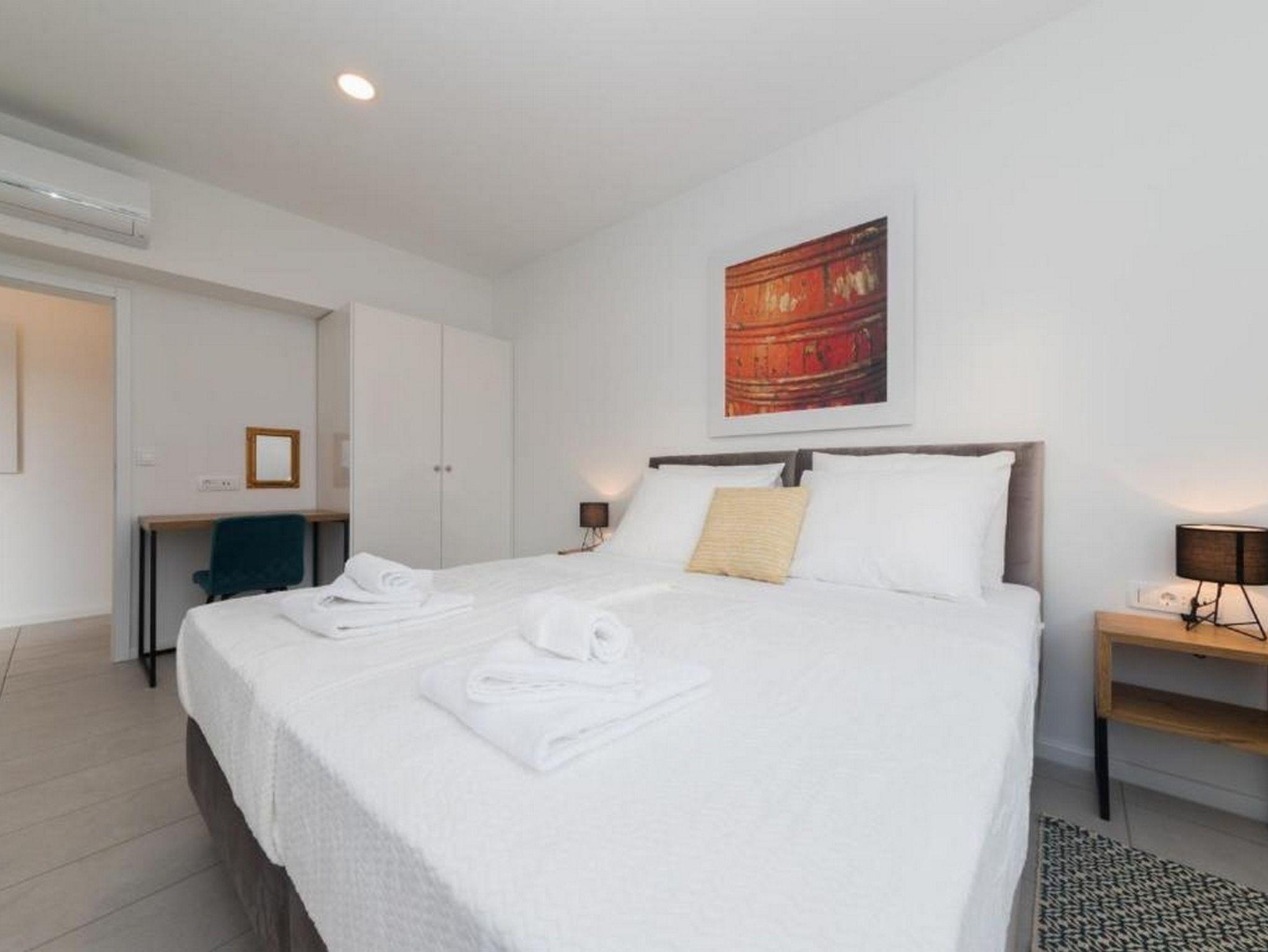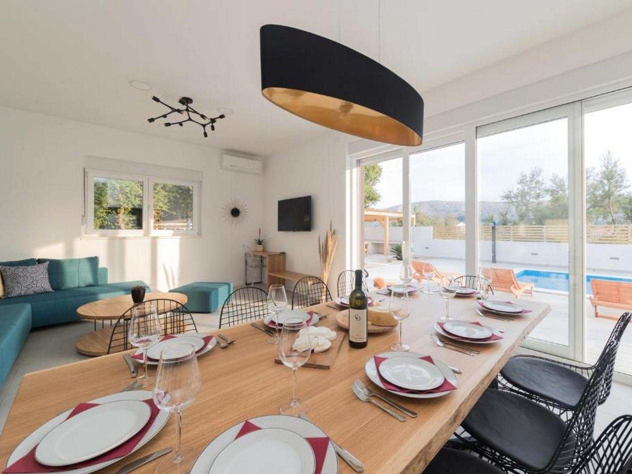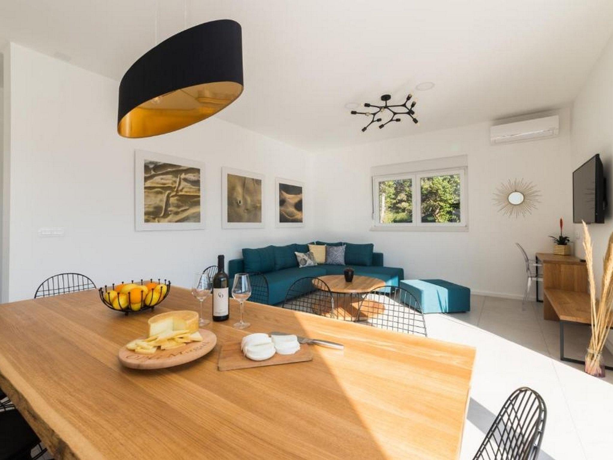 Haus bietet Platz für 10 Gäste. Die Betten sind in Schlafzimmern, die es 4 gibt, und in Wohnzimmer, innerhalb einer Gesamtfläche von 143m2, angeordnet. Die Gäste haben eine eigene Terrasse zur Verfügung, auf der sie in warmen Sommernächten genießen können. Das Haus bietet Meerblick. Es ist erlaubt, Speisen auf dem Gemeinschafts-Grill vorzubereiten. Während ihres Aufenthalts können Gäste das gemeinsam zur Nutzung stehende Schwimmbad benutzen. IM PREIS INBEGRIFFEN: Kurtaxe, Endreinigung, Klimatisierung, Pool, Parkplatz, Internet, Kinderbett, Bügeleisen, Bügelbrett, Föhn. Die Verfügbarkeit zusätzlicher Dienstleistungen in Ihrem reservierten Termin und die Preise derselben (falls nicht aufgeführt) müssen im Voraus überprüft werden. Zusätzliche Dienstleistungen die in der Zahlungsaufforderung nicht aufgeführt sind werden direkt beim Vermieter bezahlt, angenommen der Gast nutzt auch diese. Ermäßigung auf den Grundpreis: Gratistag 14=13 (bei einem Aufenthalt von 14 Tagen oder mehr erhalten Sie einen Gratistag für den Aufenthalt bis 31.12.26).