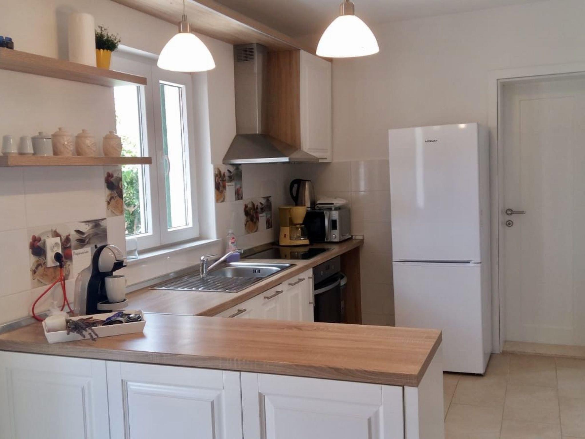 The beach is only about 300 metres away. You can walk or drive there. It is about 500 metres to the village centre with restaurants and supermarkets. It is 9km to the town centre of Novalja.