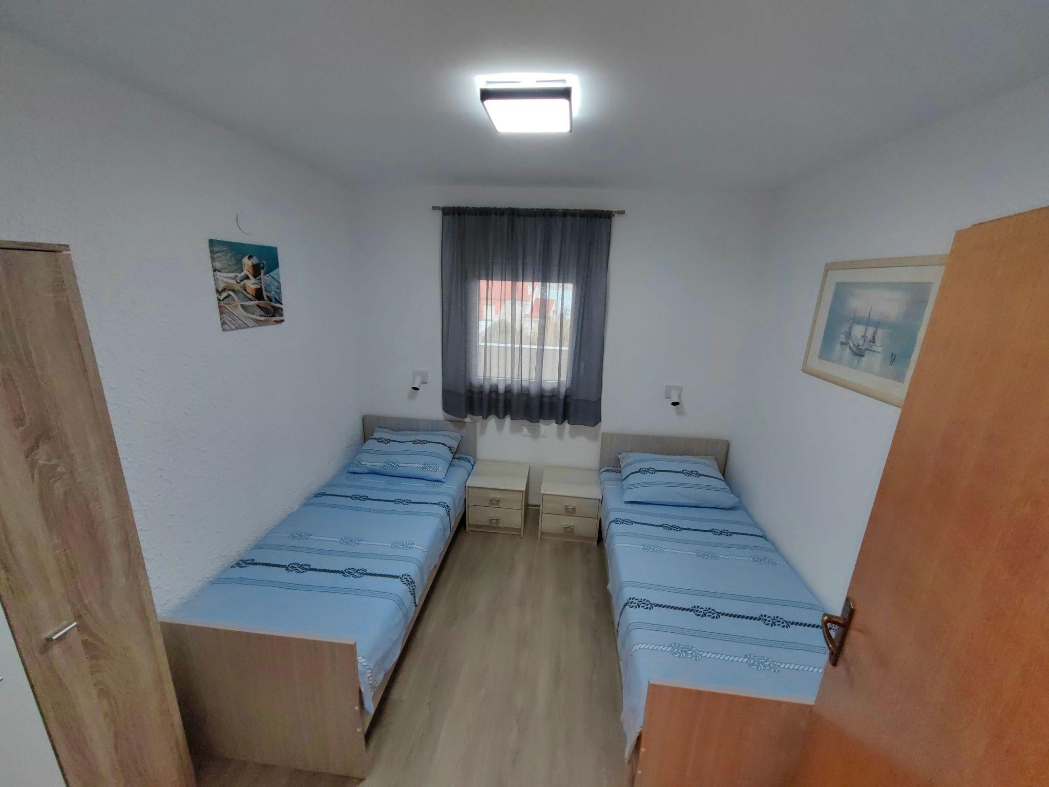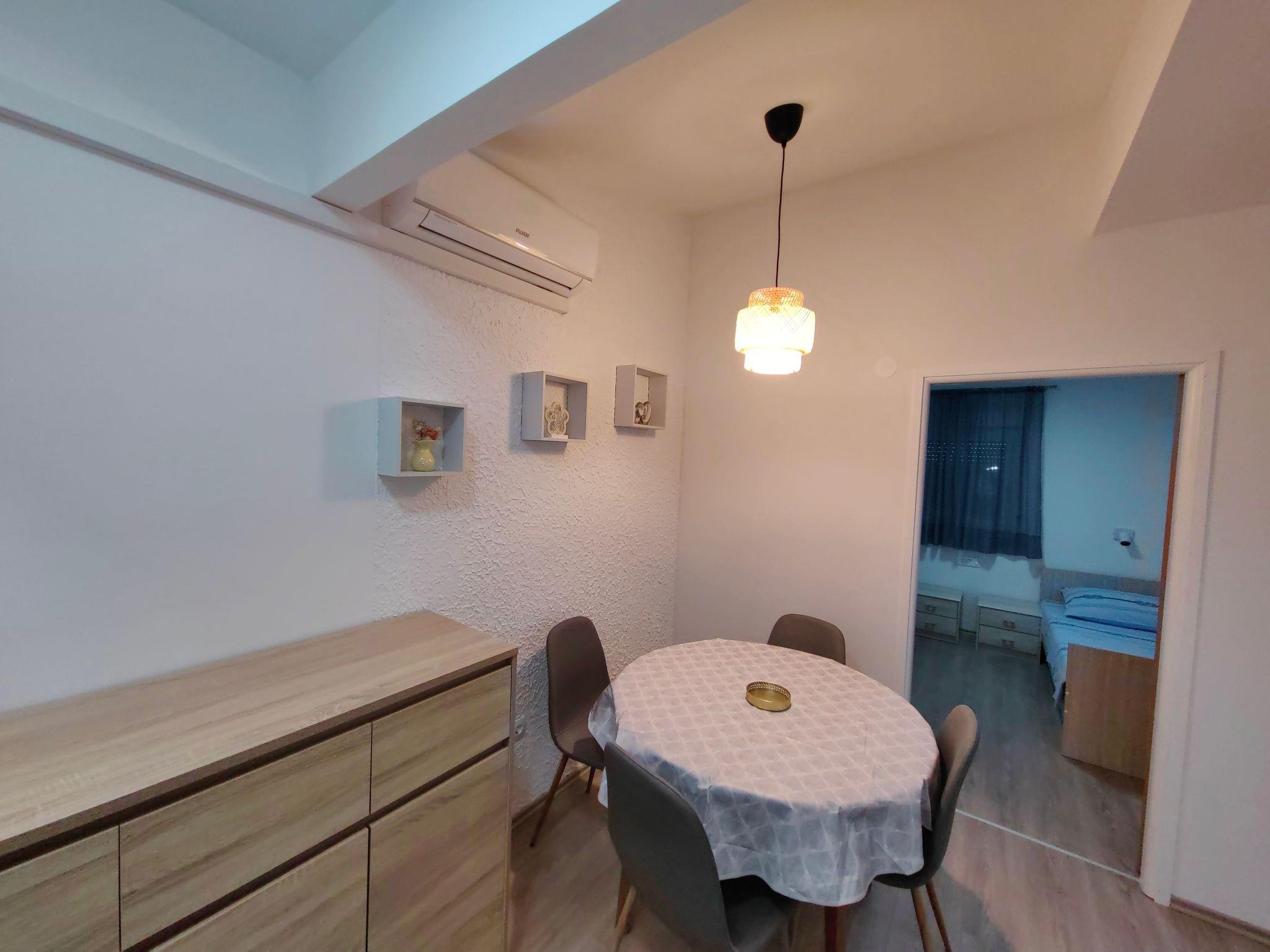 Inside, the apartment is thoughtfully equipped to ensure a comfortable and convenient stay. It features two cozy bedrooms, one with a double bed and the other with two single beds, catering to the needs of a family or a group of friends. The central air conditioning system guarantees a cool and pleasant environment throughout your stay, providing a welcome respite from the warm Dalmatian sun. Additionally, the apartment boasts a communal washing machine in the building, making it easy to keep up with laundry needs during your holiday.