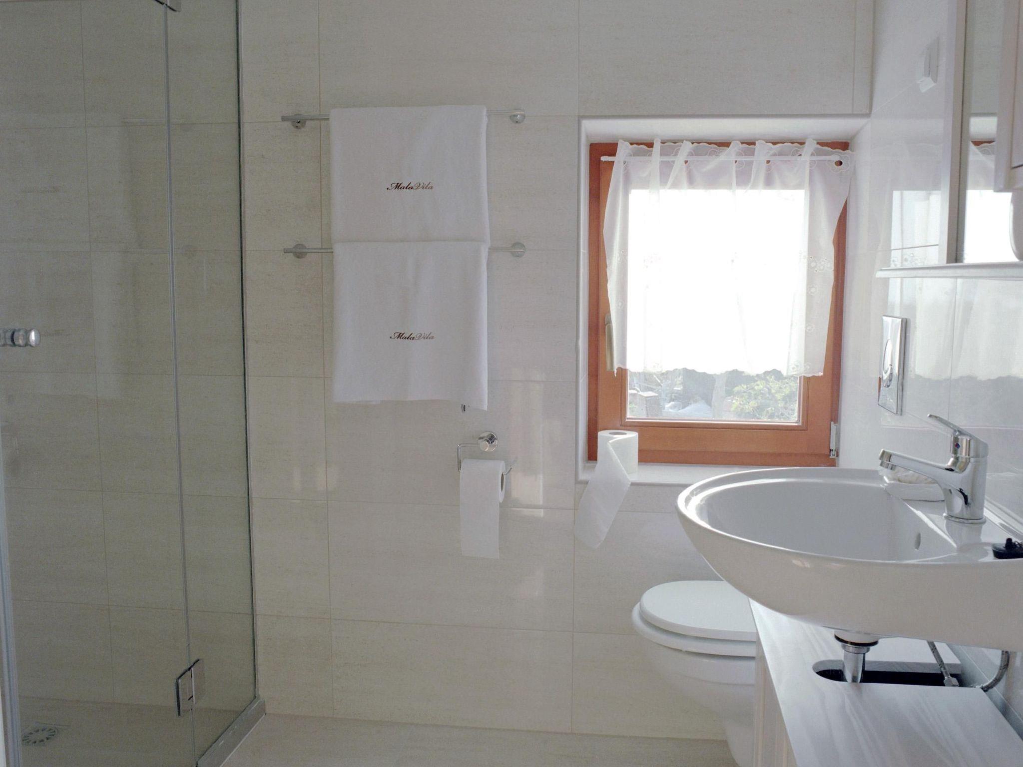The two-storey house was extensively renovated in 2011 and brings together traditional elements and modern comfort. It provides 85m² of living space for five people. The ground floor has a living room with satellite TV, a stove, a sofa bed and a dining space in front of the terrace door. Behind it there is the kitchen with a stove, oven, coffee machine, fridge, microwave and dishwasher. Other rooms on the ground floor are a guest toilet and a storage room next to the kitchen, which also has a washing machine. The two modern bathrooms with daylight and the two spacious bedrooms are on the upper floor. The bathrooms have a shower and WC. The bedrooms with a sea view each have a double bed (160 x 200cm). A further person can sleep on the sofa bed (160 x 200cm) in the living room. The house has air conditioning units, as well as under-floor and ceiling heating, so stays in winter are also pleasant. The air conditioning units are in every bedroom and in the living room, which shares under-floor heating with the kitchen. The bedrooms and bathrooms on the first floor have ceiling heating. Each room has a regulating thermostat. Wireless Internet access is available in the house and on the terrace.Pets are allowed, but without access to the bedrooms and swiming pool. Not following the rools will be fined for extra ammount of 500 €.