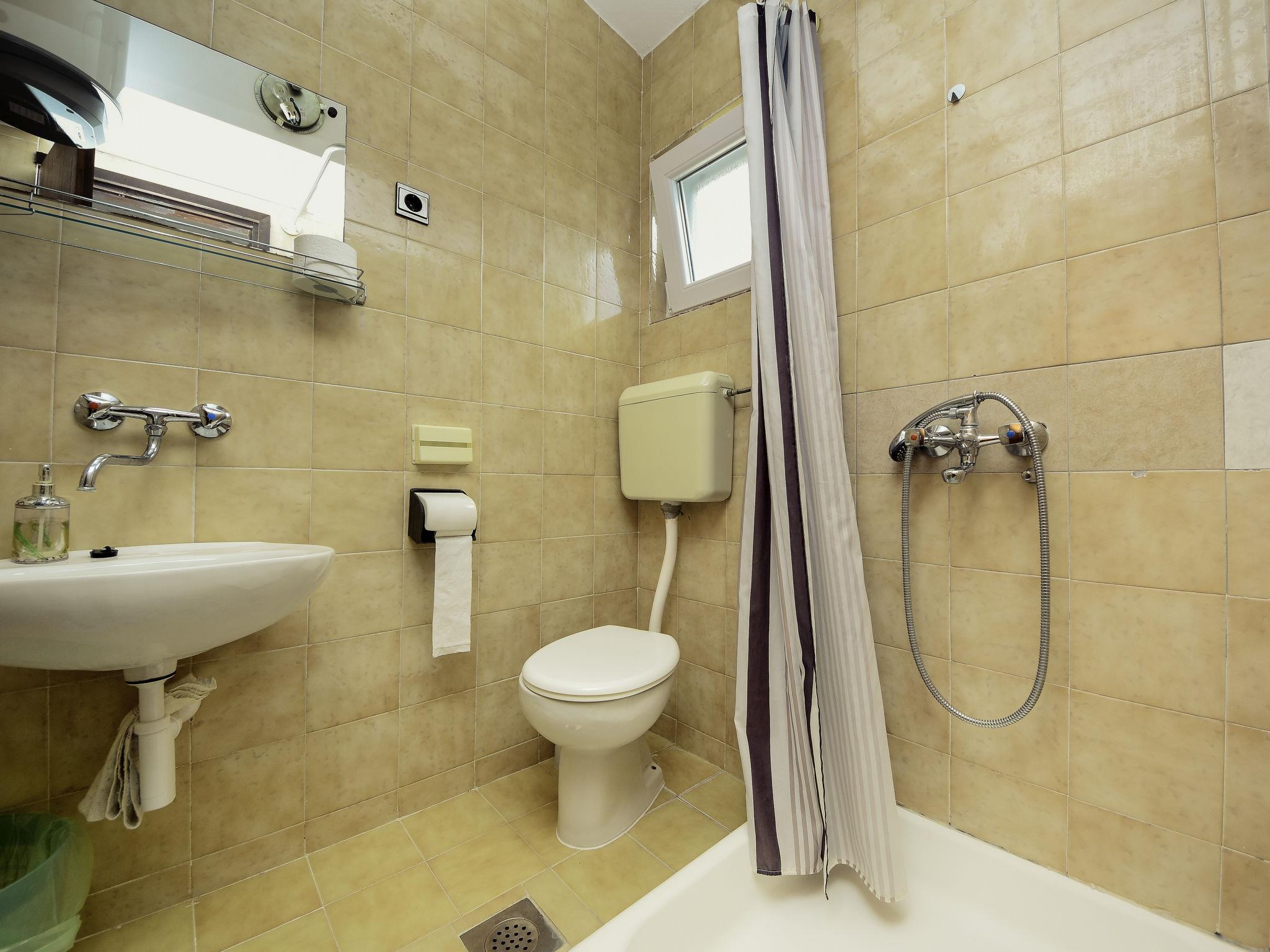 Drage 4 km from Pakoštane: Apartment house "Dondo". 10 km from the centre of Biograd na Moru, in a sunny position, 10 m from the sea, 200 m from the beach, road to cross. For shared use: property 200 m2. In the house: restaurant, internet access. Parking at the house on the premises. Shop, bus stop 700 m, pebble beach, rocky beach 200 m. Nearby attractions: Amusement park 7 km. Please note: airfield 34 km from the property. The unit consists of a studio apartment and 2-room apartment on the second floor, rented as one unit.