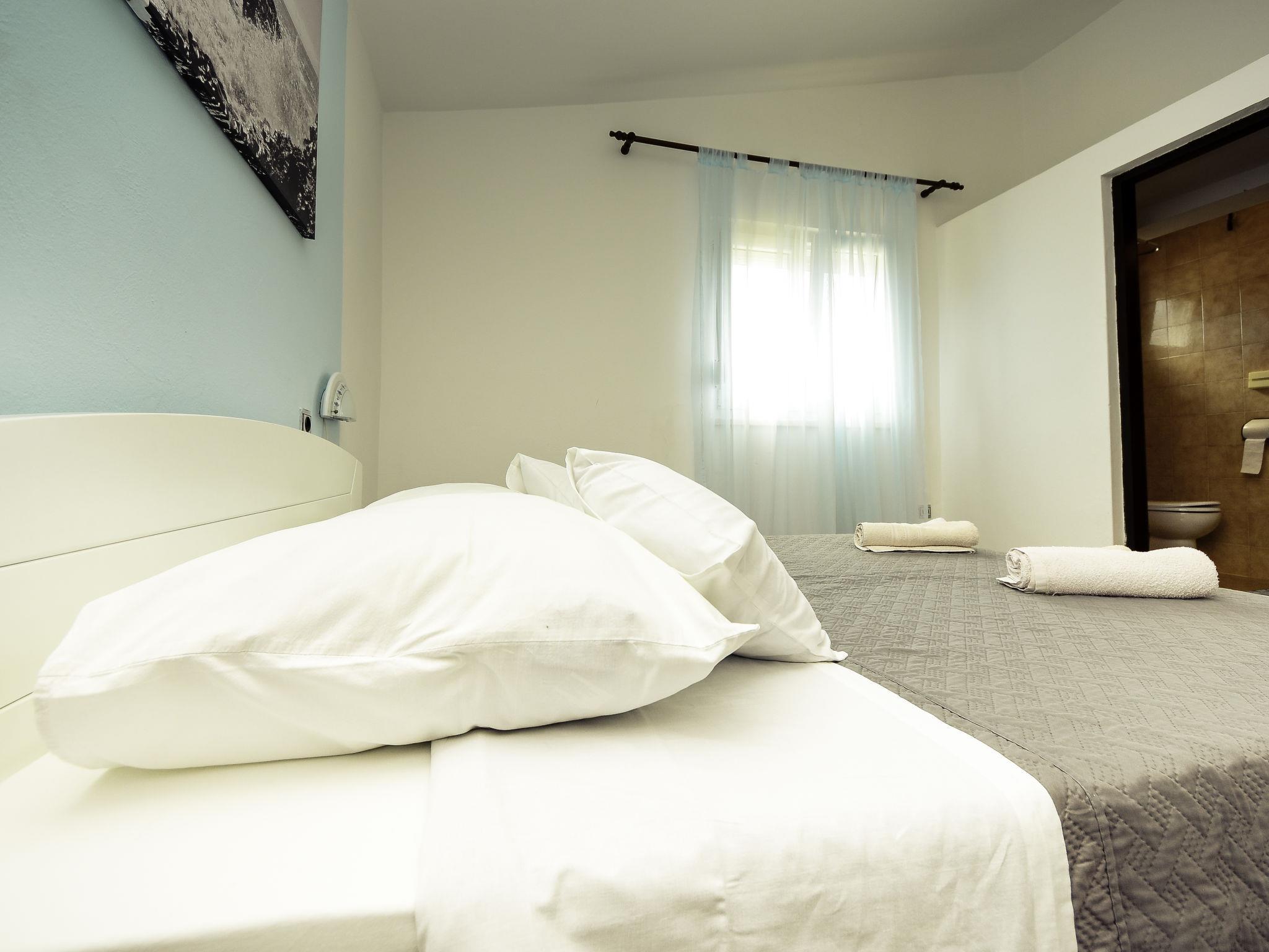3-room apartment 40 m2 on 2nd floor. Studio with 1 french bed (160 cm, length 200 cm), kitchen corner, shower/WC and satellite TV (flat screen), air conditioning. Living/dining room 17 m2 with 1 double sofabed (140 cm, length 200 cm), satellite TV (flat screen). Exit to the terrace. 1 room with 1 french bed (160 cm, length 200 cm), shower/WC. Exit to the terrace. Open kitchen (1 hot plate, oven, 3 gas rings, freezer) with air conditioning. 2 showers/WC. Air-conditioning (extra). Terrace 12 m2, terrace 2 m2, roofed. Terrace furniture. View of the sea. Facilities: Internet (WiFi, free).