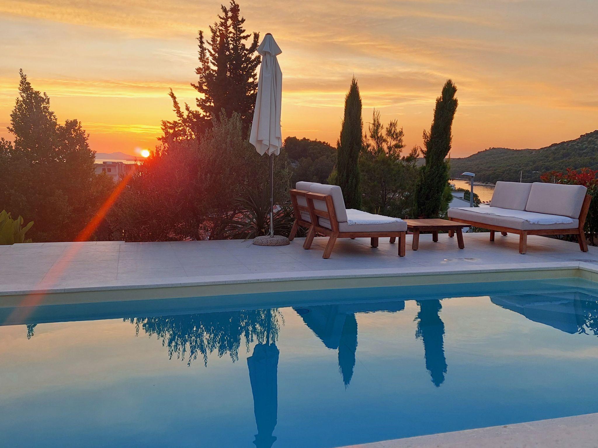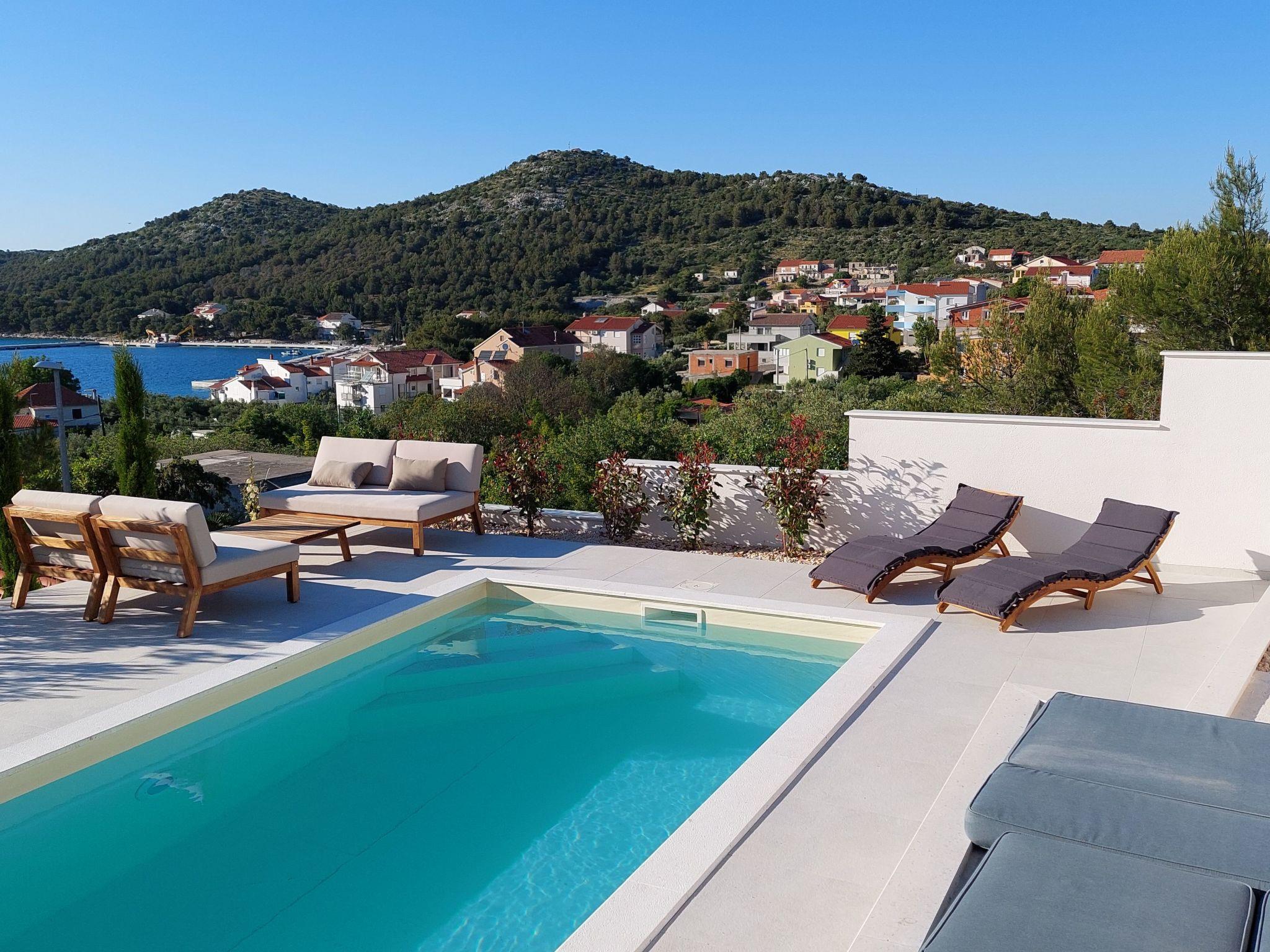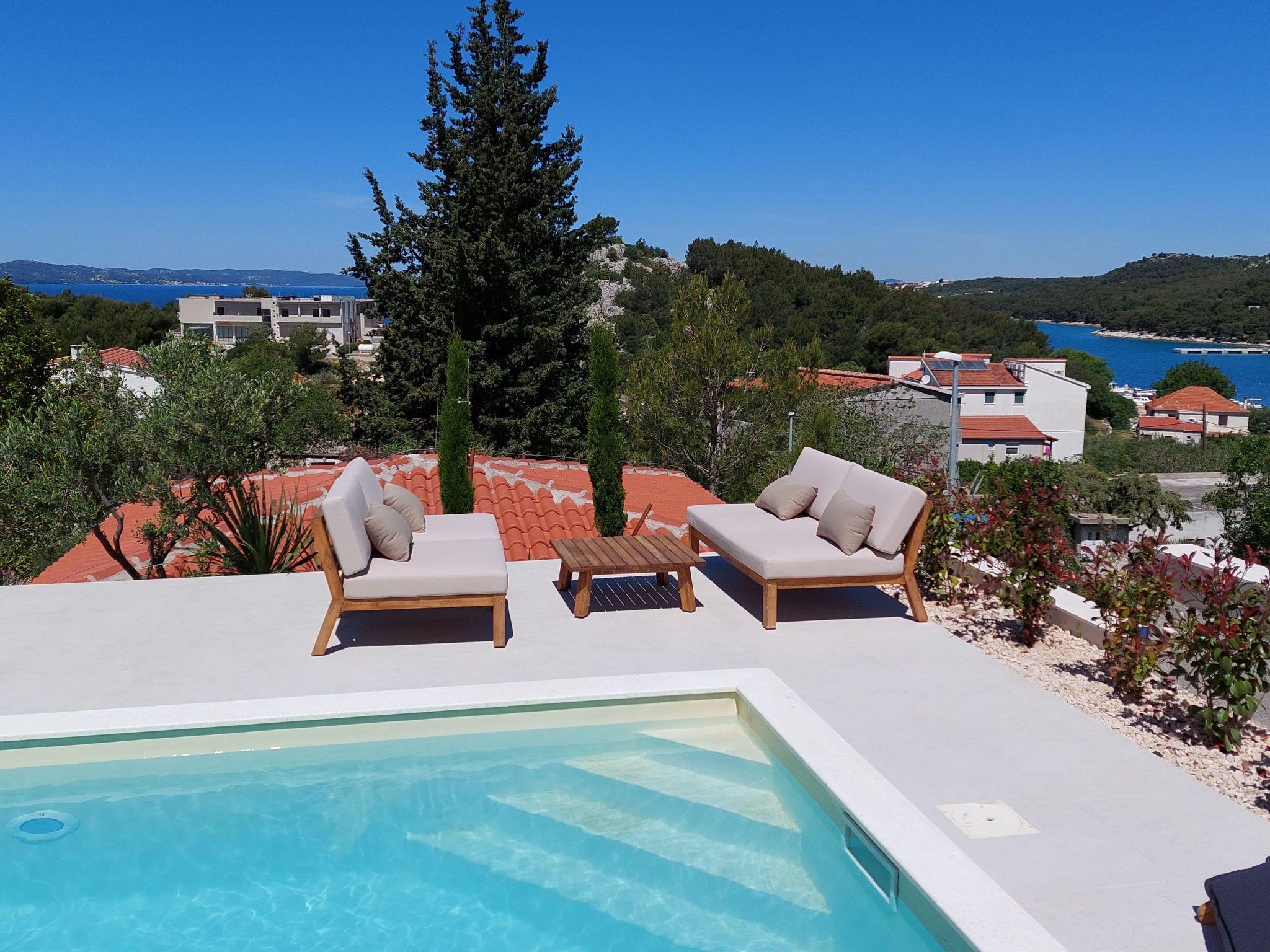 The offer is rounded off by a comfortable 35 m² terrace (covered), equipped with a dining table, chairs and deck chairs. The accommodation has a sea view on 3 sides – Kornati, Pašman island, Drage with a lagoon.