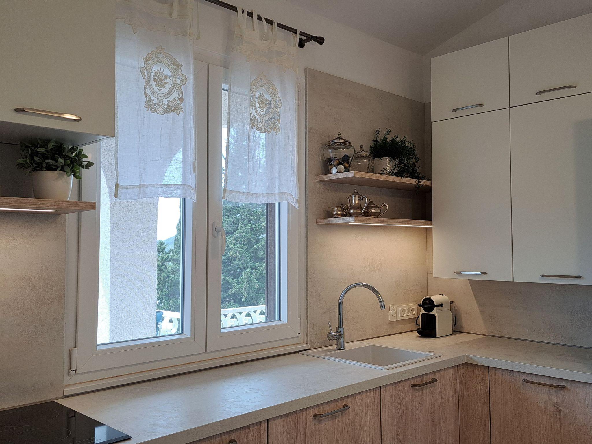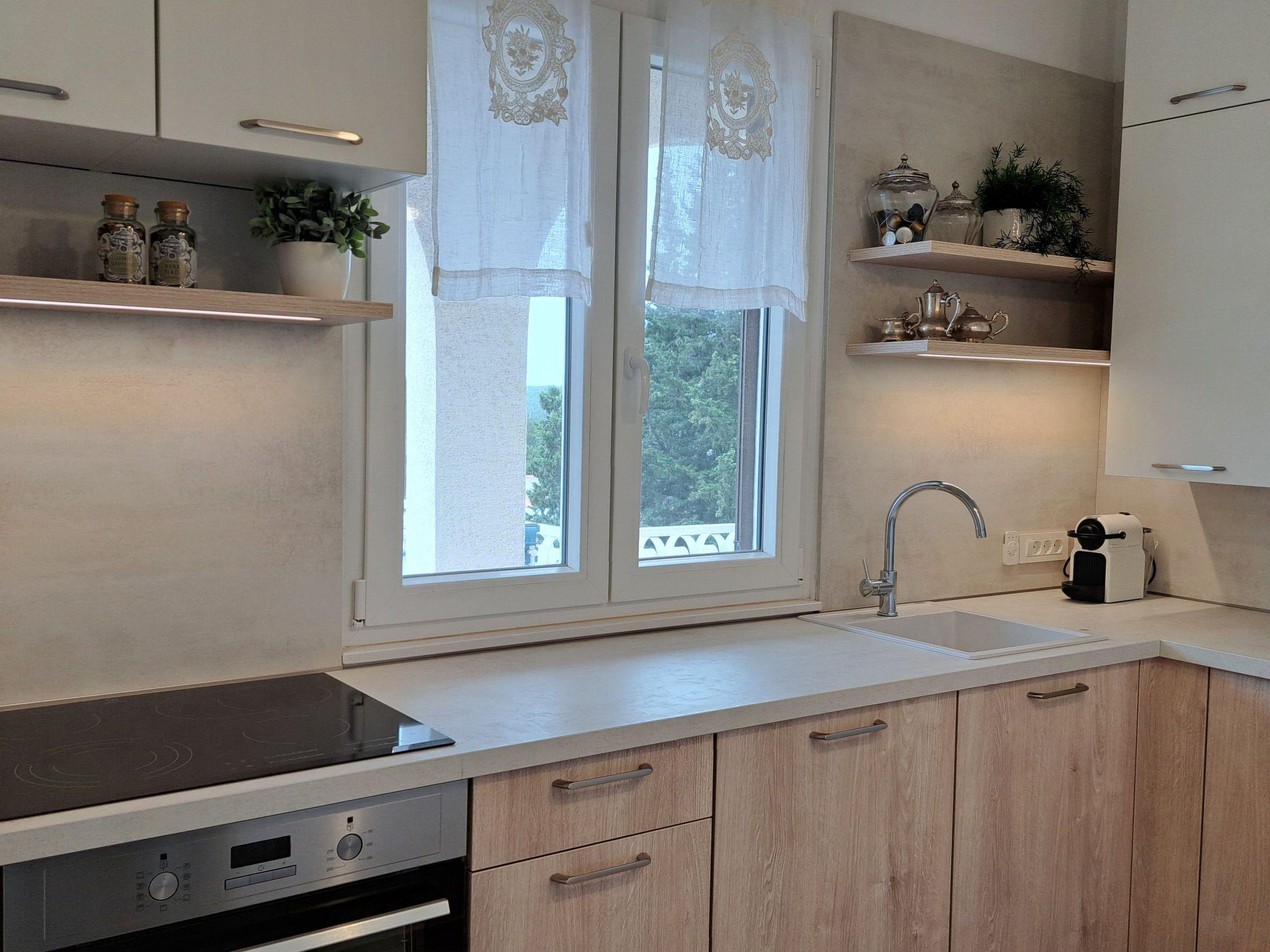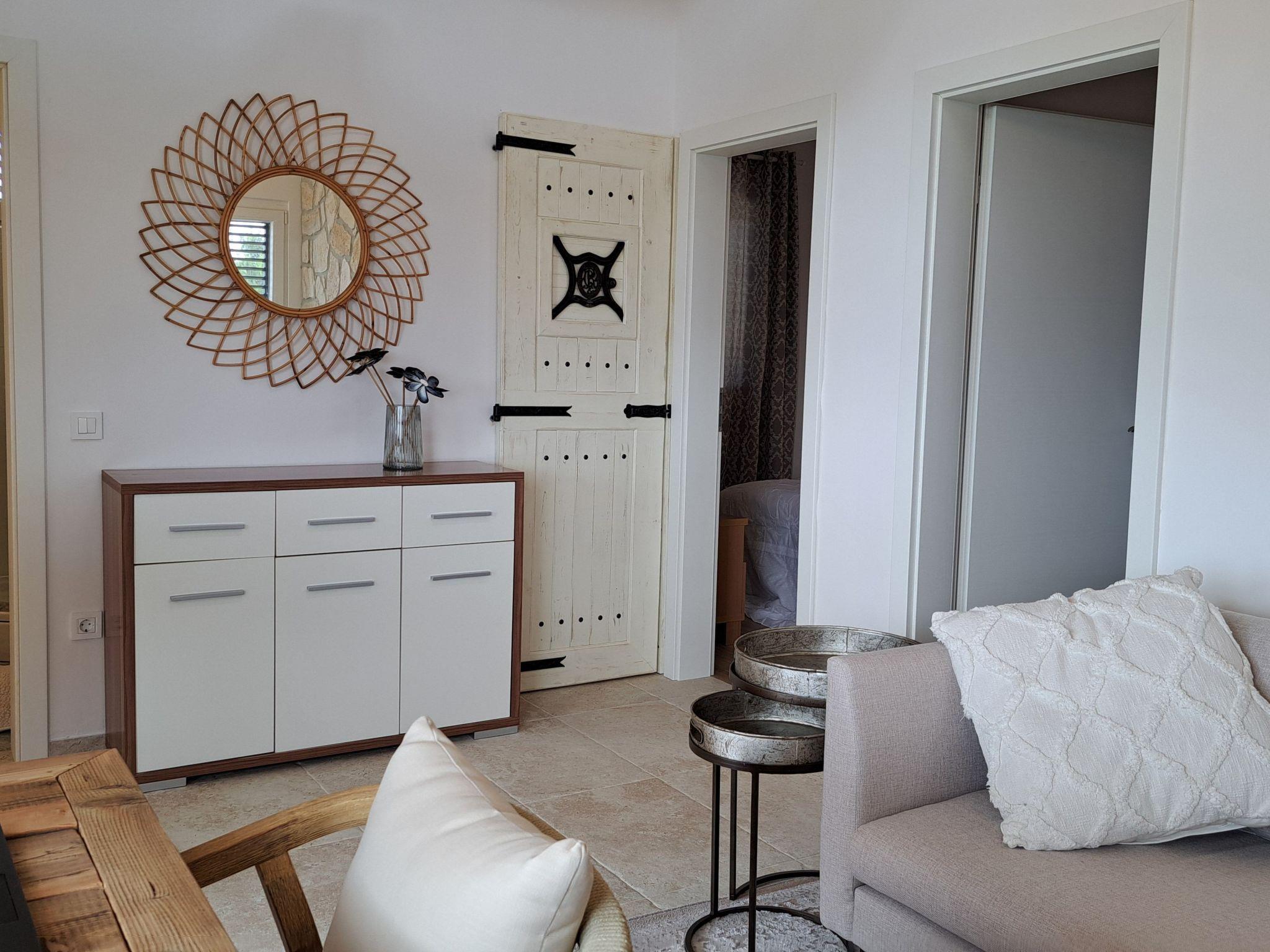 The offer is rounded off by a comfortable 35 m² terrace (covered), equipped with a dining table, chairs and deck chairs. The accommodation has a sea view on 3 sides – Kornati, Pašman island, Drage with a lagoon.