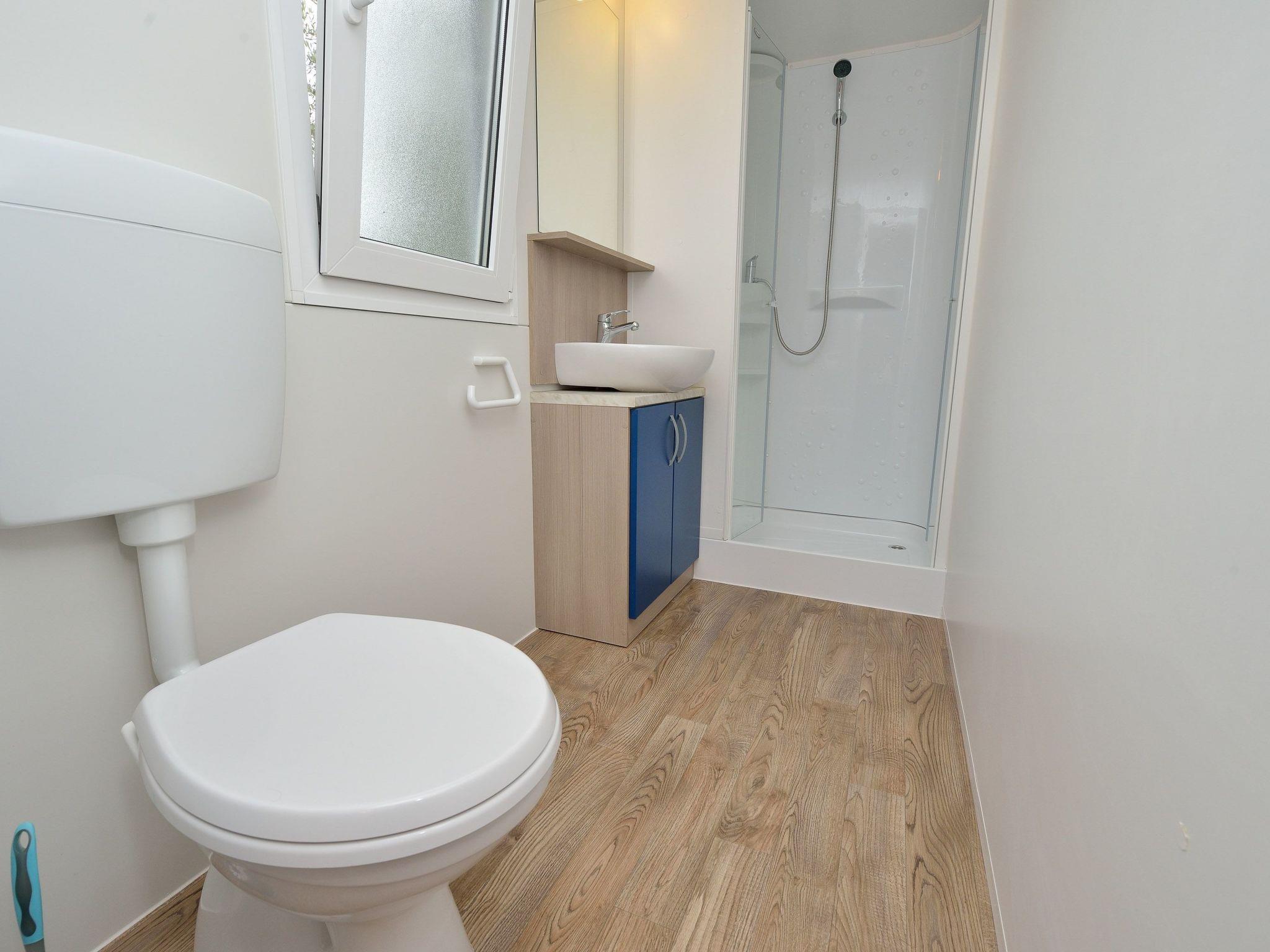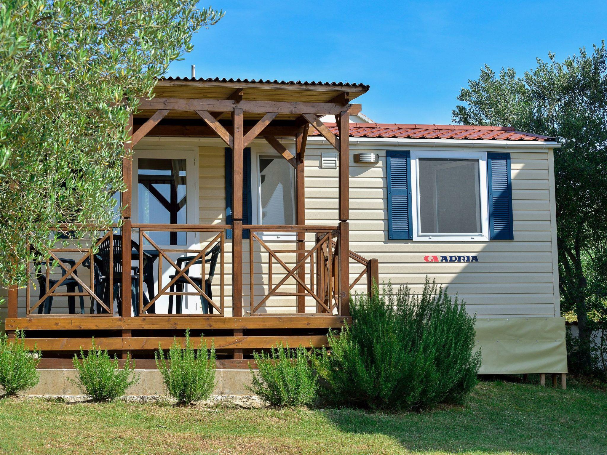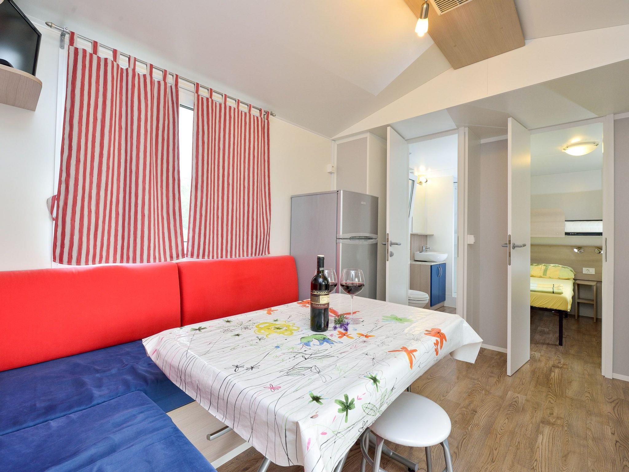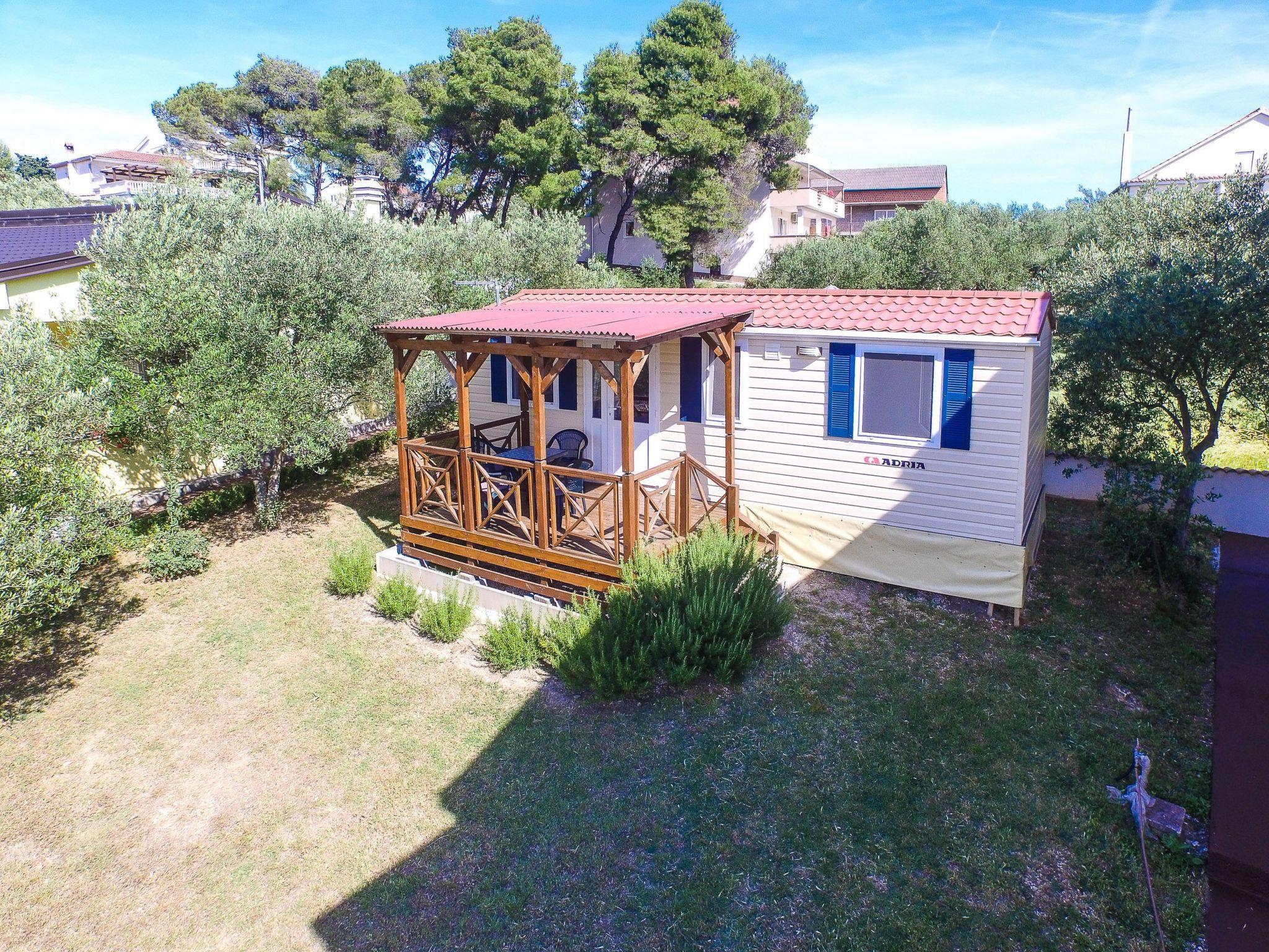 The exterior of this mobile home doesn't disappoint either. Guests have access to a communal garden and a pool, perfect for leisurely days soaking up the Dalmatian sun or enjoying a refreshing dip. The private roof terrace is a standout feature, offering an exclusive spot for guests to relax and perhaps enjoy a meal al fresco. Additionally, pet owners will appreciate the pet-friendly policy, allowing for two small dogs to join in on the holiday fun.