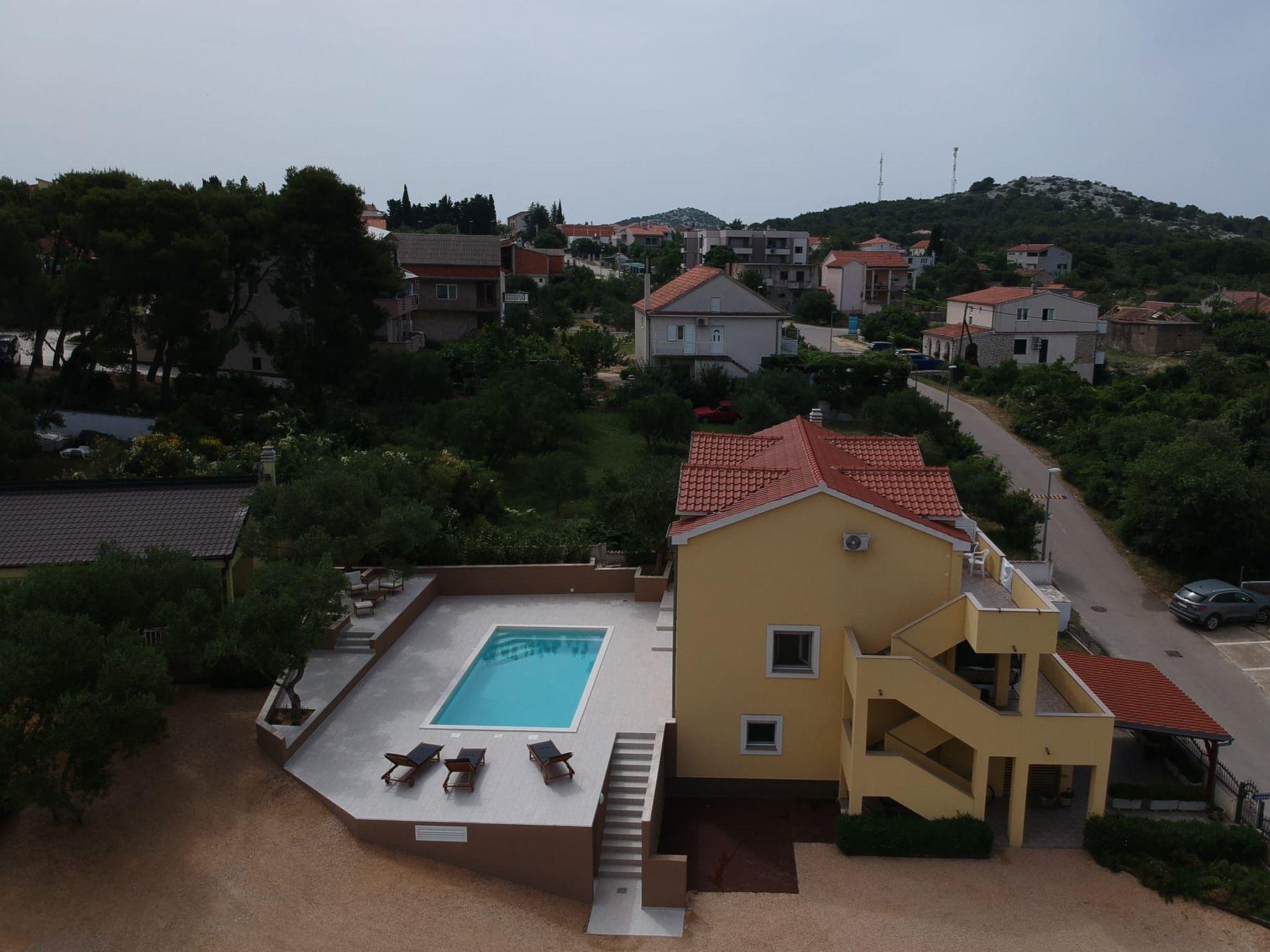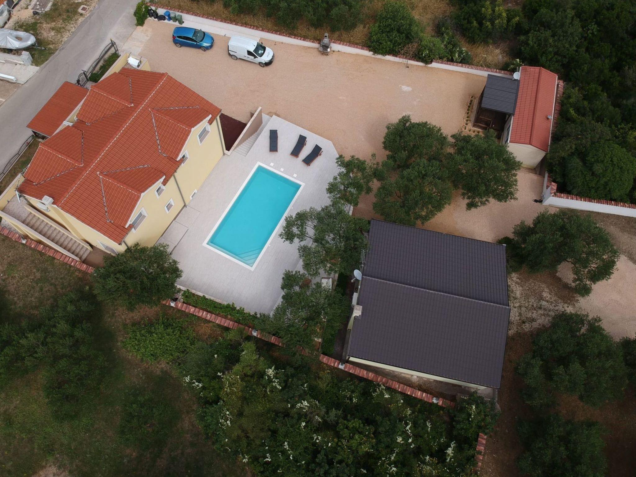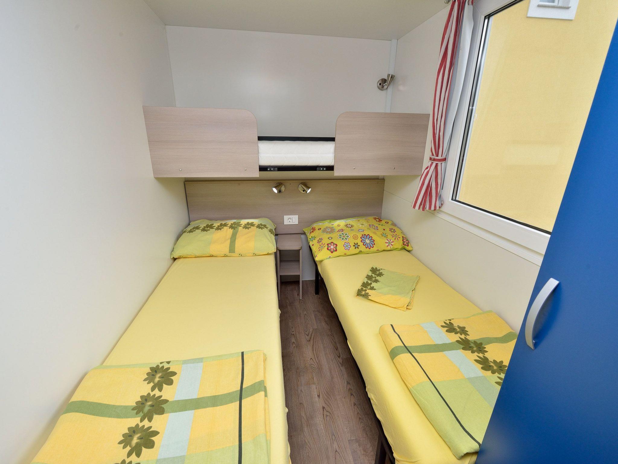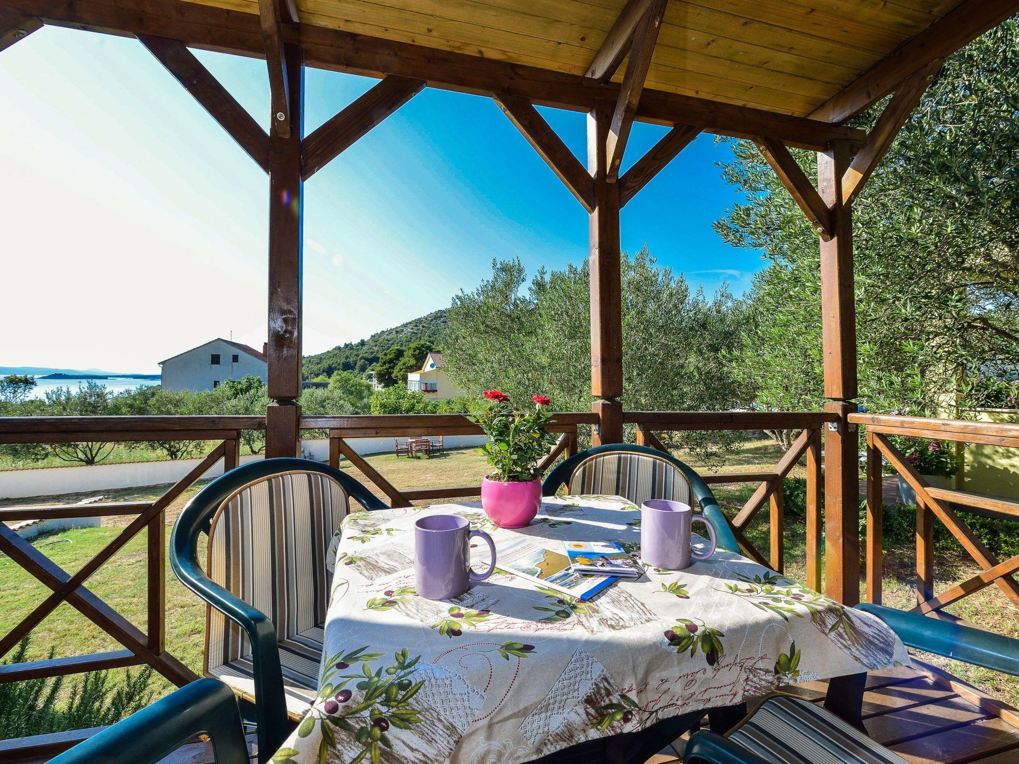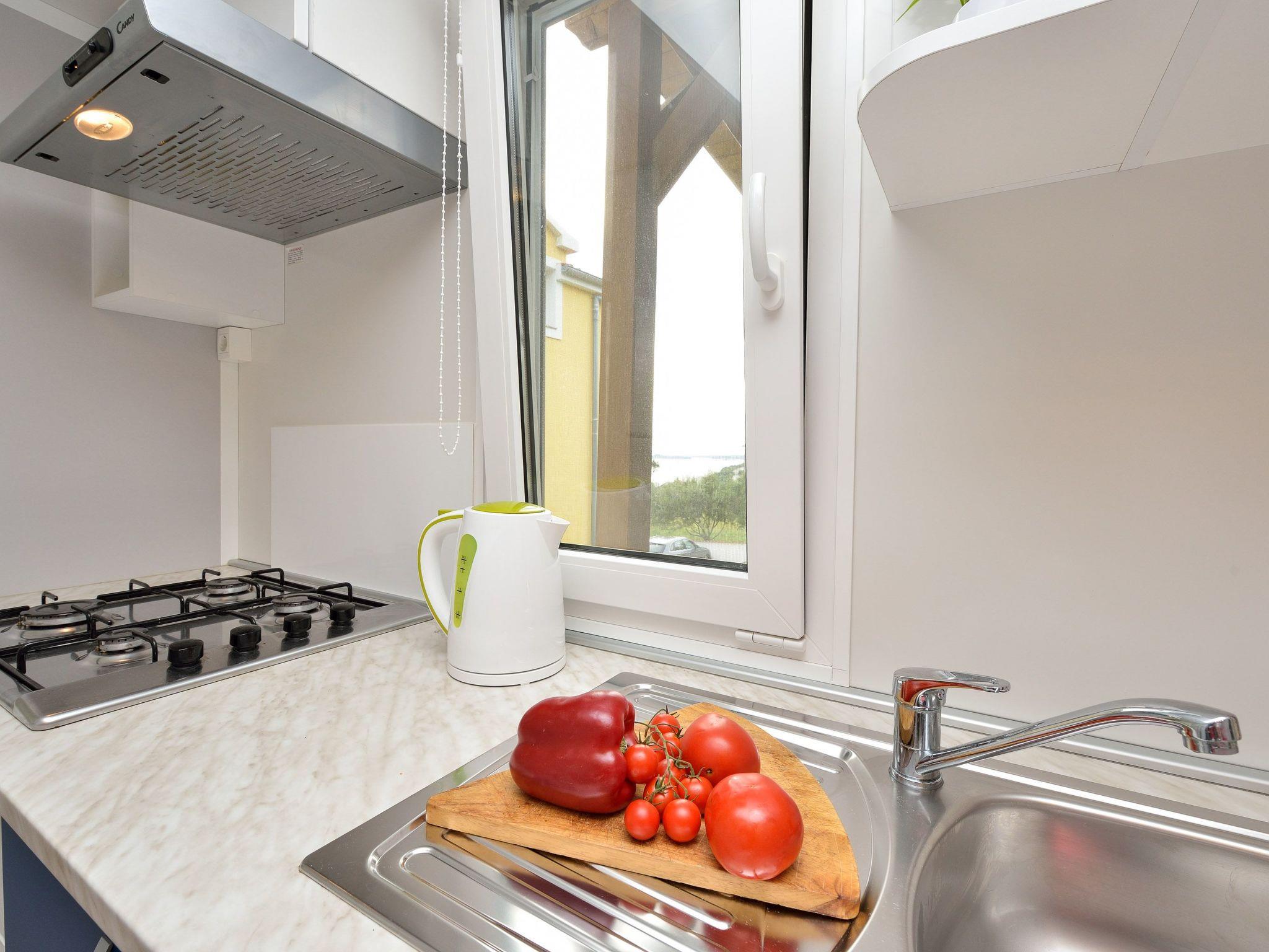 The exterior of this mobile home doesn't disappoint either. Guests have access to a communal garden and a pool, perfect for leisurely days soaking up the Dalmatian sun or enjoying a refreshing dip. The private roof terrace is a standout feature, offering an exclusive spot for guests to relax and perhaps enjoy a meal al fresco. Additionally, pet owners will appreciate the pet-friendly policy, allowing for two small dogs to join in on the holiday fun.