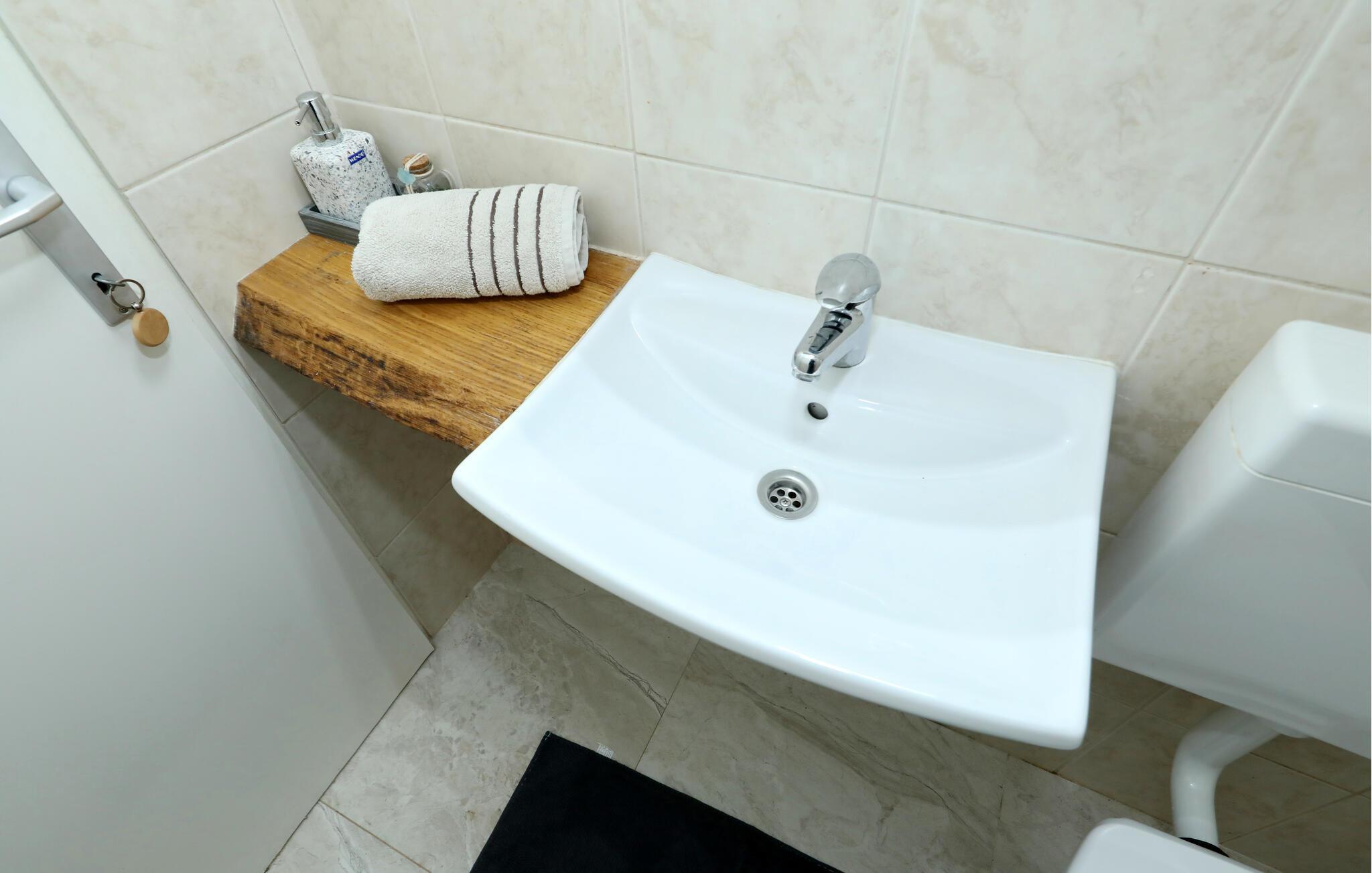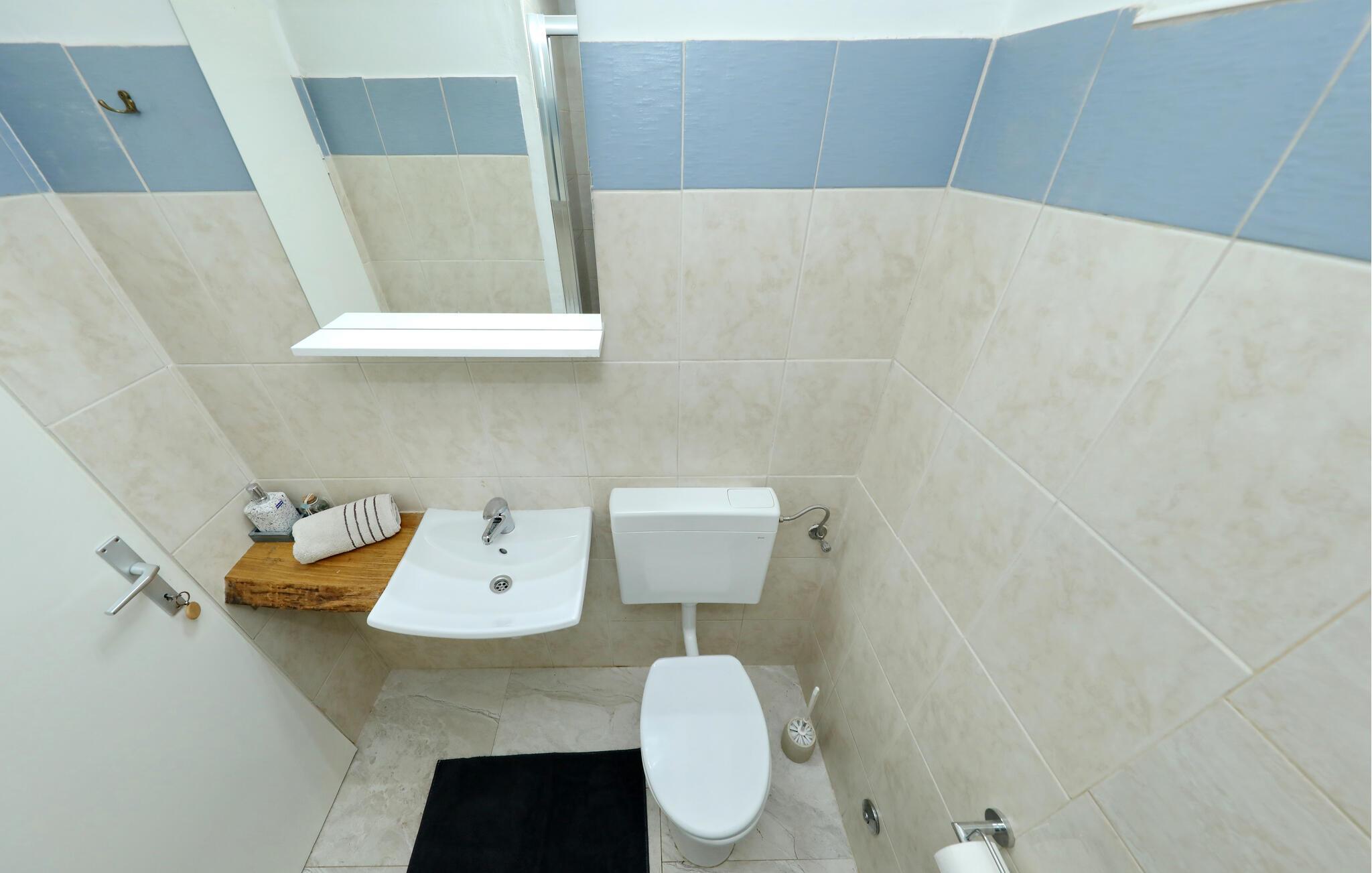 Badeværelse 4m2 (nr. 1) - WC. Varmt og koldt vand. Bruser