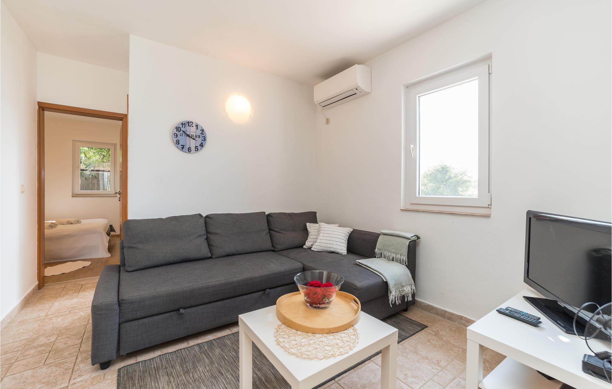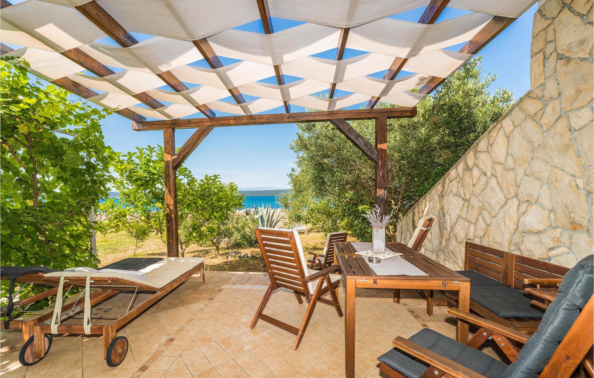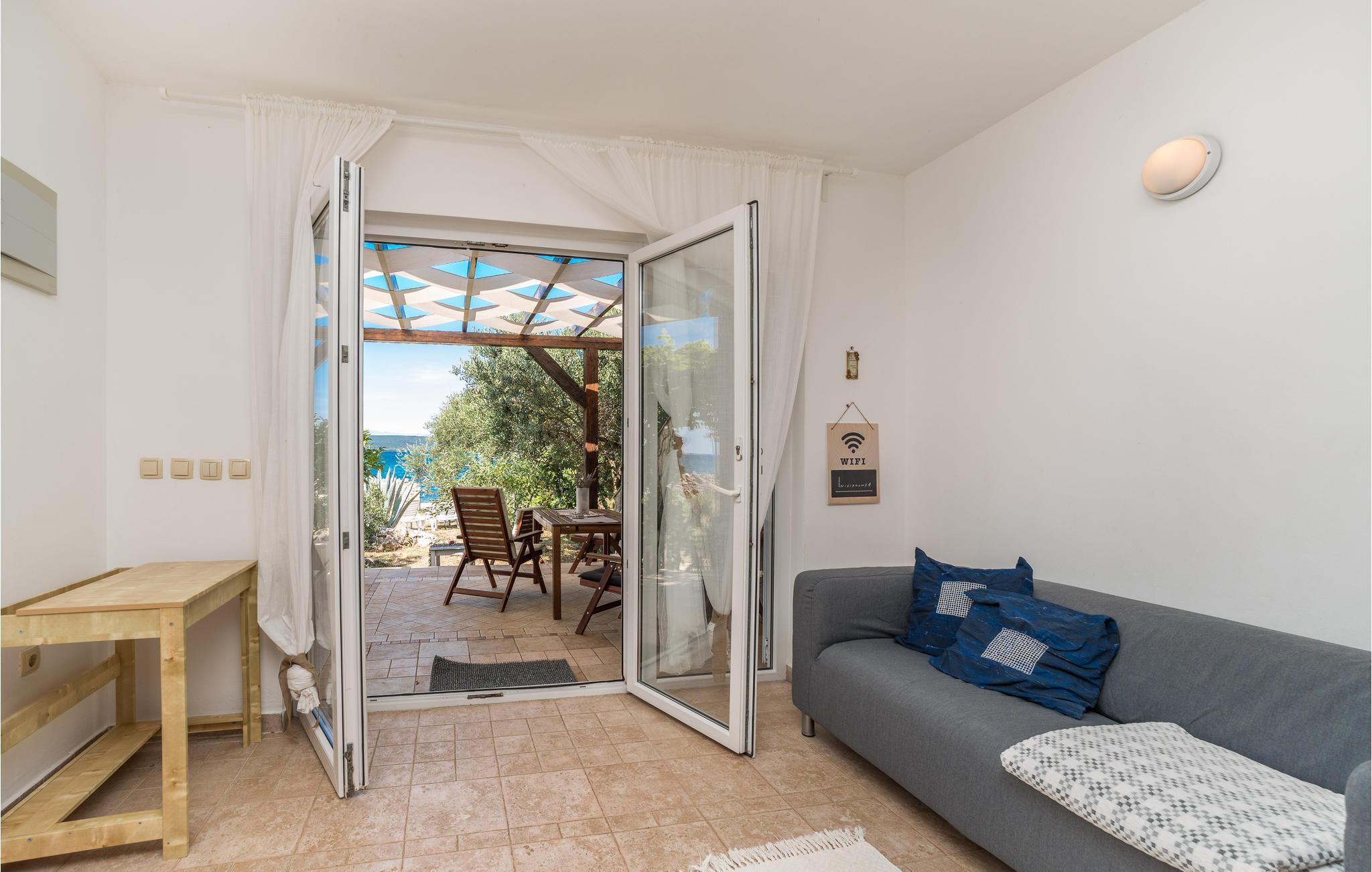 Nyd en familiebadeferie på øen Pasman. Tilbring en skøn ferie lige ved stranden på øen Pašman, som også kaldes Kornati-porten. Med sin enestående beliggenhed ved havet skiller denne feriebolig sig ud fra de fleste. Du kommer direkte fra haven til stenstranden, hvor du kan nyde den smukke solopgang. Havet er krystalklart og velegnet til svømning og dykning. Denne ferielejlighed ligger i stueetagen og tilbyder dig behagelige faciliteter, der tilbyder dig alt, hvad du kan ønske dig. Nyd også mange timer på terrassen med en fantastisk udsigt over havet, omgivelserne ved Zadar og Velebit, som er betagende. Her kan du starte dagen med en kop kaffe eller slutte den af med et glas vin. Der er en udendørs bruser i haven. Grillen er placeret ud til stranden med en uforglemmelig udsigt. Her kan I fejre hyggelige grillaftener i skønne omgivelser. Her grænser din haveejendom direkte op til havet, kun adskilt af en lille stenmur, så du til enhver tid kan fortabe dig i det store udsyn over omgivelserne, se solopgange og solnedgange eller bade. Butikker, restauranter og caféer ligger omkring 800 m væk i centrum af Dobropoljana, et af de smukkeste steder på øen. Landsbyen ligger i den nordøstlige del, en typisk ø-landsby med omkring 300 indbyggere, hvor der opnås harmoni mellem arkitektur og nybyggede huse. Øen Pasman er kendt for sine smukke sandstrande og mange stier, der egner sig til cykling. Her finder du også en imponerende sti til den højeste top på øen Bokolj, som byder på udsigt over Zadar og Kornati National Park.