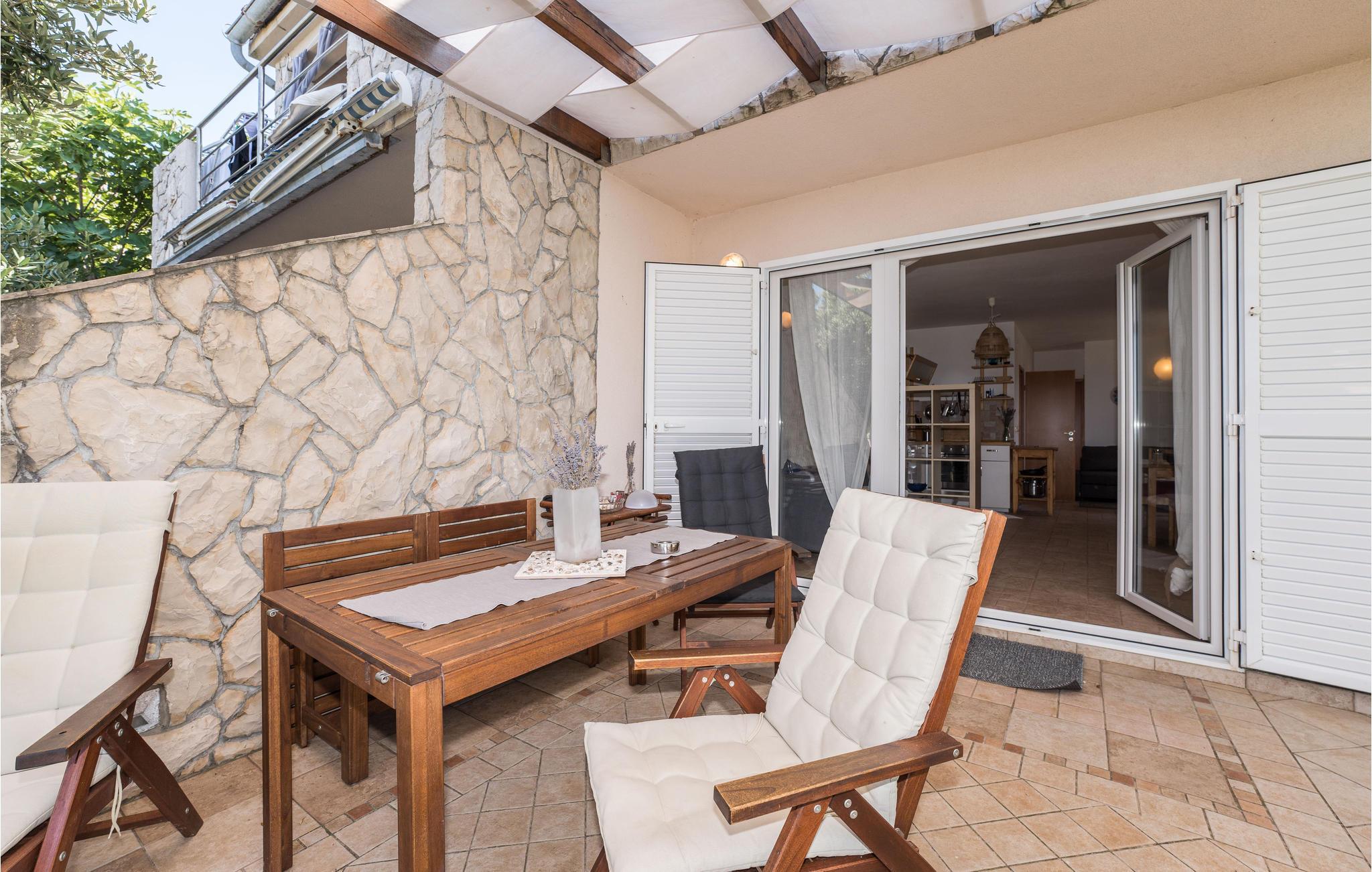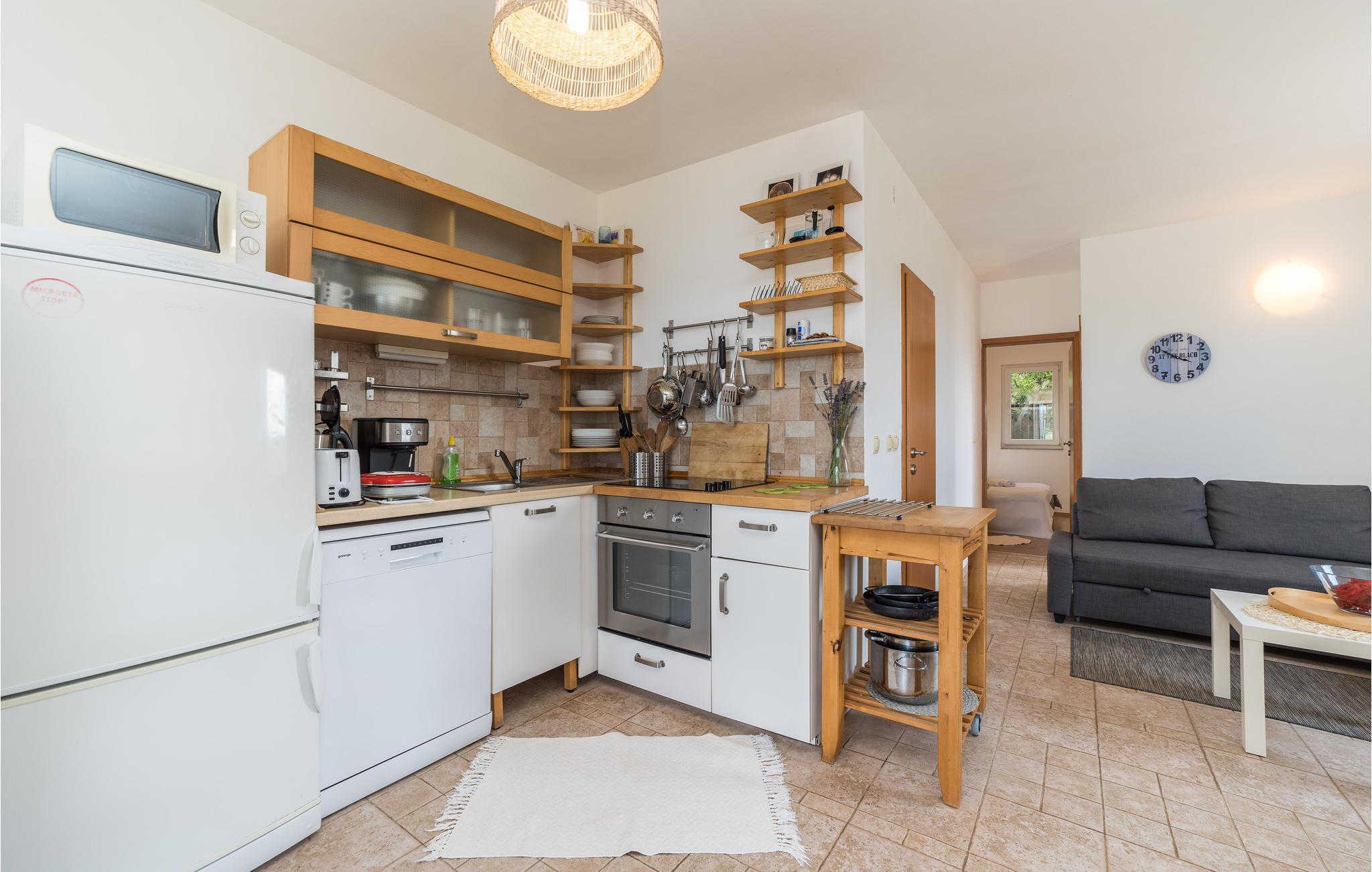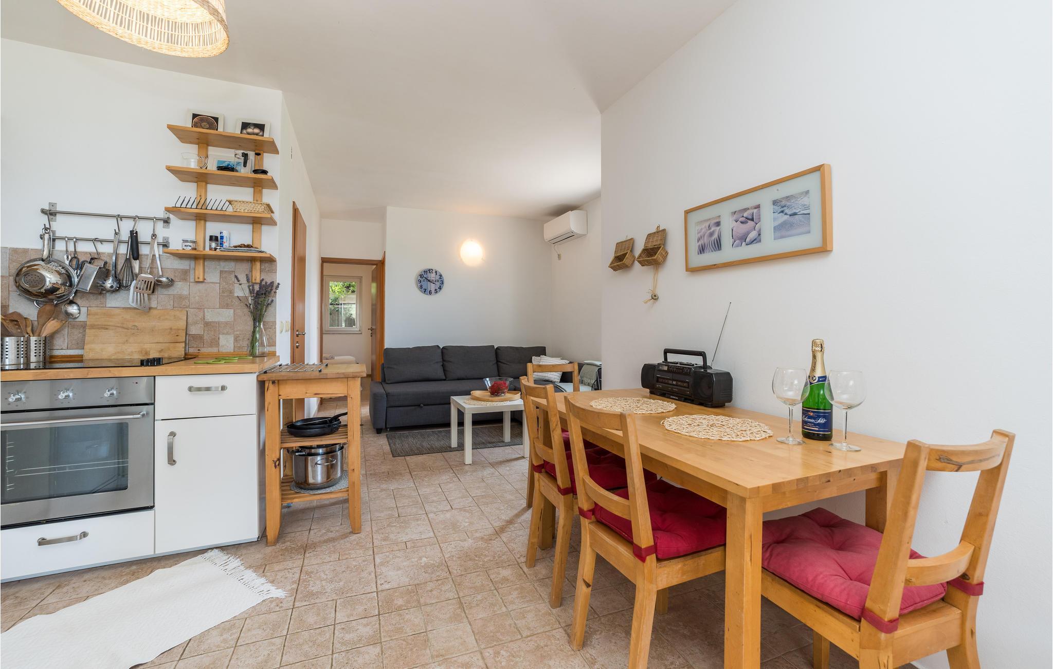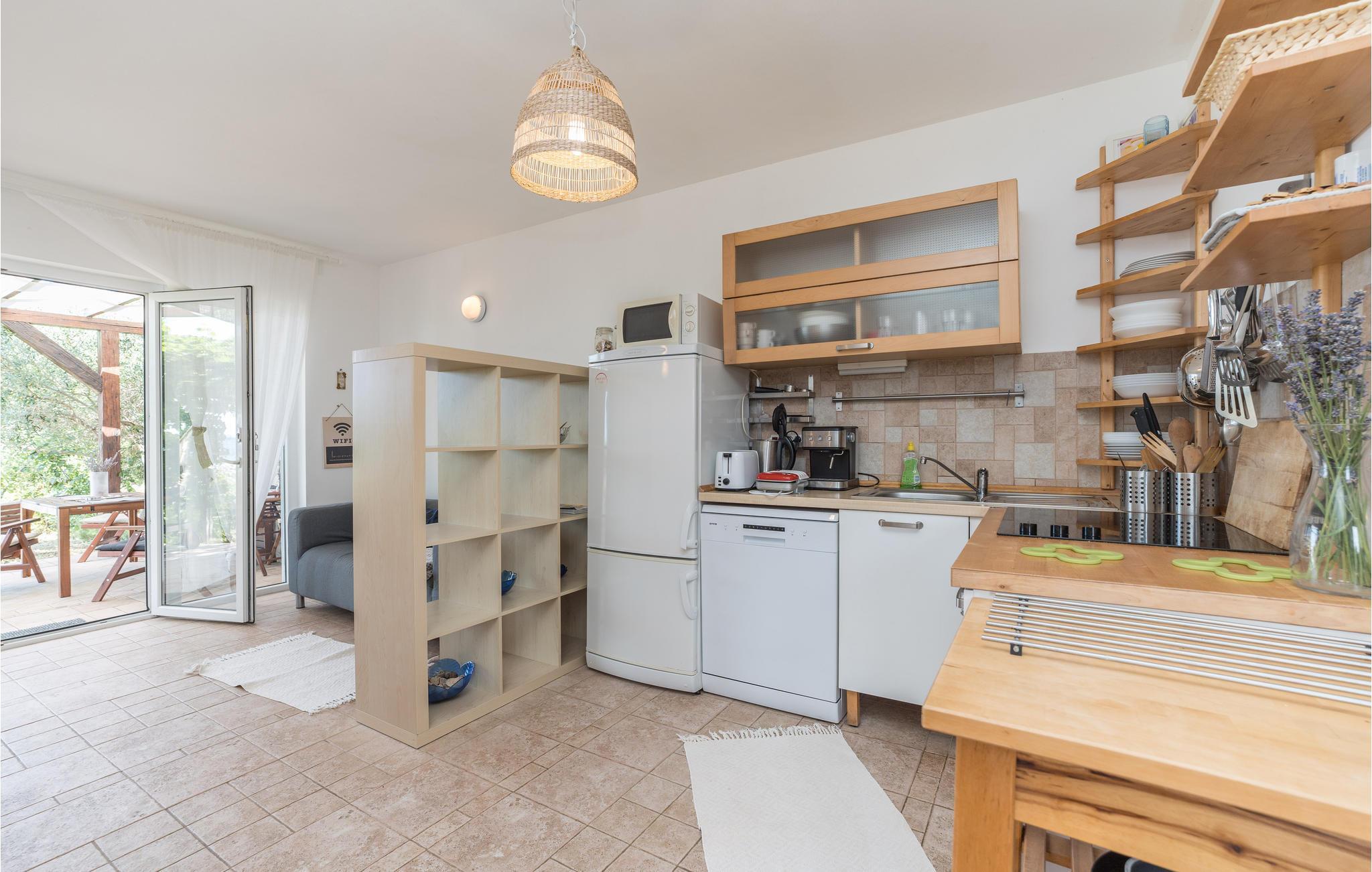 Nyd en familiebadeferie på øen Pasman. Tilbring en skøn ferie lige ved stranden på øen Pašman, som også kaldes Kornati-porten. Med sin enestående beliggenhed ved havet skiller denne feriebolig sig ud fra de fleste. Du kommer direkte fra haven til stenstranden, hvor du kan nyde den smukke solopgang. Havet er krystalklart og velegnet til svømning og dykning. Denne ferielejlighed ligger i stueetagen og tilbyder dig behagelige faciliteter, der tilbyder dig alt, hvad du kan ønske dig. Nyd også mange timer på terrassen med en fantastisk udsigt over havet, omgivelserne ved Zadar og Velebit, som er betagende. Her kan du starte dagen med en kop kaffe eller slutte den af med et glas vin. Der er en udendørs bruser i haven. Grillen er placeret ud til stranden med en uforglemmelig udsigt. Her kan I fejre hyggelige grillaftener i skønne omgivelser. Her grænser din haveejendom direkte op til havet, kun adskilt af en lille stenmur, så du til enhver tid kan fortabe dig i det store udsyn over omgivelserne, se solopgange og solnedgange eller bade. Butikker, restauranter og caféer ligger omkring 800 m væk i centrum af Dobropoljana, et af de smukkeste steder på øen. Landsbyen ligger i den nordøstlige del, en typisk ø-landsby med omkring 300 indbyggere, hvor der opnås harmoni mellem arkitektur og nybyggede huse. Øen Pasman er kendt for sine smukke sandstrande og mange stier, der egner sig til cykling. Her finder du også en imponerende sti til den højeste top på øen Bokolj, som byder på udsigt over Zadar og Kornati National Park.