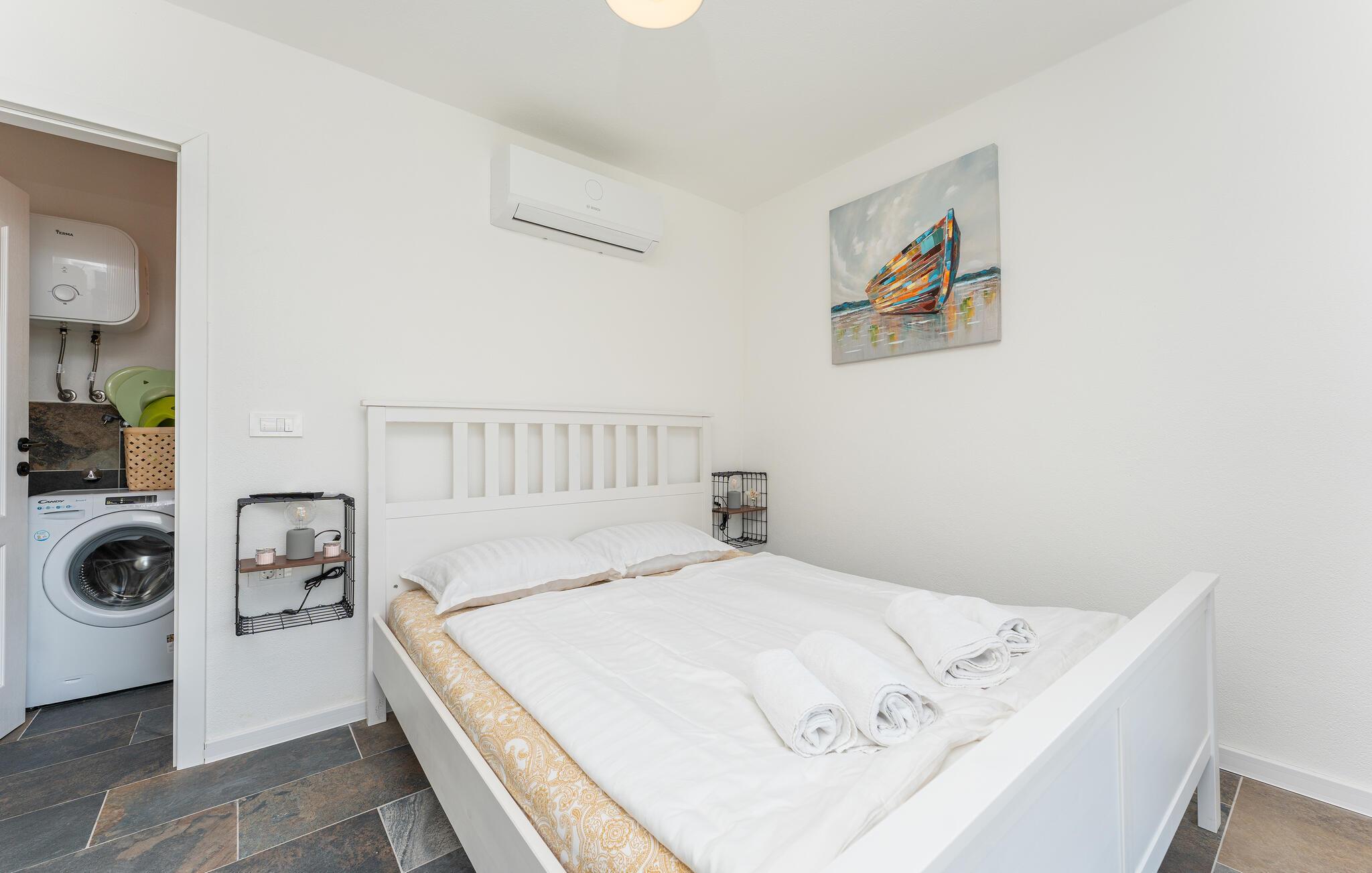 Når I har lyst, kan I slentre ned ad den korte sti til stranden og tage en dukkert i det turkise vand. Oplev den idylliske ø Pašman med dens skjulte bugter og krystalklare vand. Udforsk Tkon, tag en bådtur til Kornati Nationalpark eller besøg den historiske by Zadar med dets berømte havorgel og solhilsen.