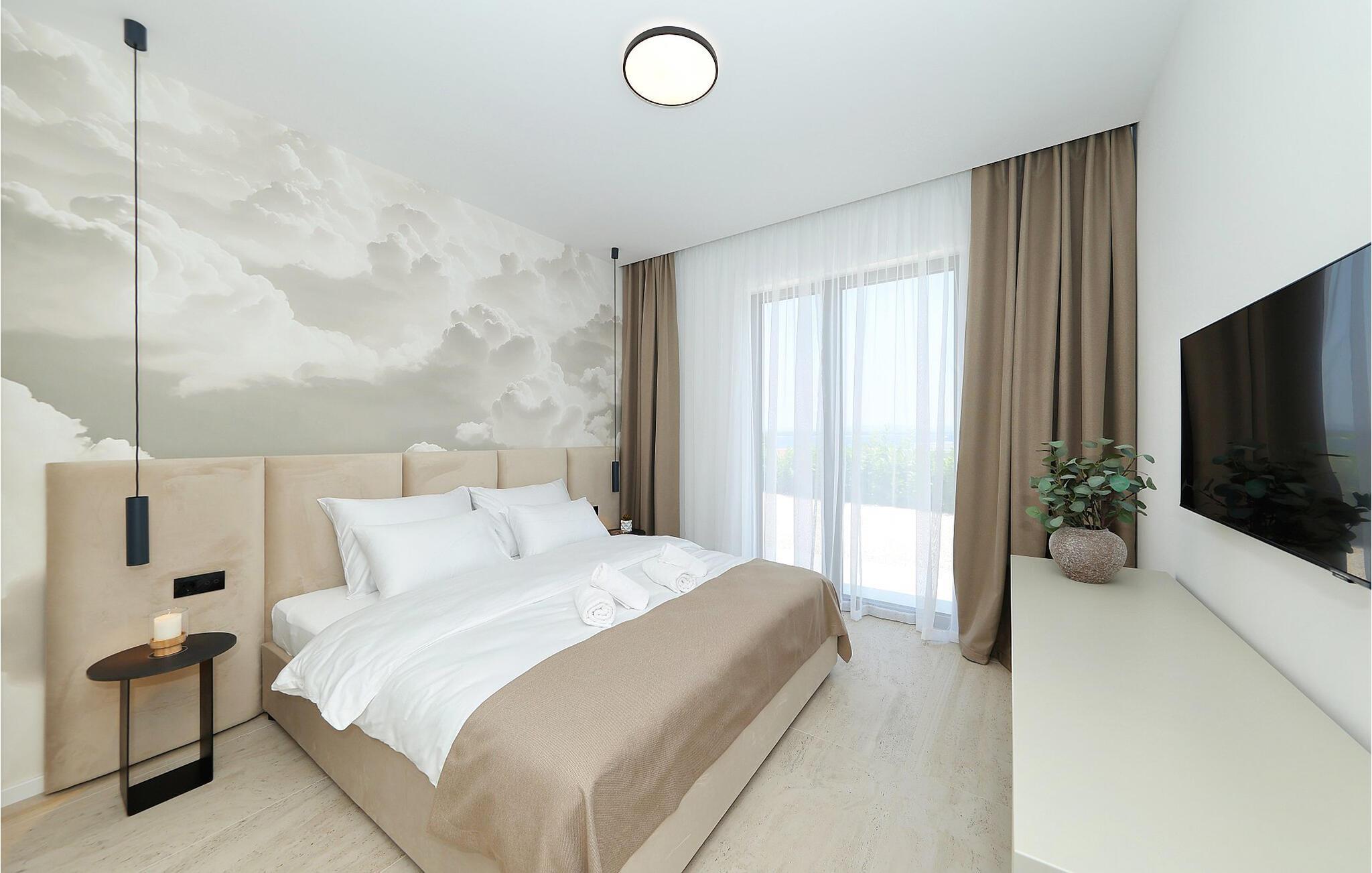 Den fine sandstrand ligger kun få skridt væk og er ideel til at bade, sole sig og lege i det lave vand. Tag på en vandretur op ad den nærliggende bakke Cokovac og oplev den imponerende udsigt over det dalmatiske øhav. Spadser gennem den lille havn i Tkon og nyd friskfanget fisk i en af de indbydende tavernaer. Eller oplev afsidesliggende bugter og den nærliggende ø Žut i nationalparken Kornati på en bådtur.