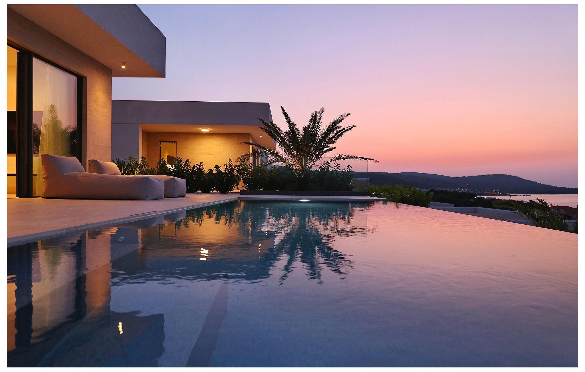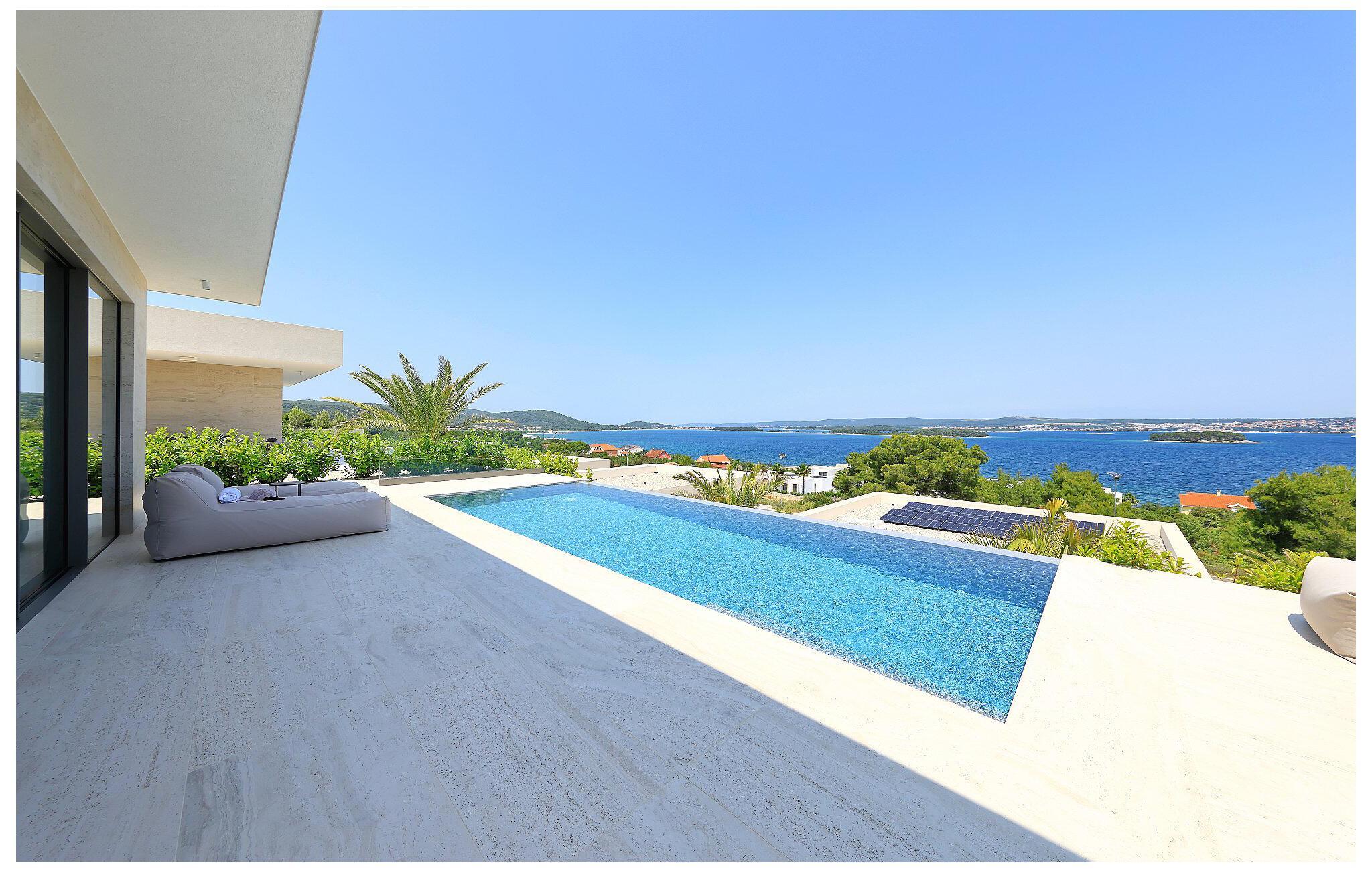 Nyd afslappede feriedage i dette moderne feriehus med pool og udsigt over Adriaterhavet.