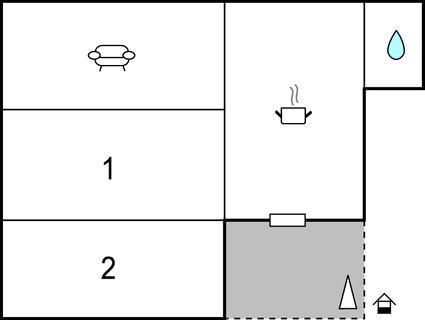 Opholdsstue/køkken 19m2 - 1 Soveplads. (Sofa, madras eller lignende).