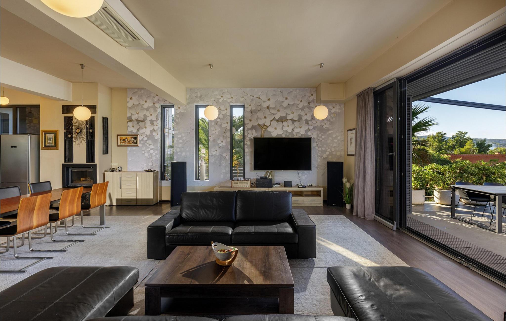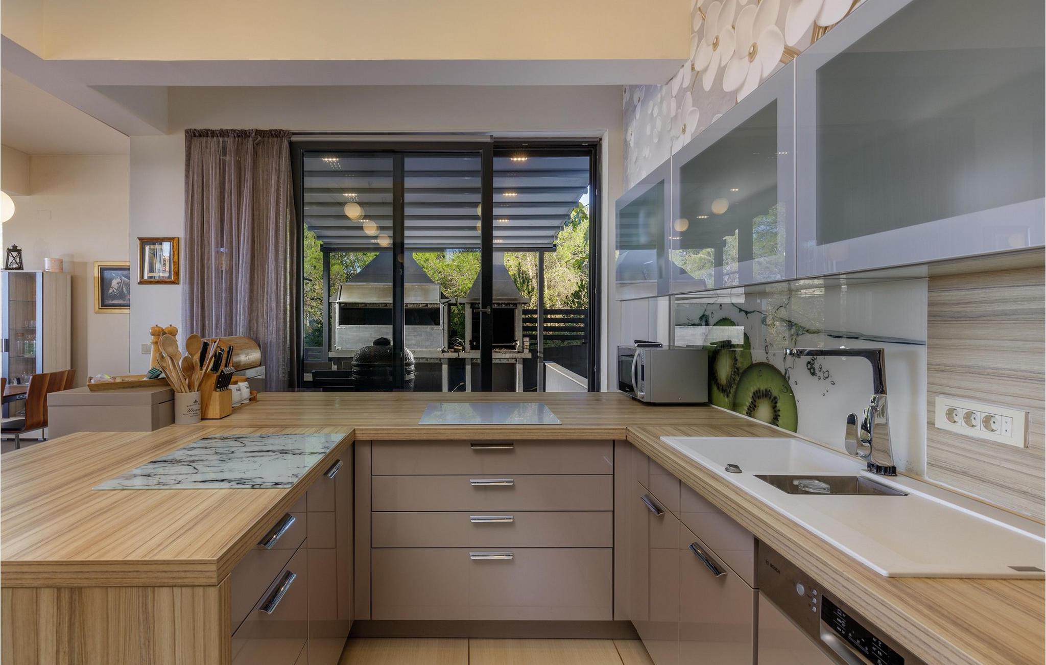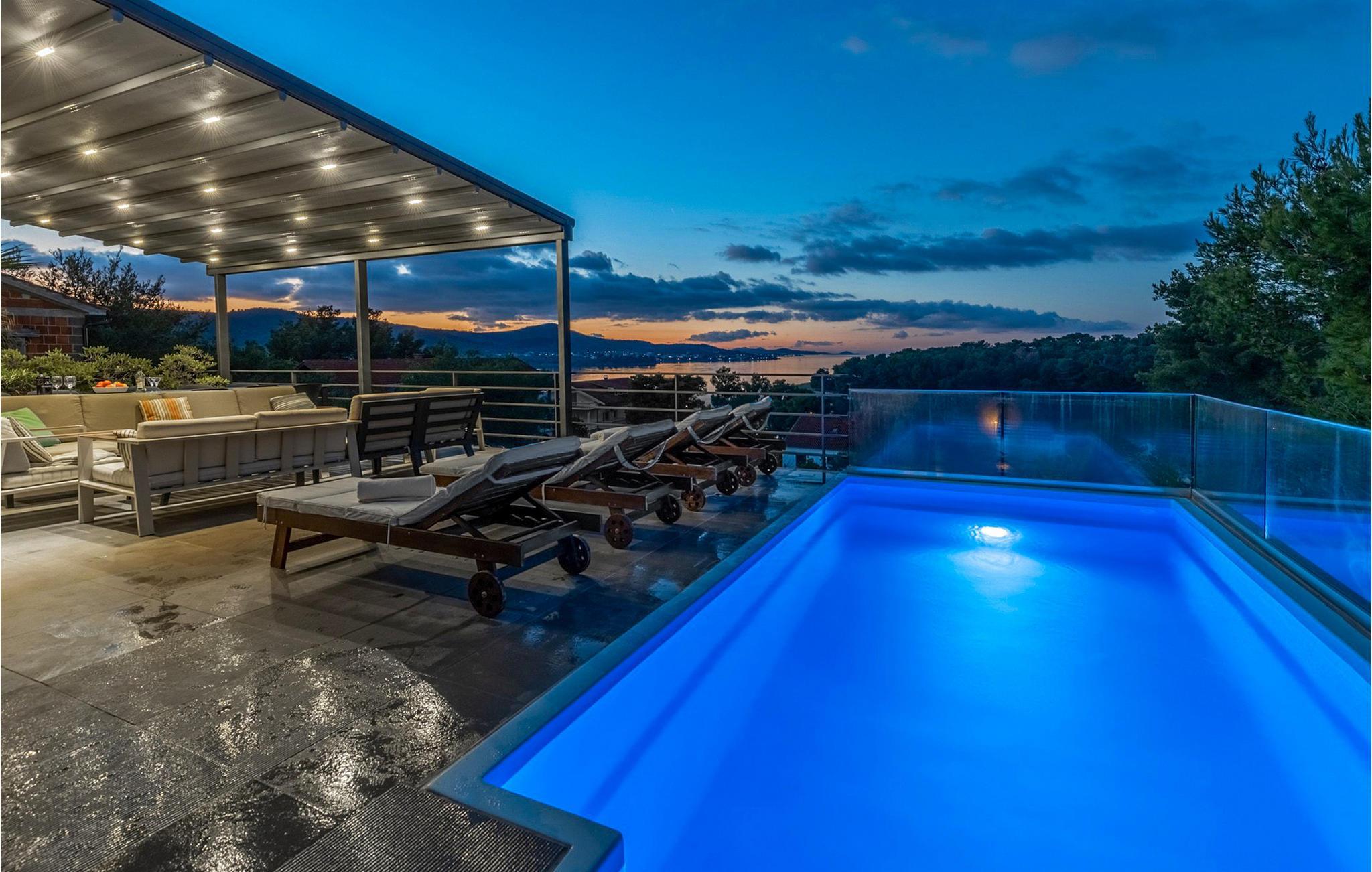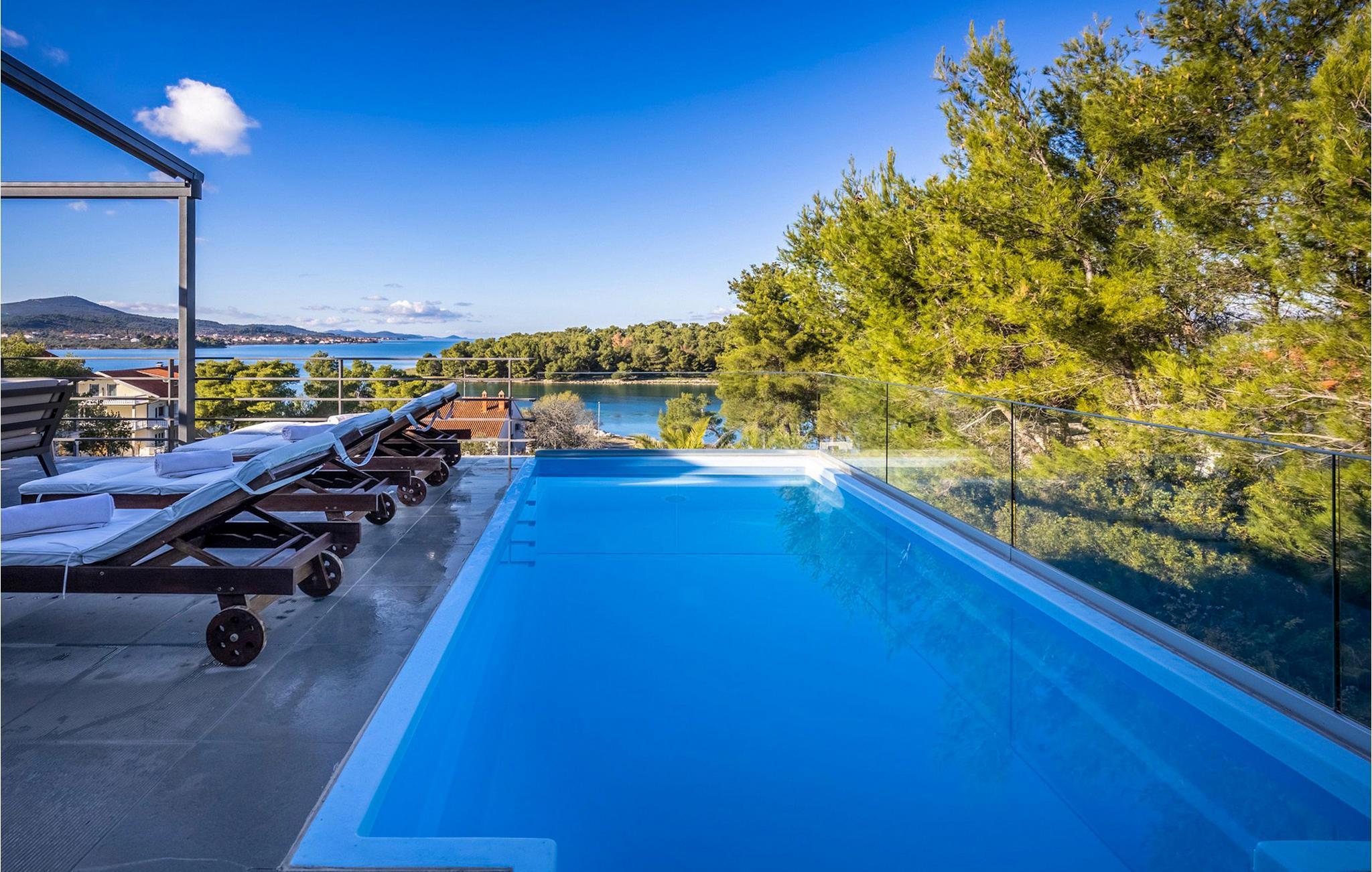 Kun få meter fra det glitrende hav inviterer denne drømmeagtige villa på øen Pašman jer til en uforglemmelig ferie. Den moderne og lyse villa tilbyder et perfekt udstyret køkken, en stilfuld stue og en komfortabel spisestue. Saml jer med familien og nyd atmosfæren med havudsigt. Den hyggelige taverna med filmprojektor er særligt charmerende - ideel til filmaftener sammen på sofagruppen. Udenfor venter en overdækket terrasse og et grillområde, der tilbyder masser af plads til at slappe af i en rolig middelhavsatmosfære. Nyd den betagende havudsigt fra den rummelige terrasse eller slap af i den private pool. Den idylliske ø Pašman fortryller med sine uberørte strande og maleriske landskab. I Mrljane kan I svømme i det krystalklare vand, gå ture langs kysten eller udforske de omkringliggende bugter. Til dagsture lokker den livlige by Zadar, som kan nås med færge på mindre end en halv time. Her kan I forvente et rigt kulinarisk udbud, kulturelle seværdigheder og den berømte solnedgang over havorglet. Bemærk: Det er muligt at leje en RIB-båd til 12 personer med eller uden skipper mod et ekstra gebyr på €300/dag.