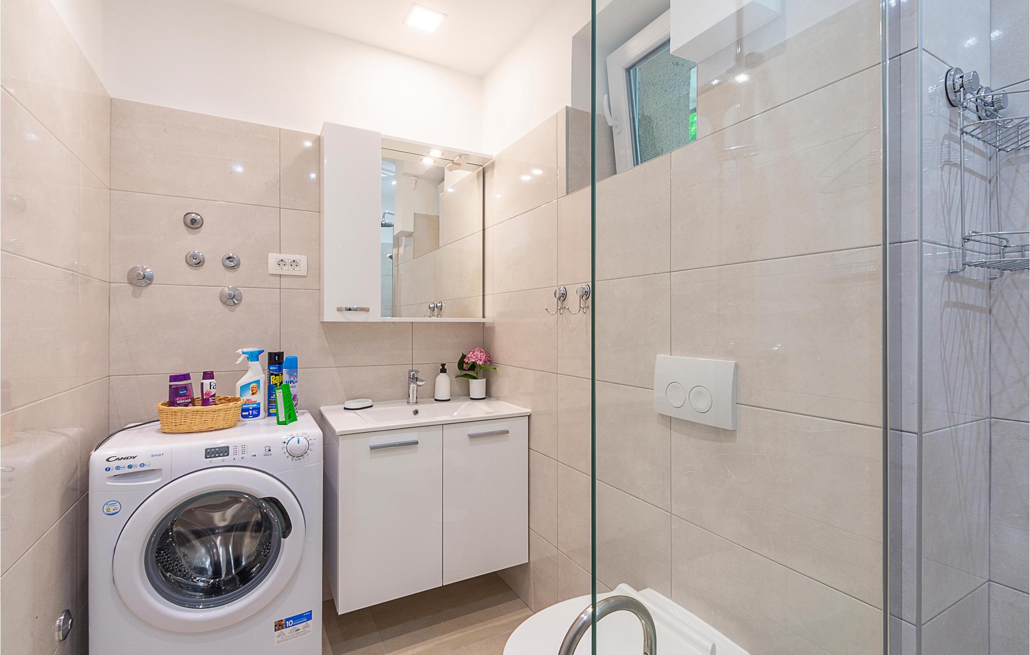Denne lejlighed er indrettet i en blanding af klassisk kroatisk stil og moderne møbler. Udendørs er der en delvist overdækket, lukket terrasse med markise, hvor I kan slappe af i skyggen og nyde dagens måltider.