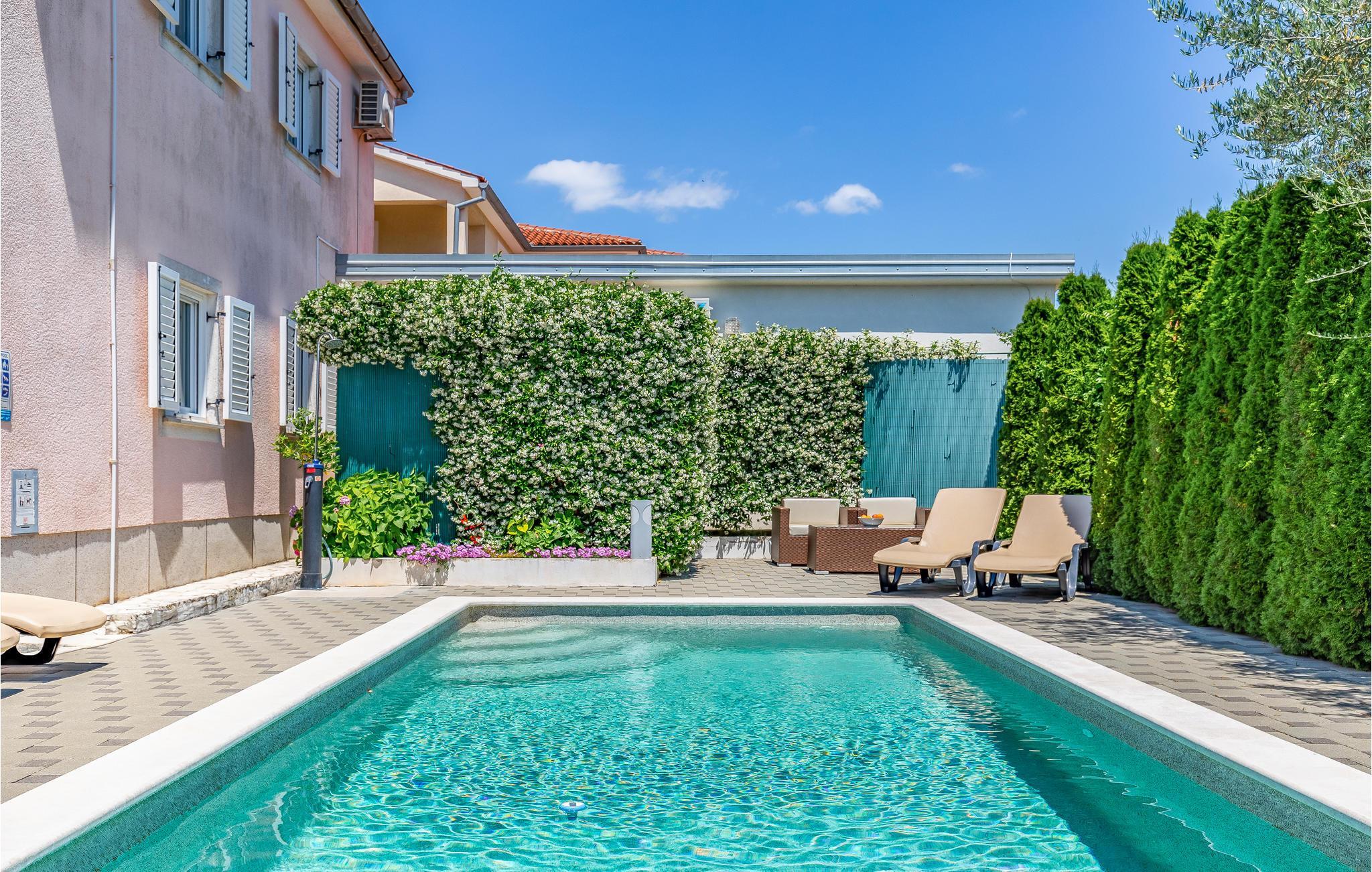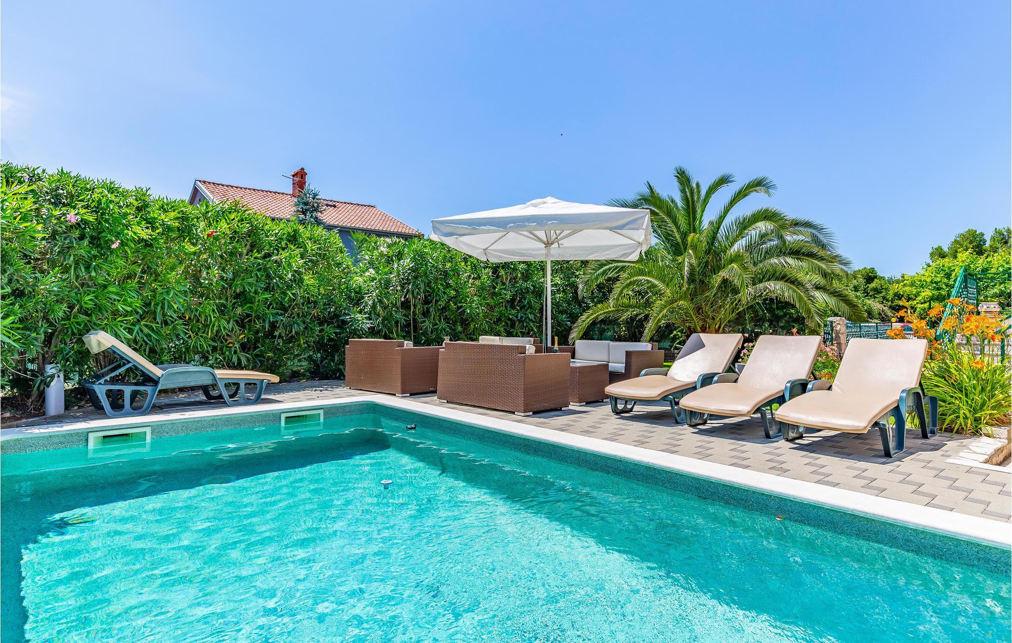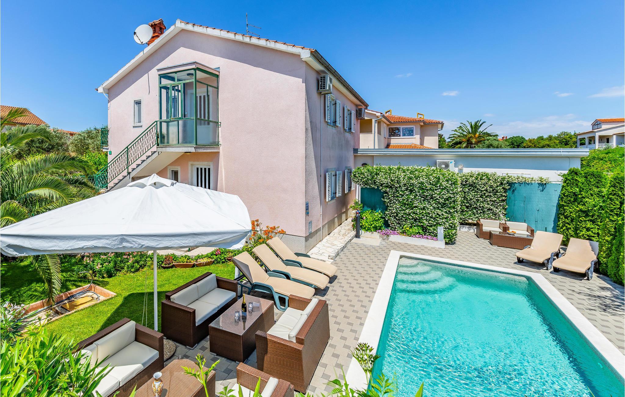Til dette lyse og rummelige feriehus hører en pool i haven. Det ligger i den lille by Štinjan, tæt på Pula. Huset rummer to lejligheder med hhv. særskilte indgange udefra, der er oplagt til en ferie med en større familie. Fra huset når I på få minutter den romerske by Pula. Besøg den gamle Arena eller tag på udflugt fra Pula til præsidentøen Brijuni. Måske har I mere lyst til at koble helt fra og i stedet nyde de gode retter, der serveres i de mange dejlige restauranter. Mod betaling tilbyder husejeren at udleje ni cykler