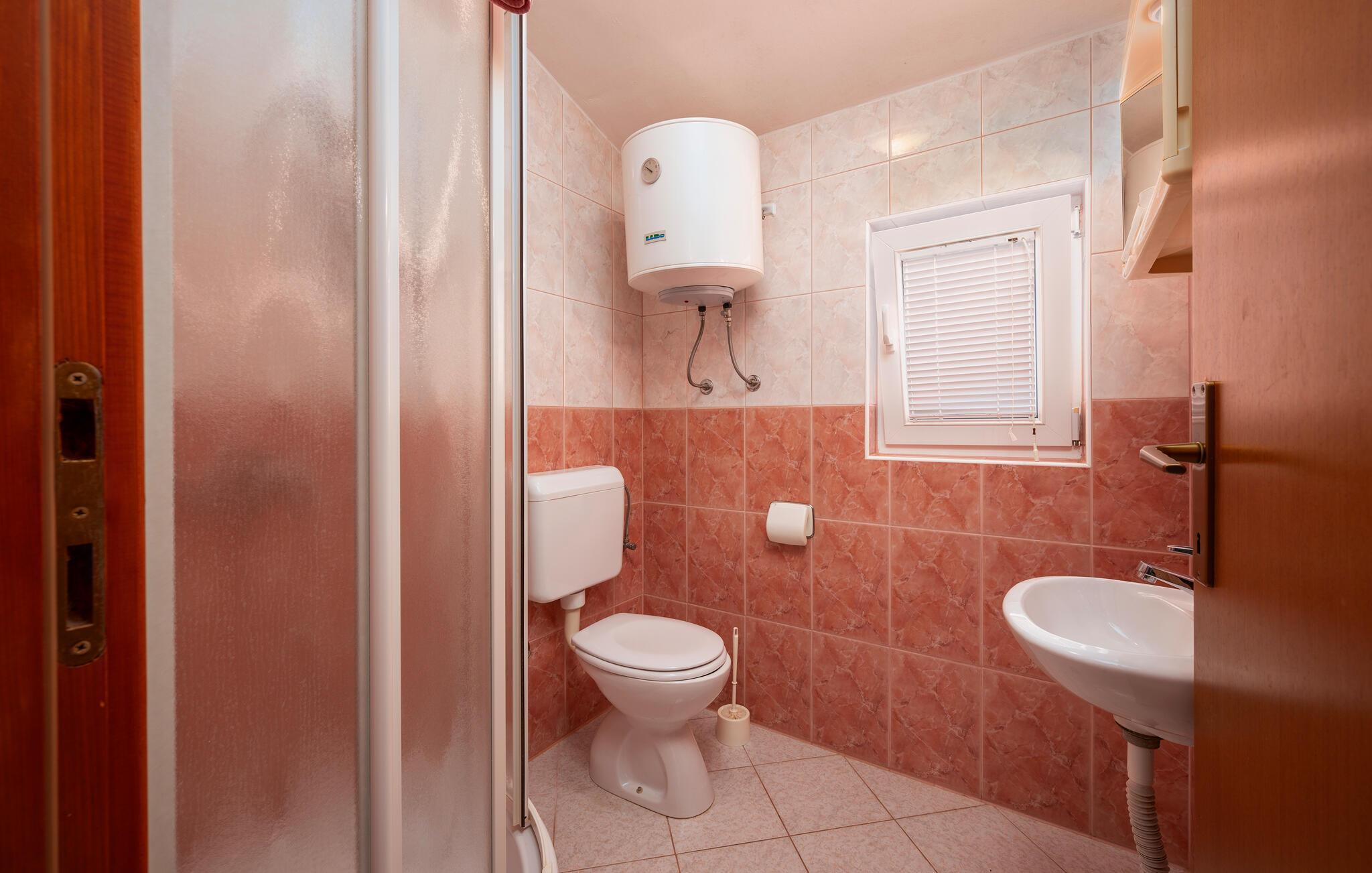 Badeværelse (nr. 1) - WC. Varmt og koldt vand. Bruser