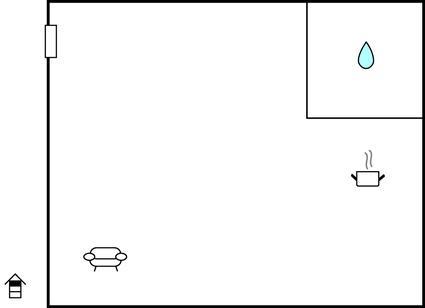 Opholdsstue/køkken - 2 Sovepladser. (Sofa, madras eller lignende).
